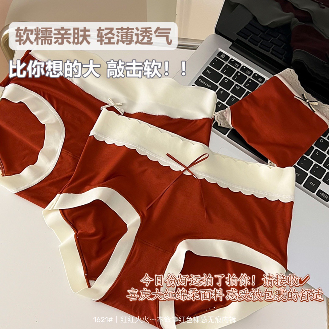 幸运的暴击~红色莫代尔本命年内裤女舒适透气底裆中腰少女三角裤
