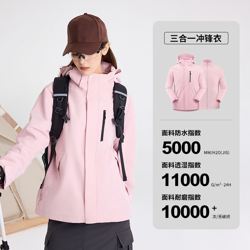 某柏希冲锋衣三合一防泼水女外套防风防水男款运动户外服品牌平替