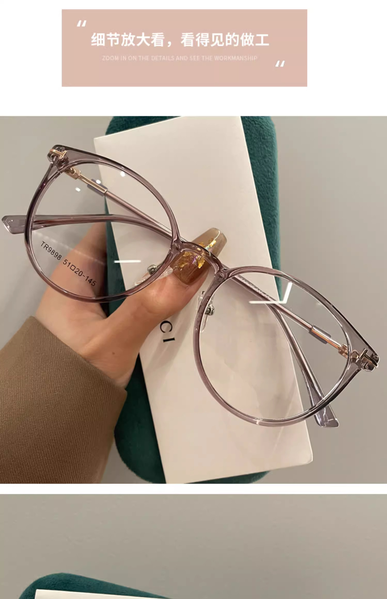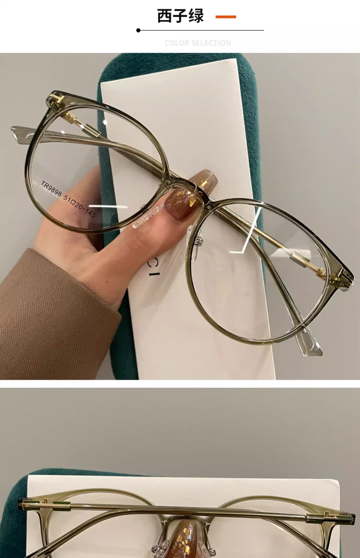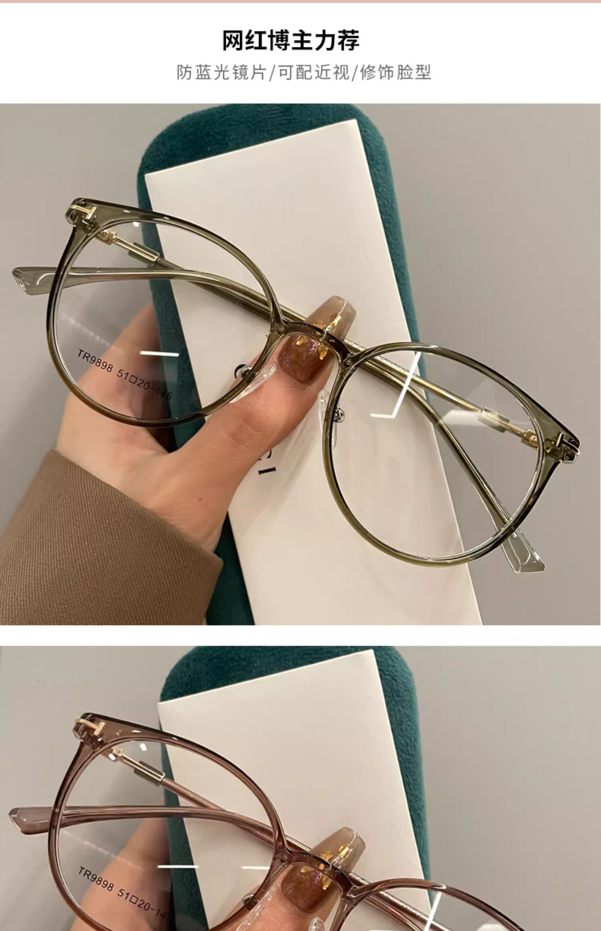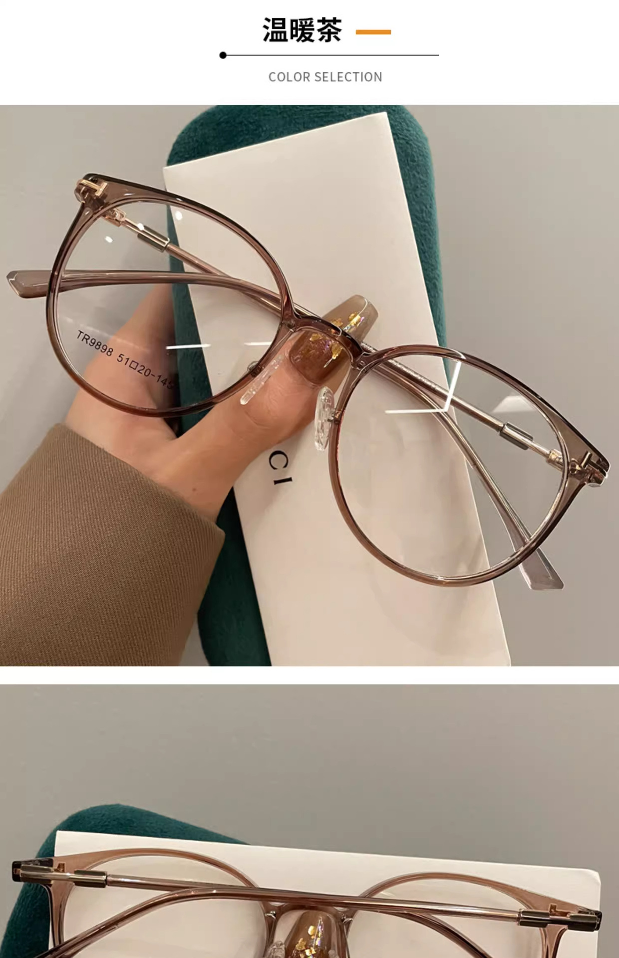 新款超轻TR90眼镜框时尚简约冷茶色男女圆框平光镜素颜透明近视架