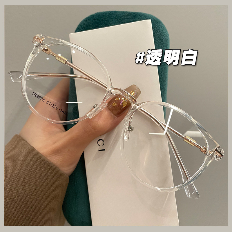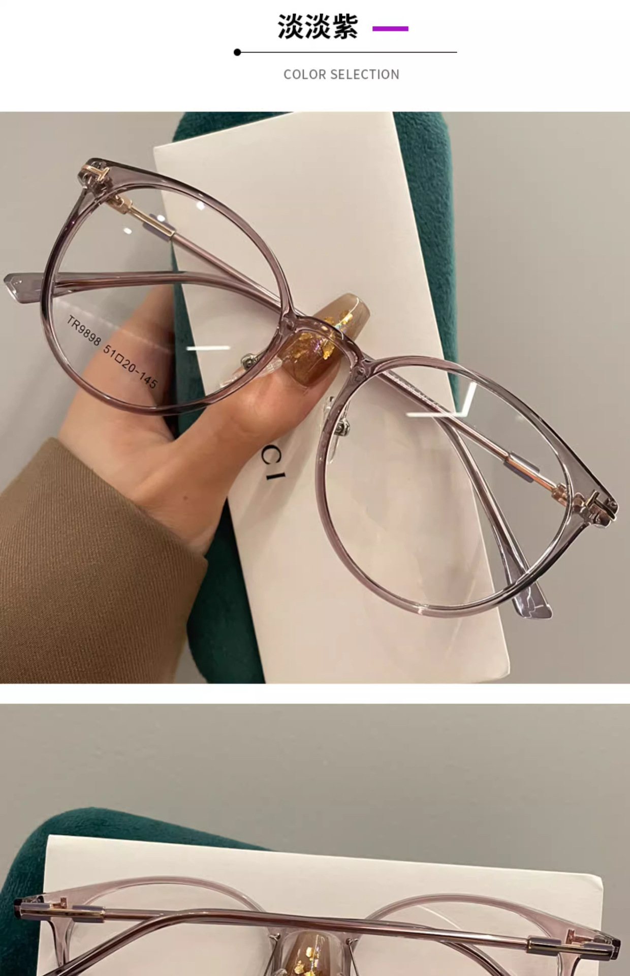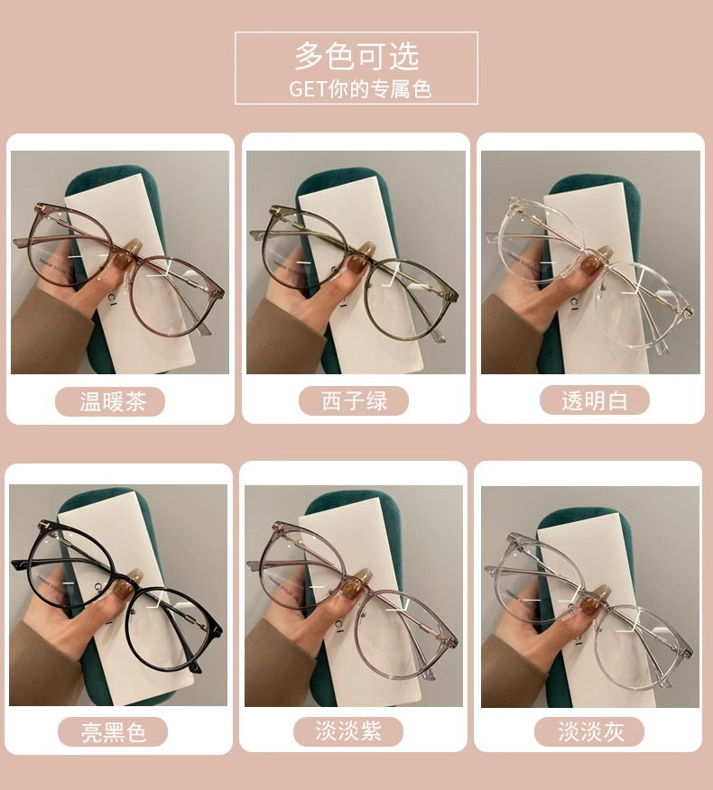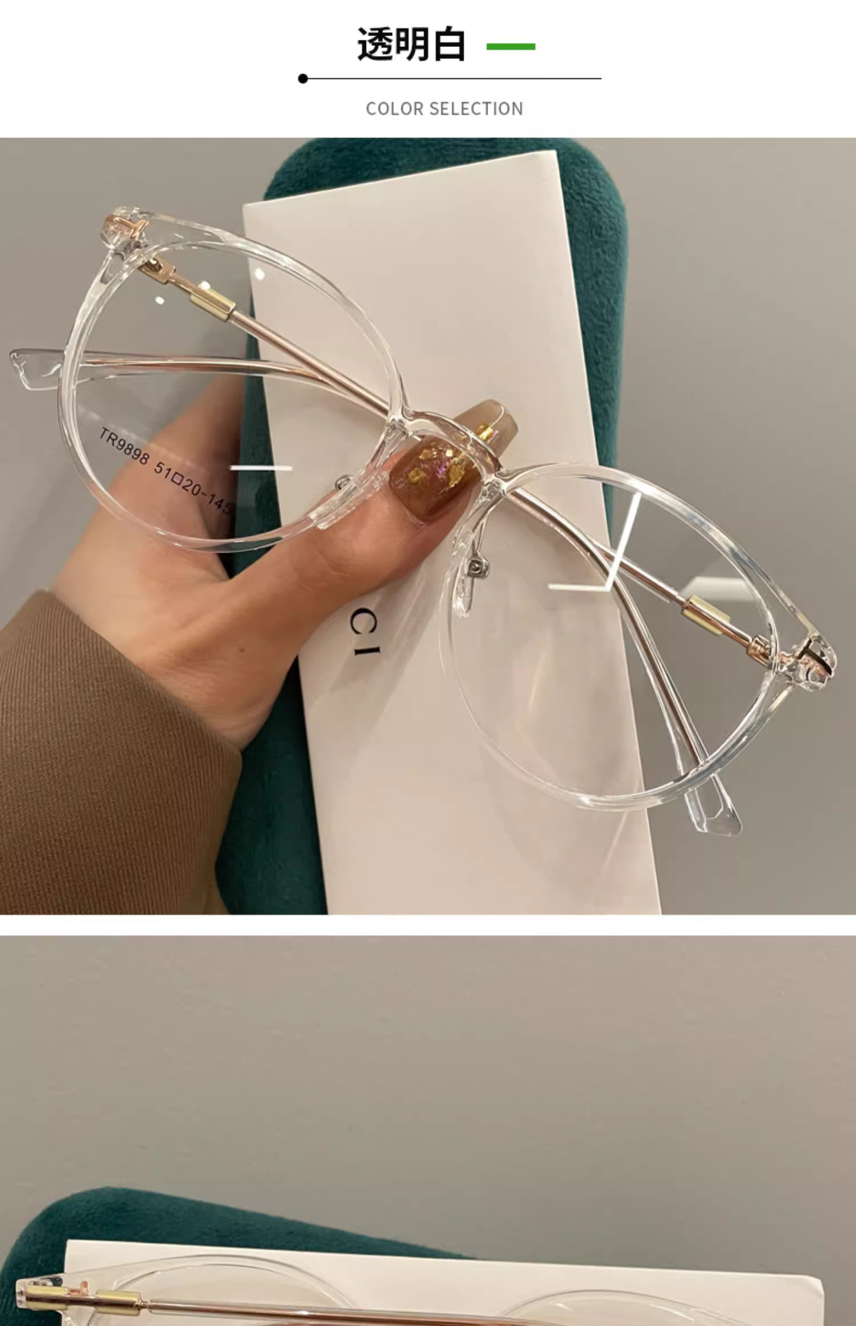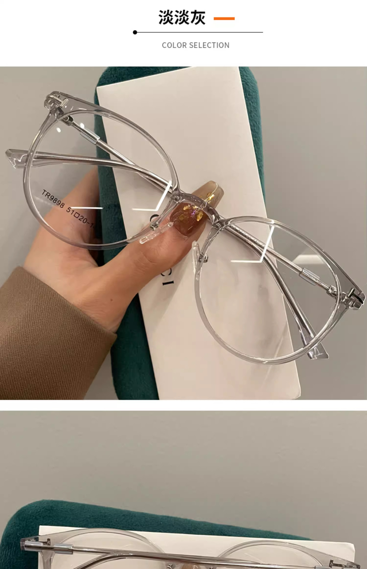 新款超轻TR90眼镜框时尚简约冷茶色男女圆框平光镜素颜透明近视架
