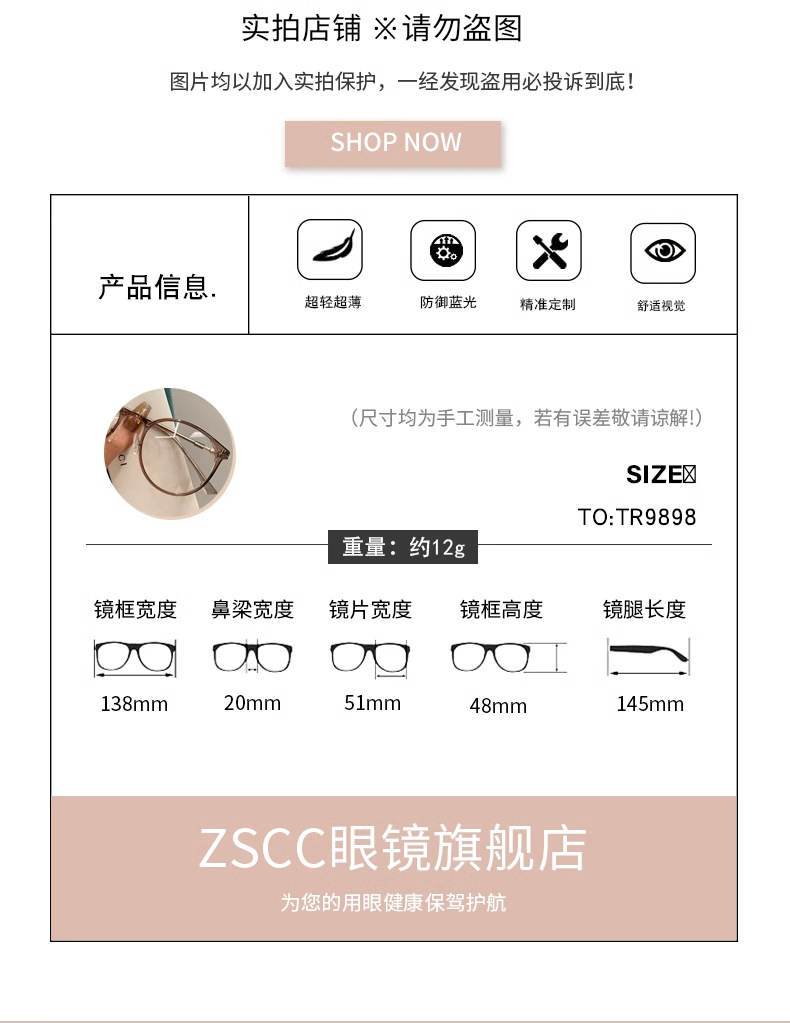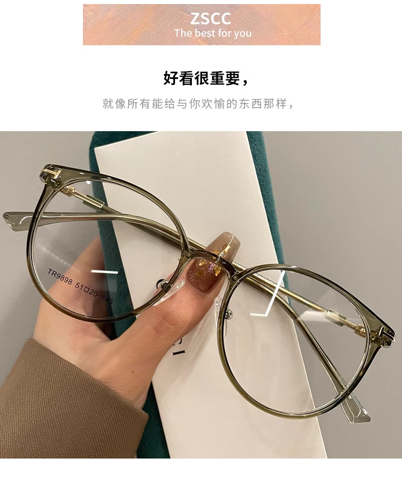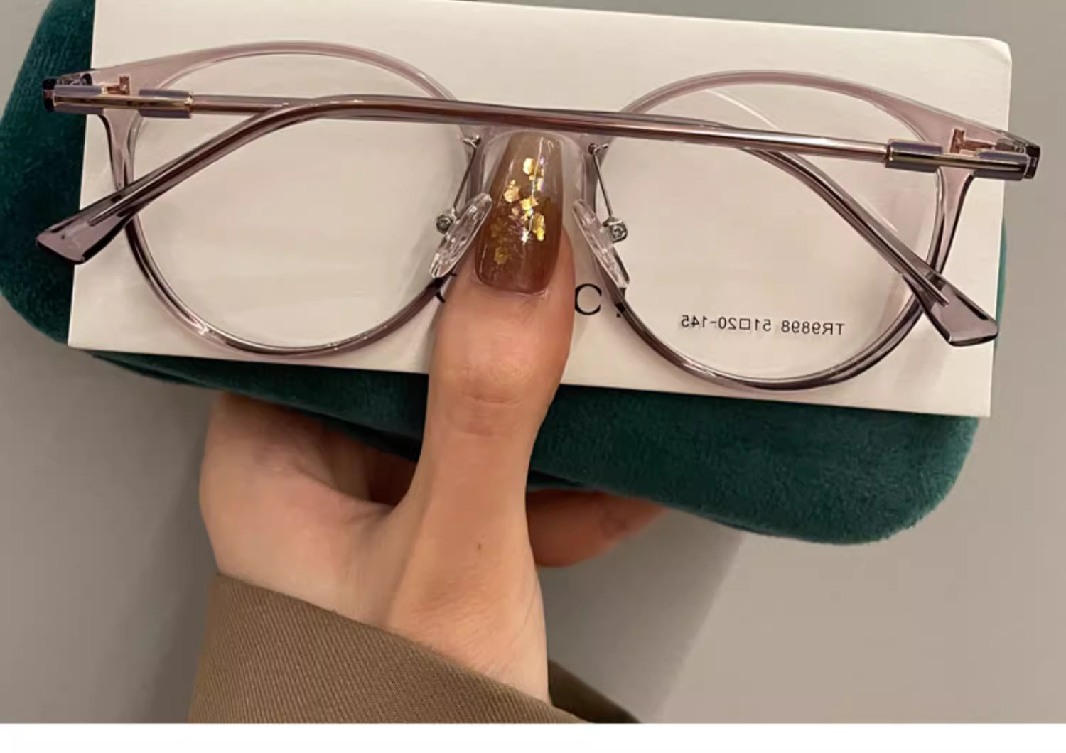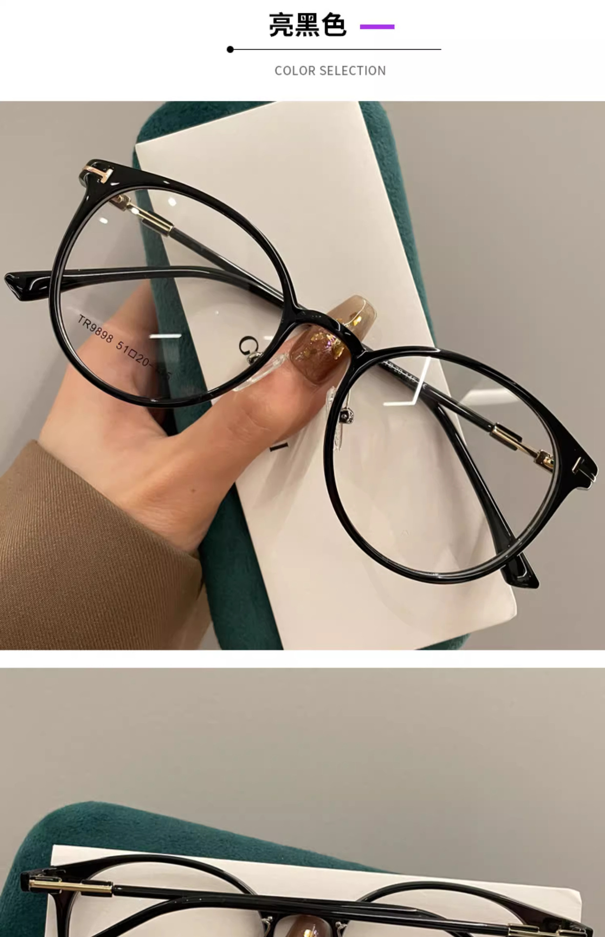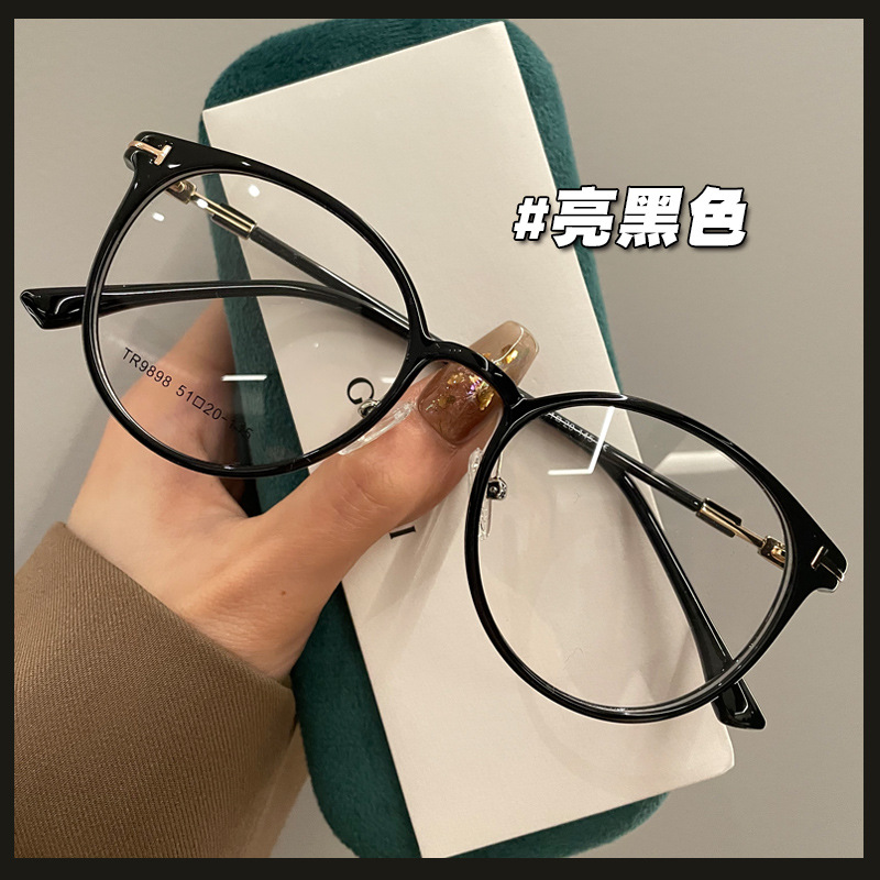 新款超轻TR90眼镜框时尚简约冷茶色男女圆框平光镜素颜透明近视架
