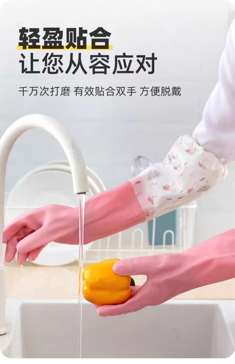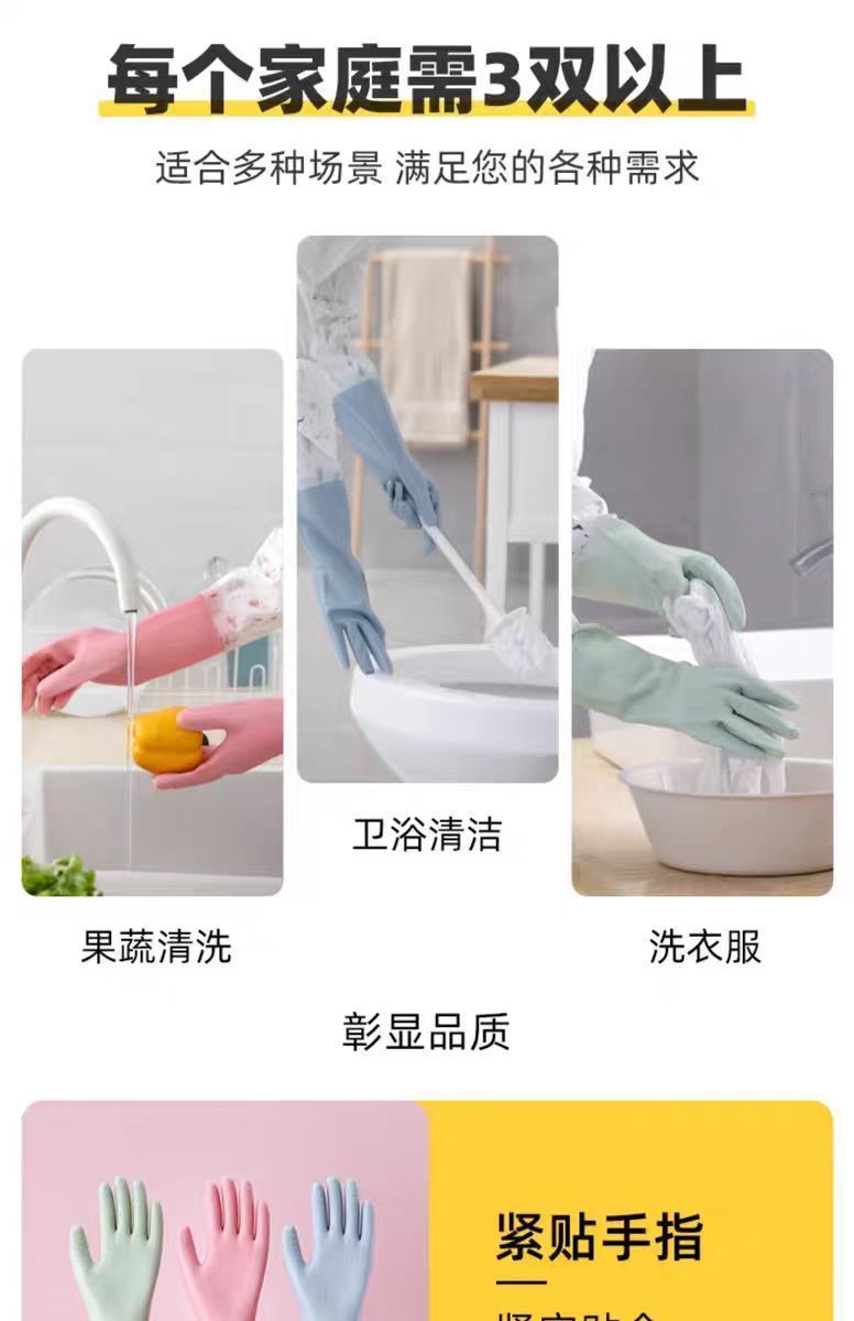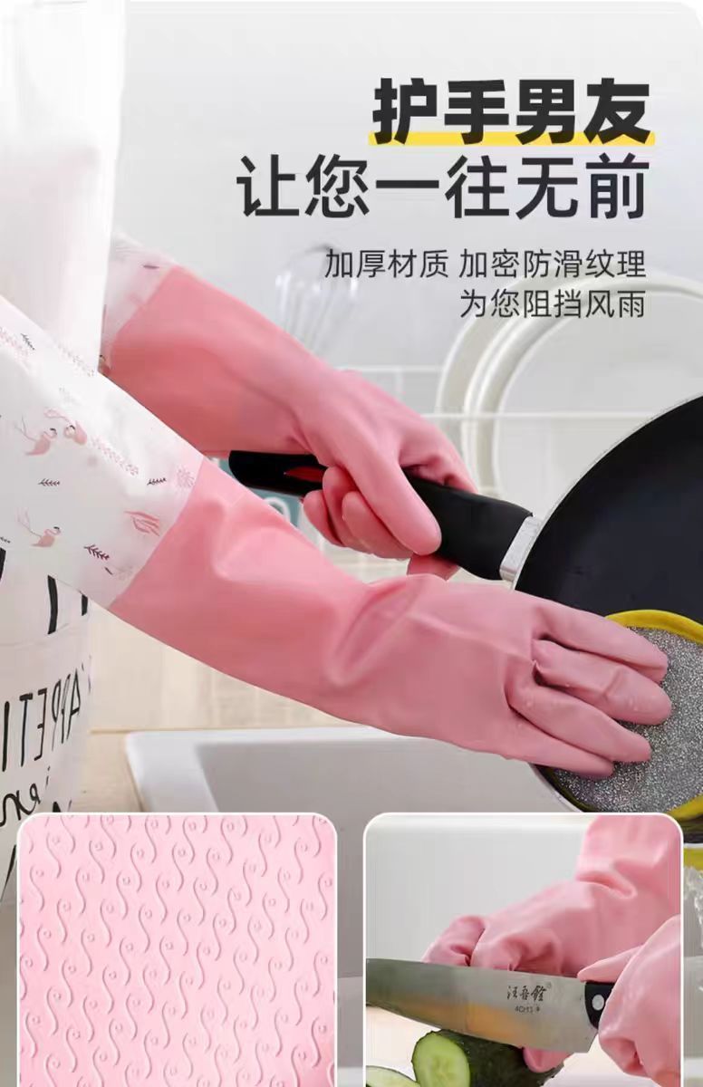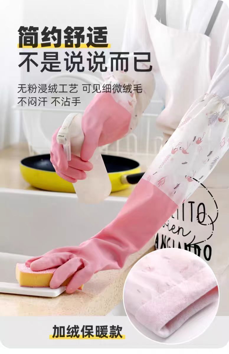 加厚加绒洗碗手套女防水橡胶厨房耐用洗衣服胶皮橡胶家务刷碗神器