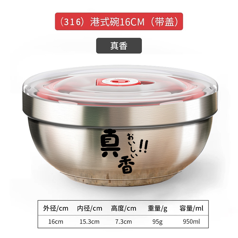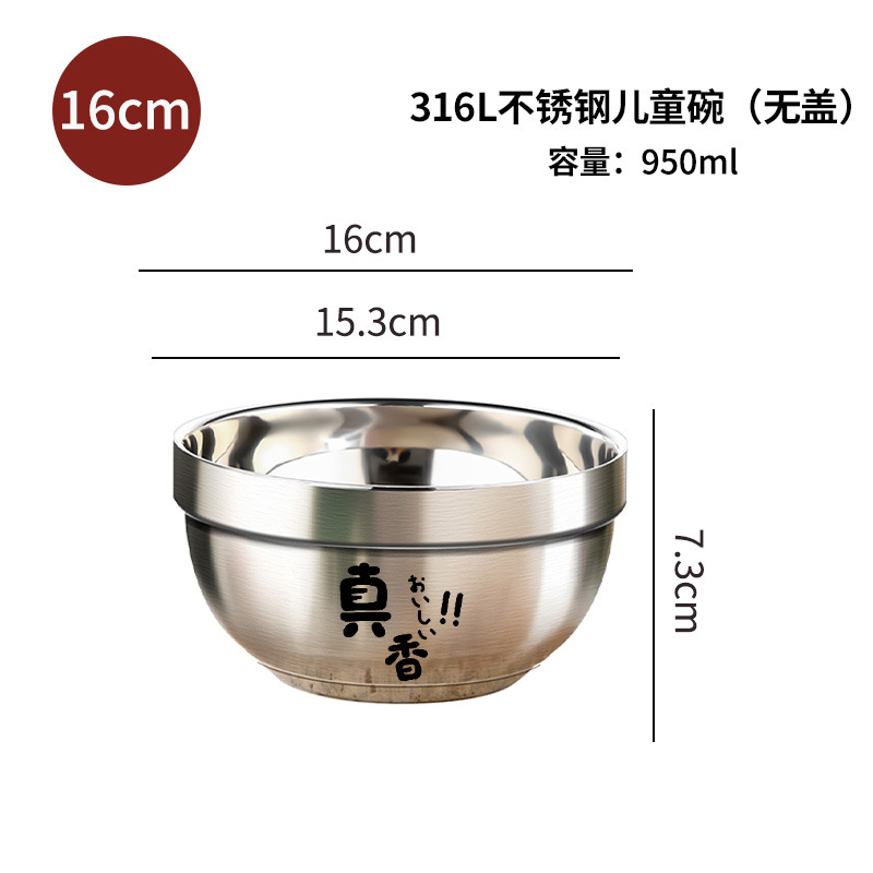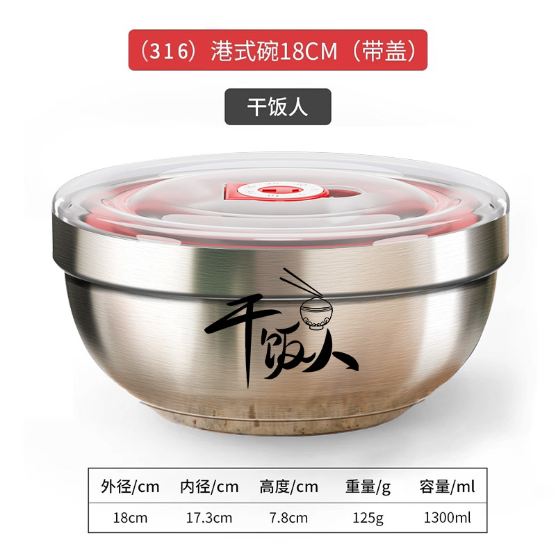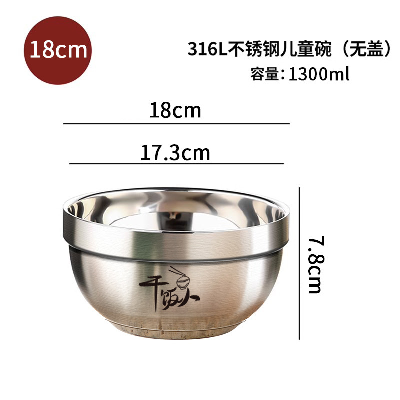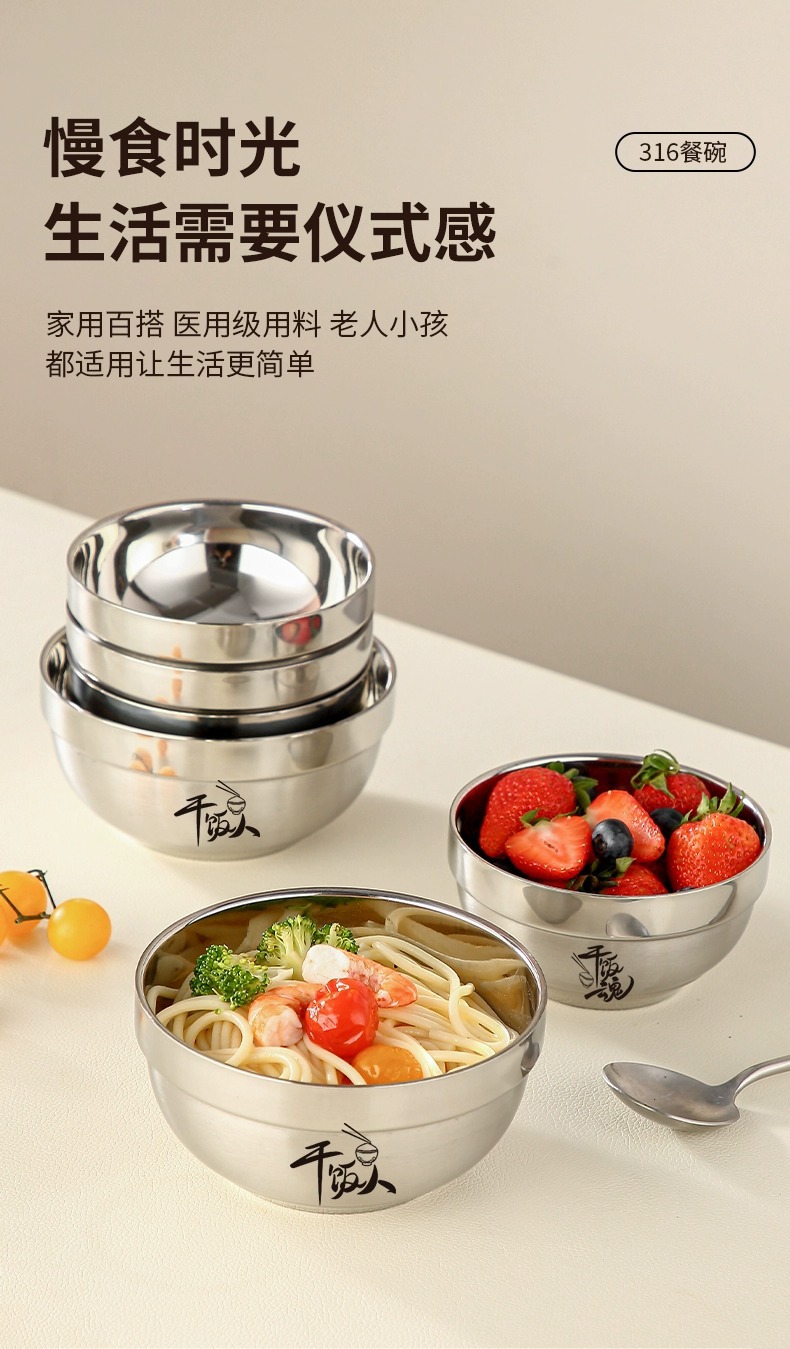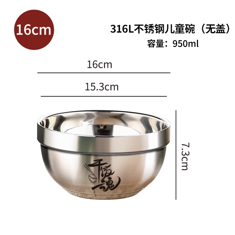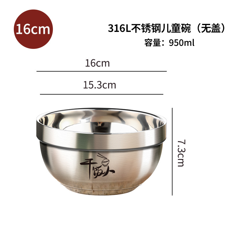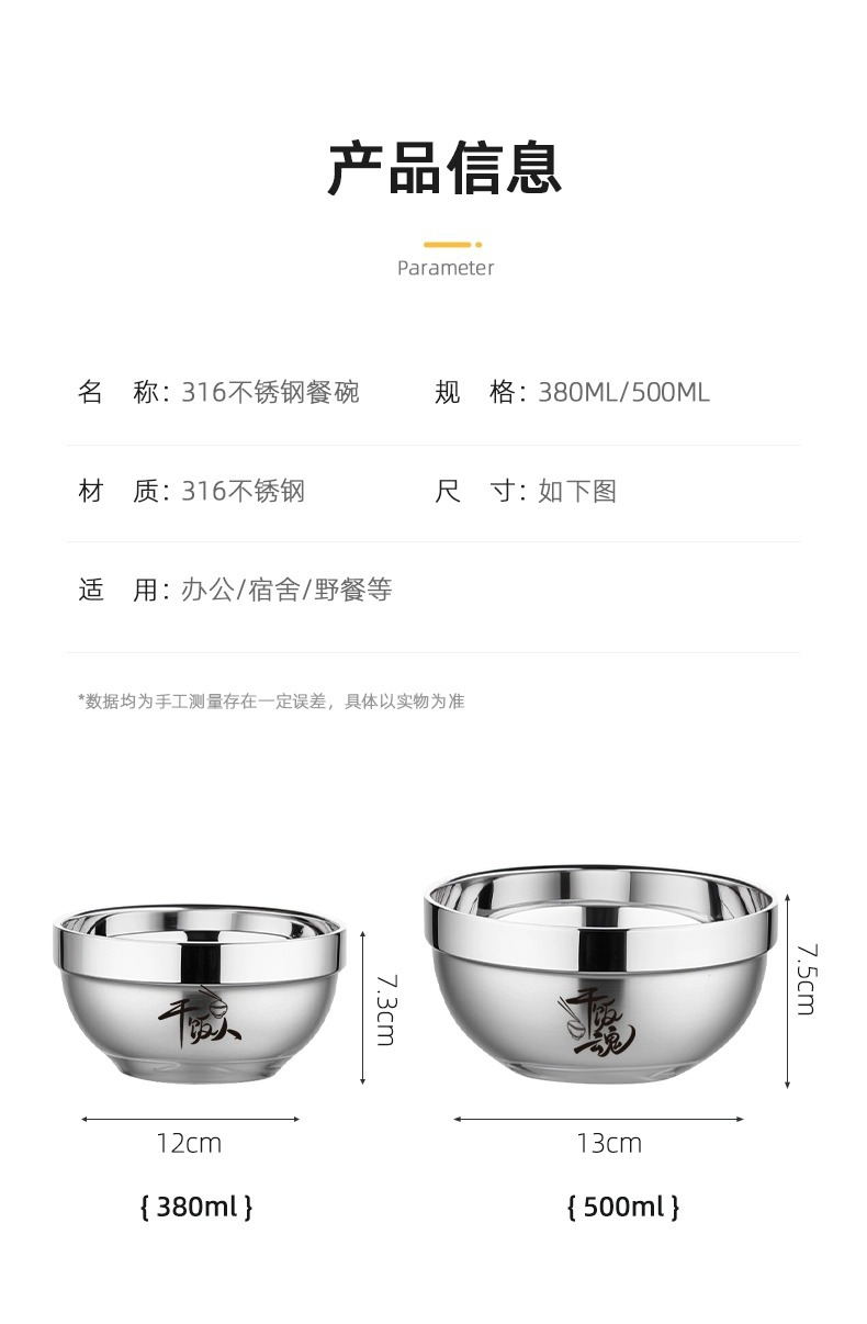 食品级316不锈钢碗家用干饭人食堂打饭个人专用吃饭碗泡面大碗锅