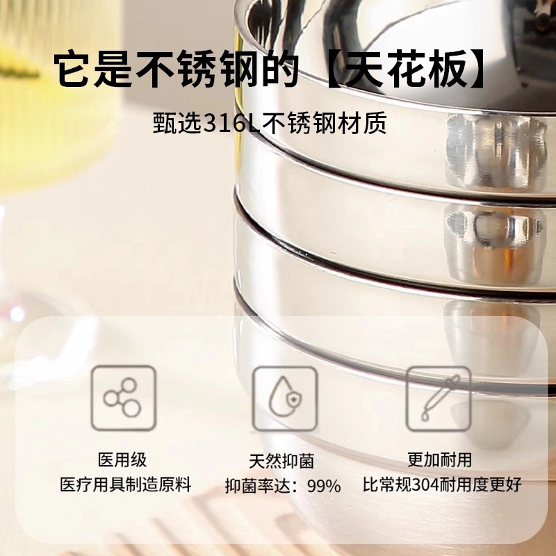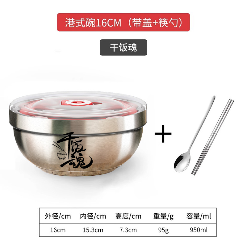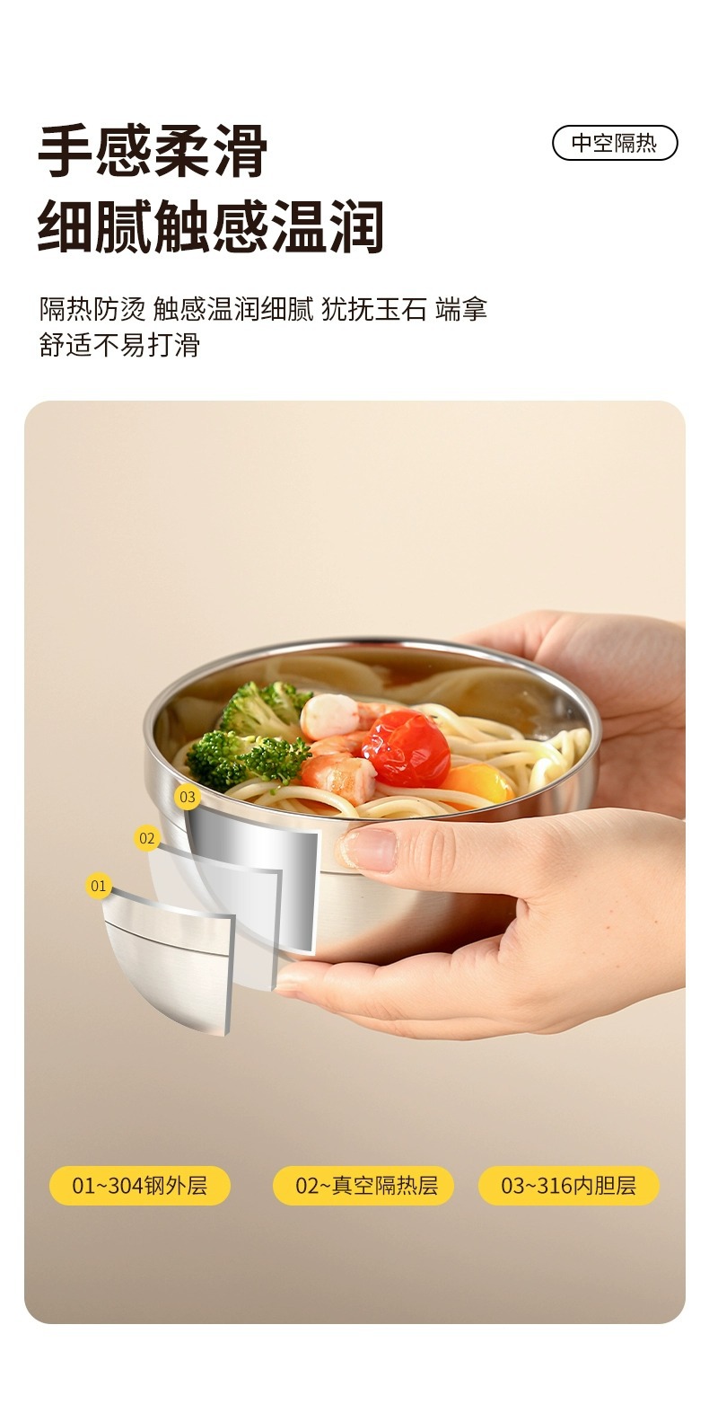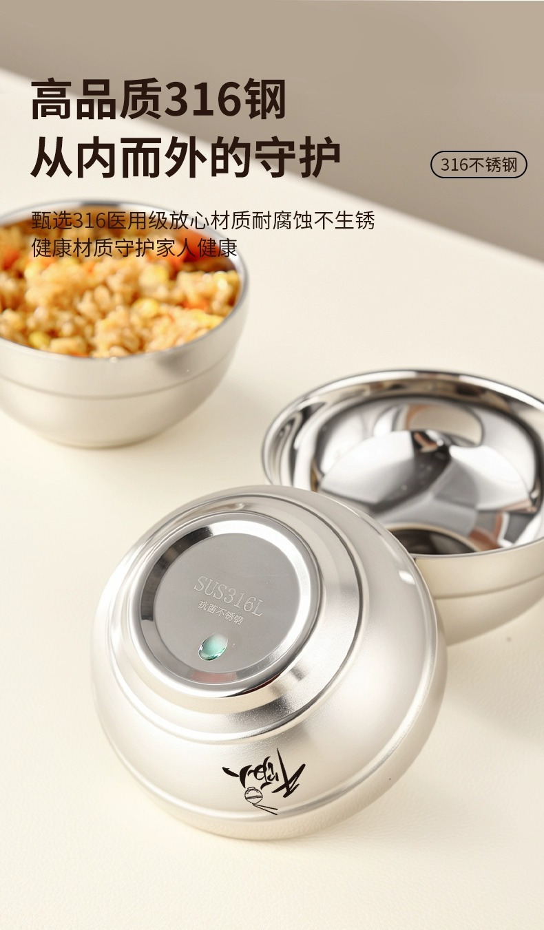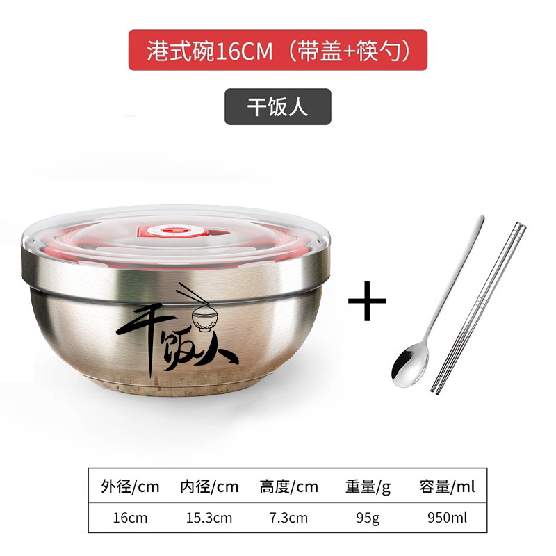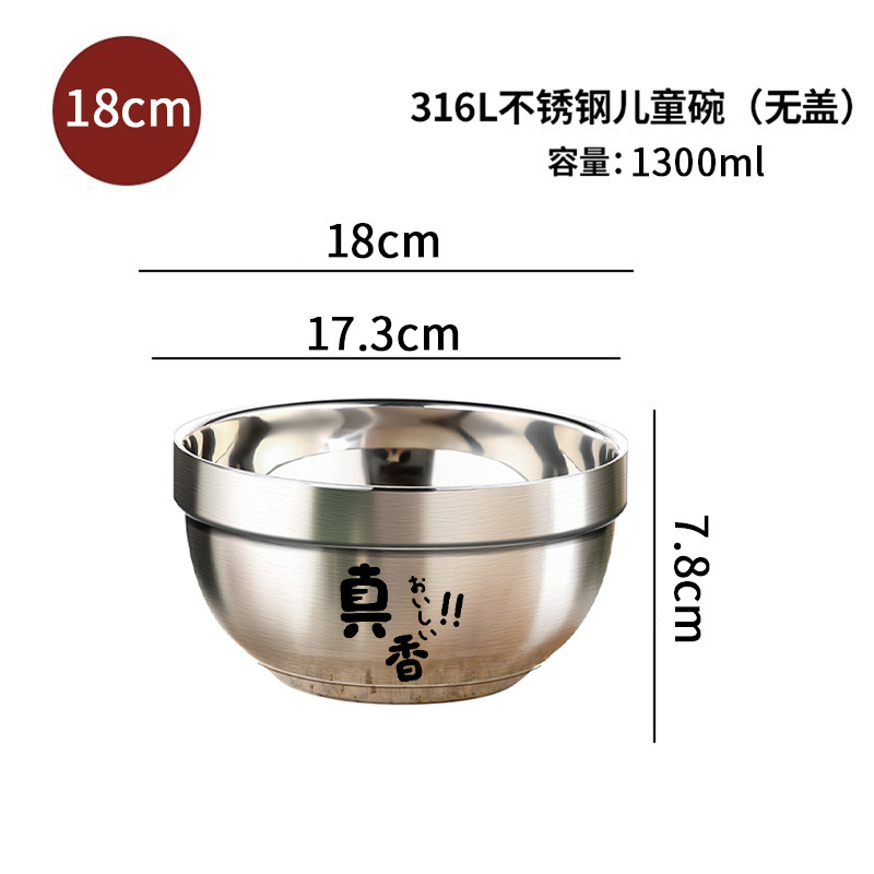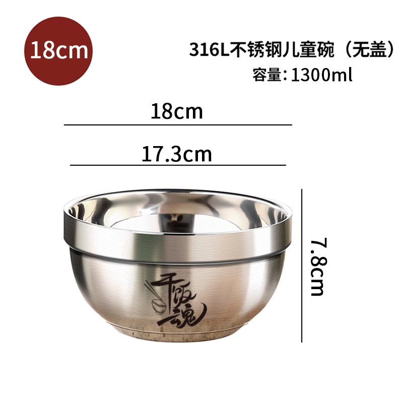 食品级316不锈钢碗家用干饭人食堂打饭个人专用吃饭碗泡面大碗锅