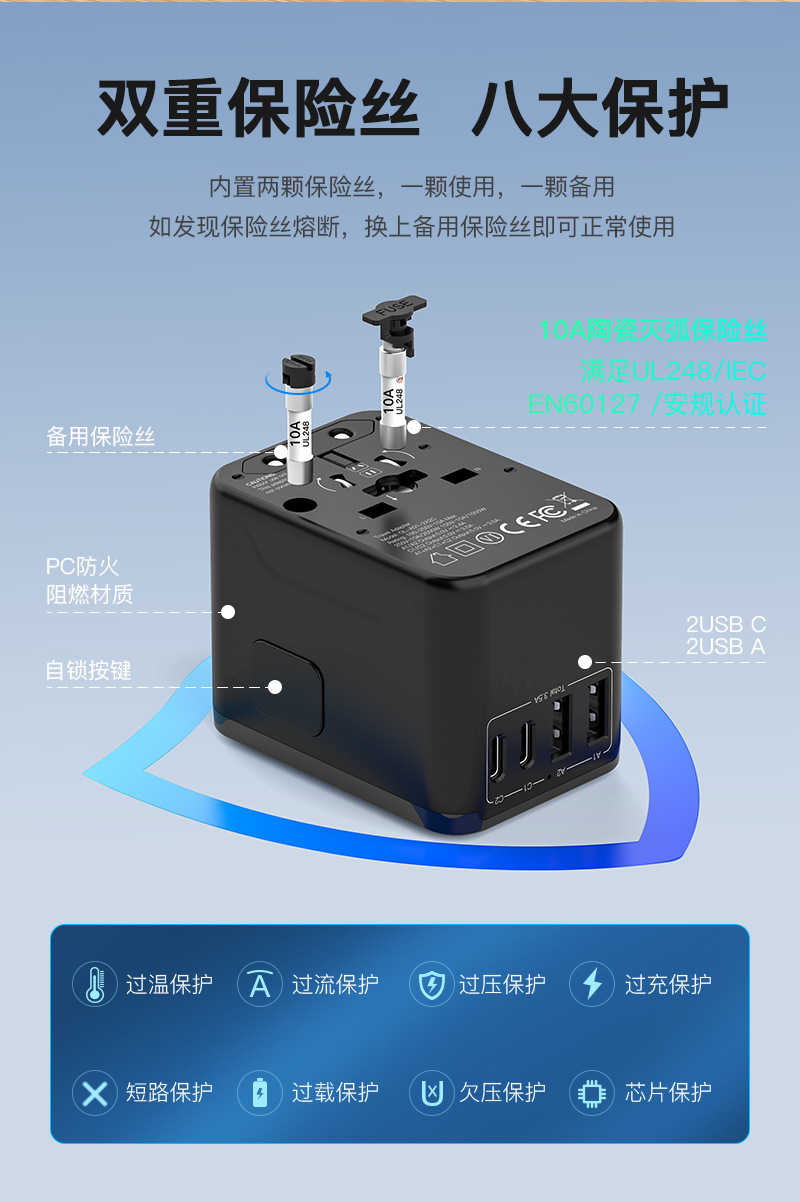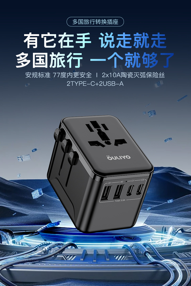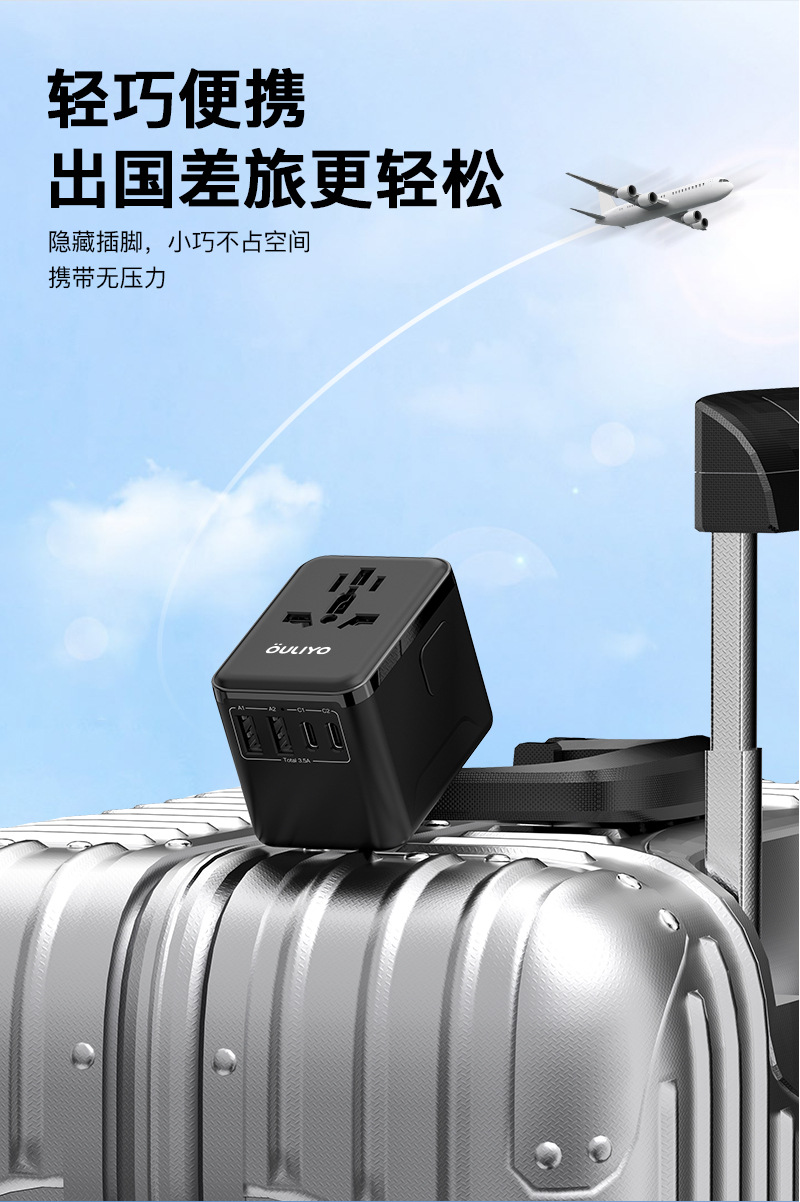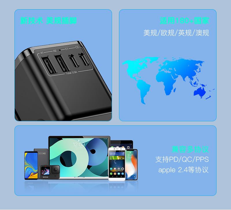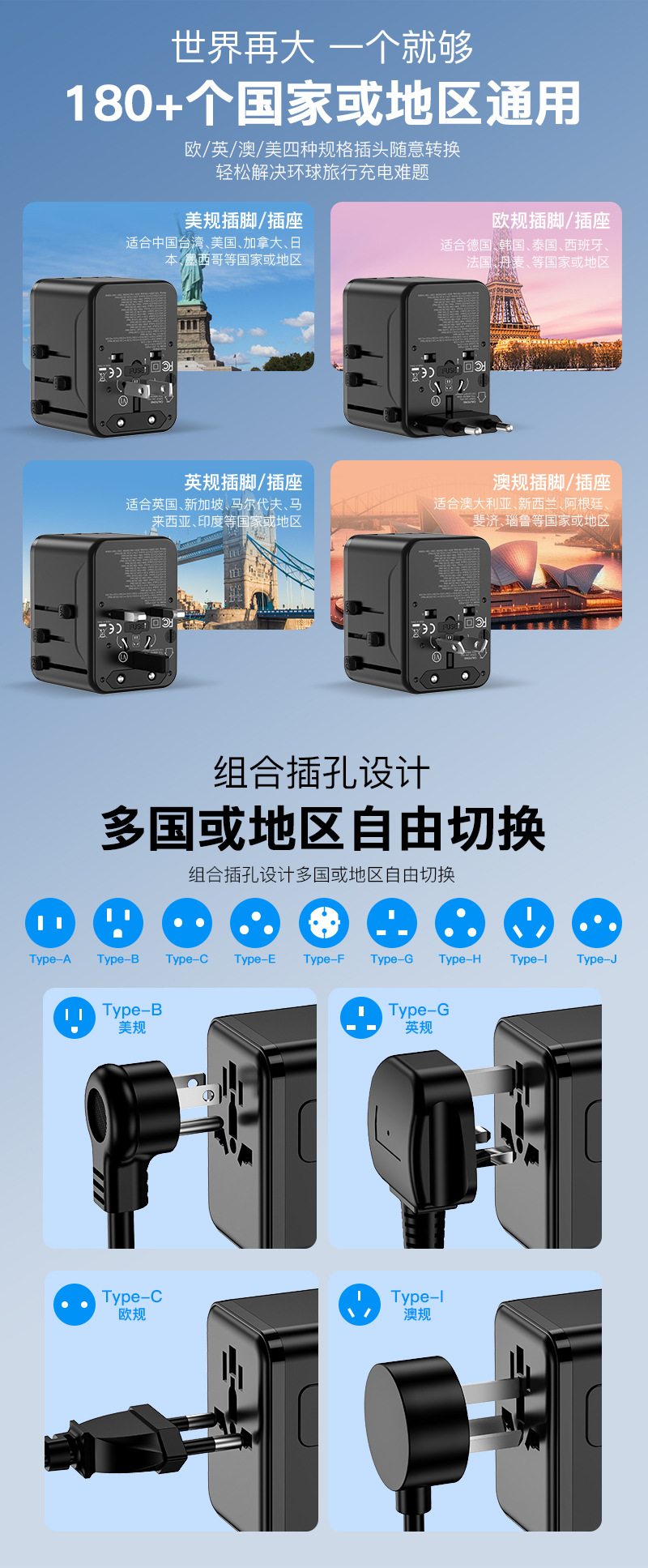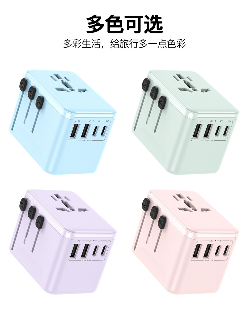 全新多功能转换插头全球通2A2C口快充3.5A插座转换器多国旅行插头