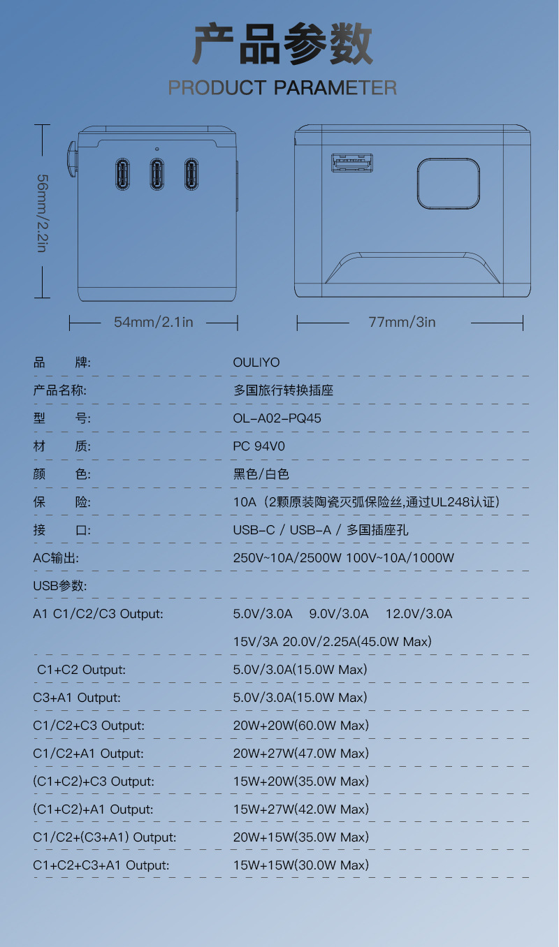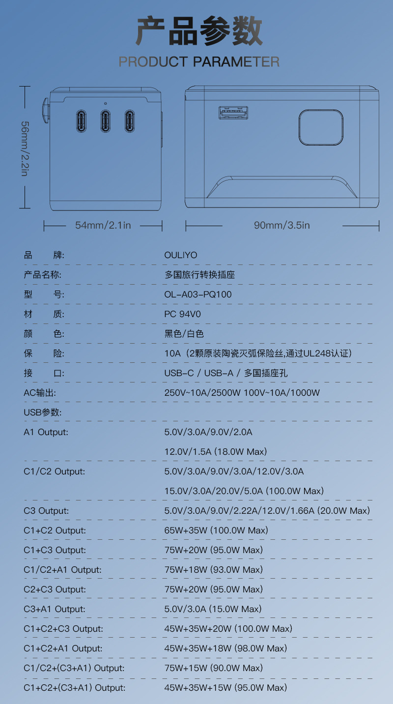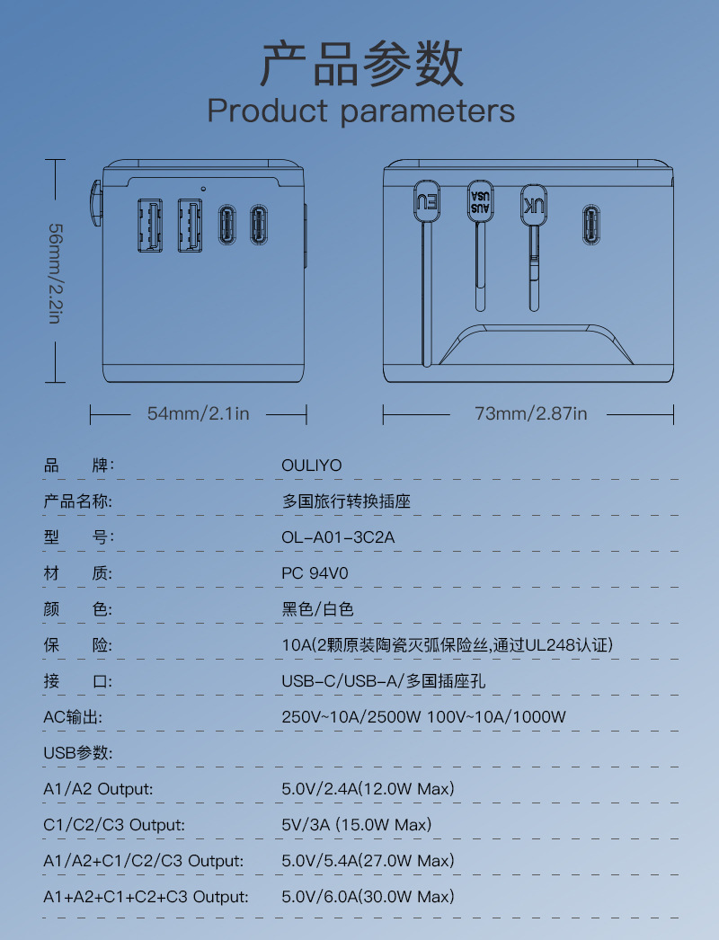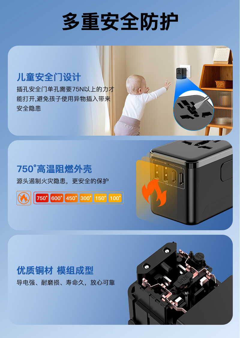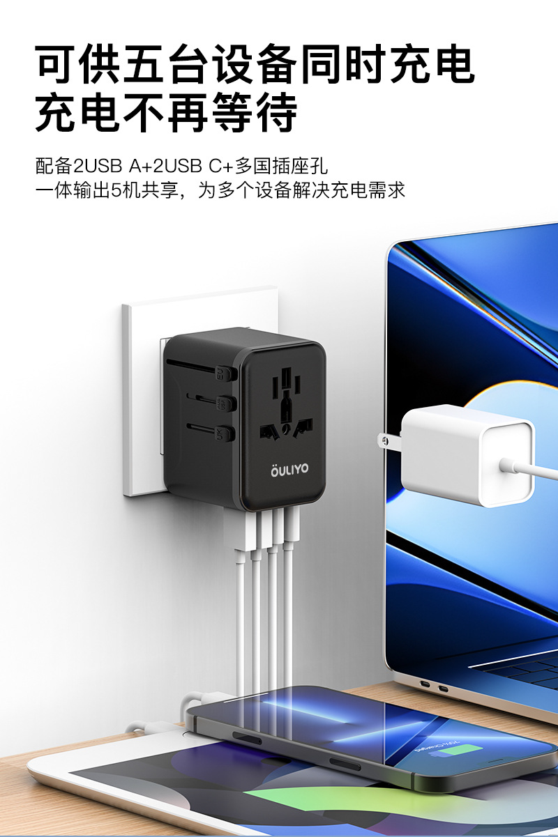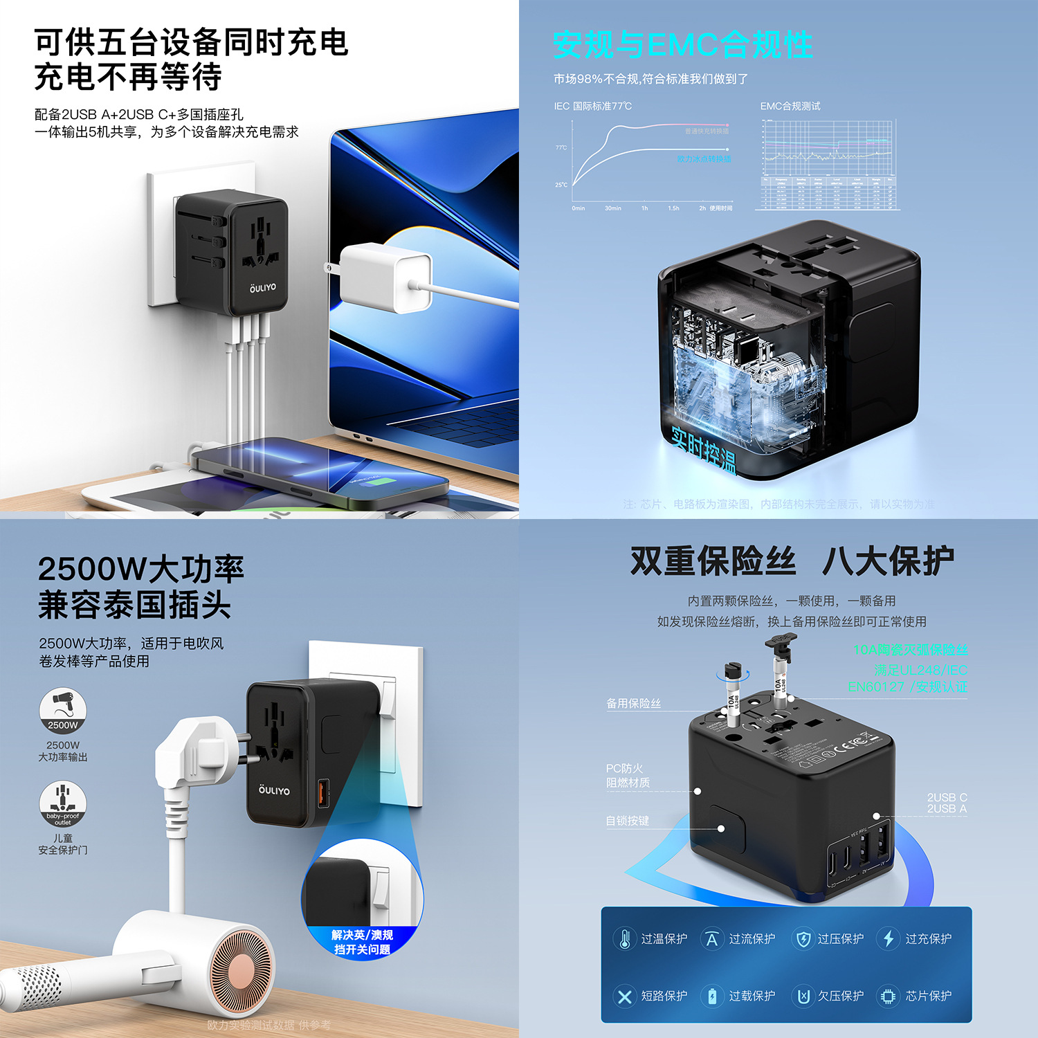 全新多功能转换插头全球通2A2C口快充3.5A插座转换器多国旅行插头