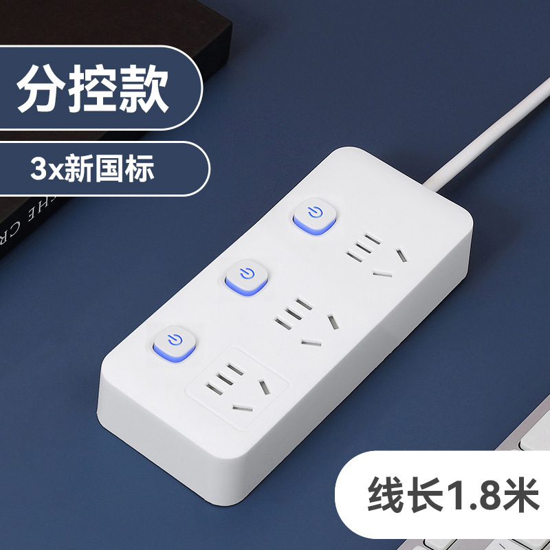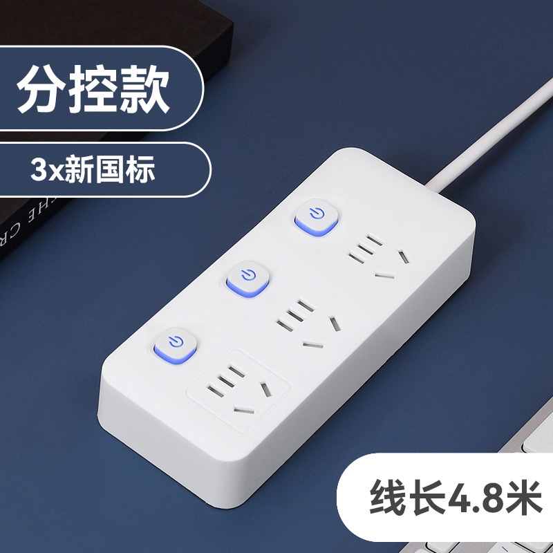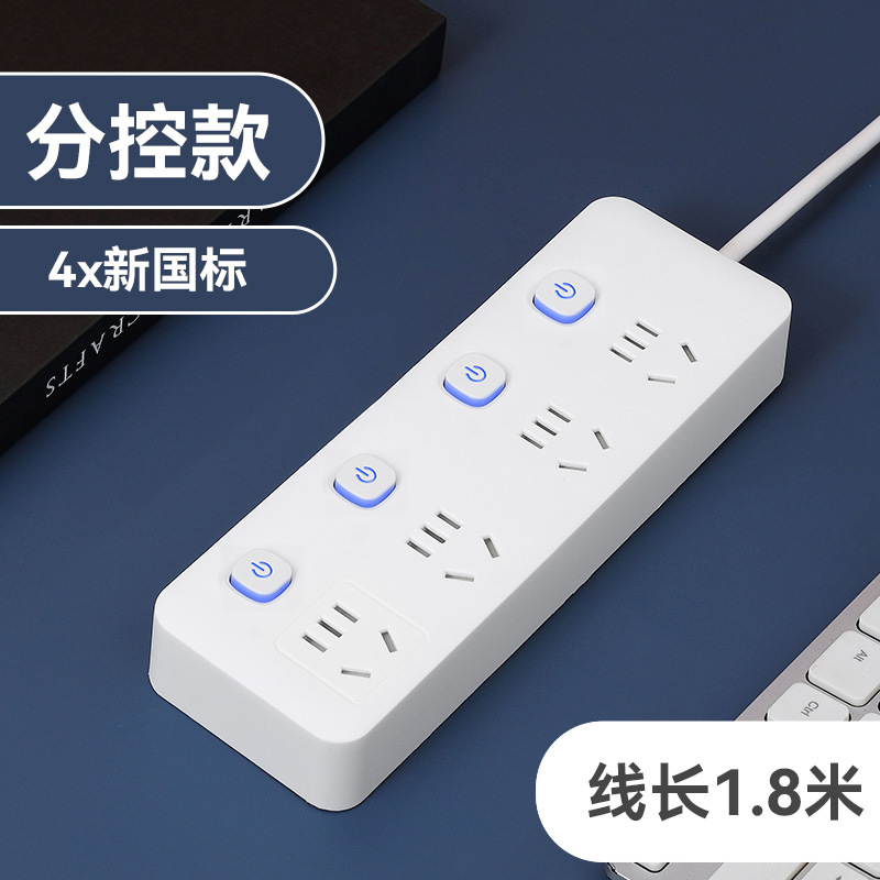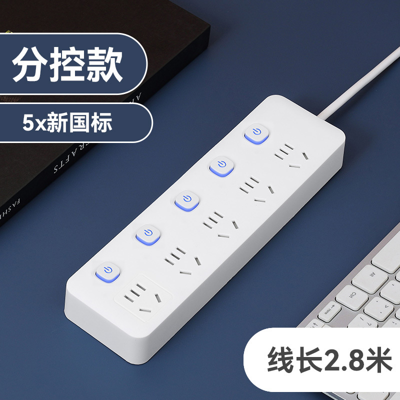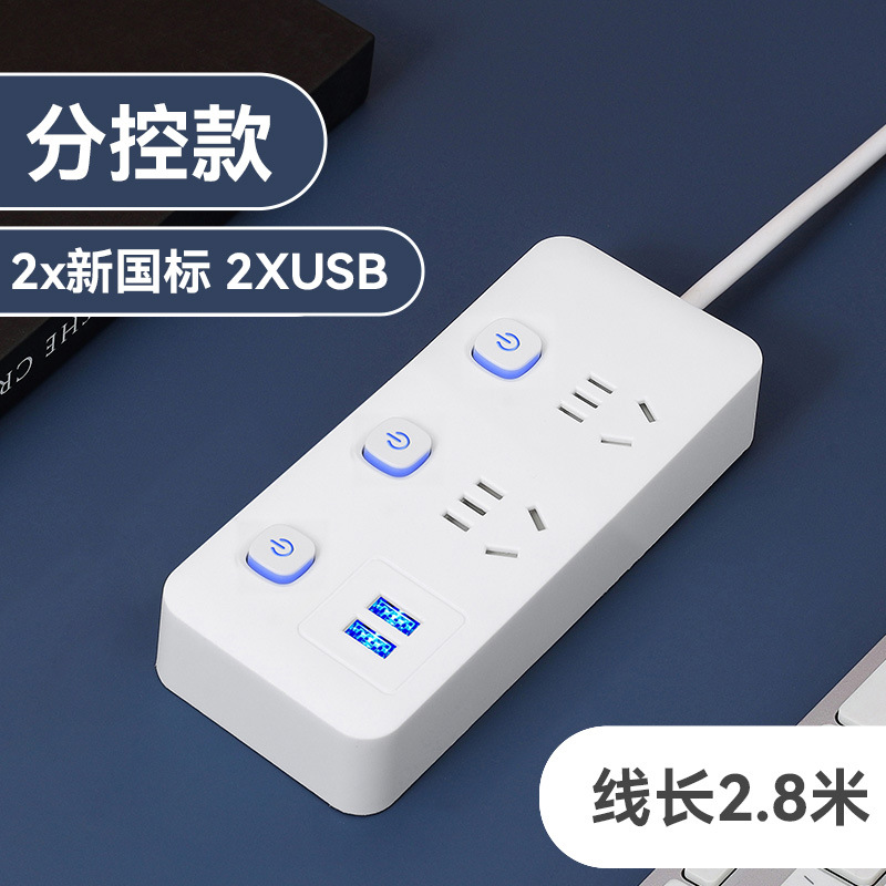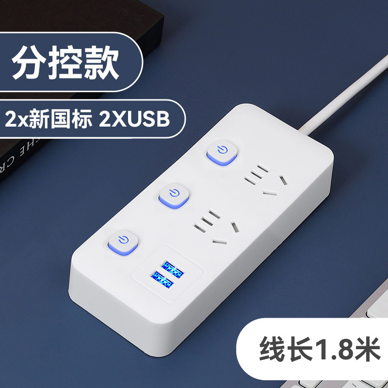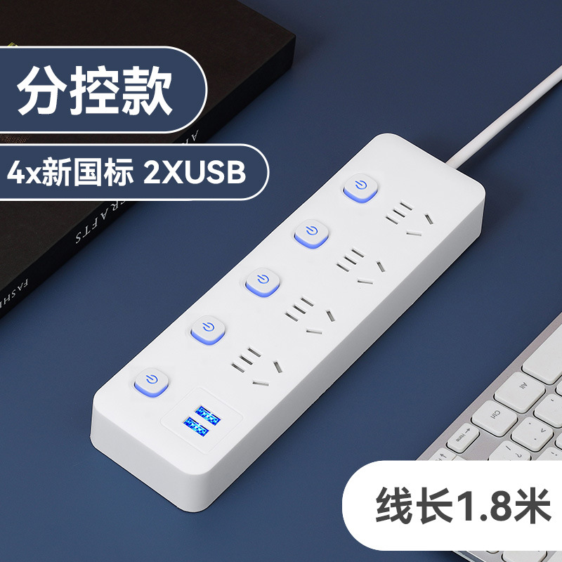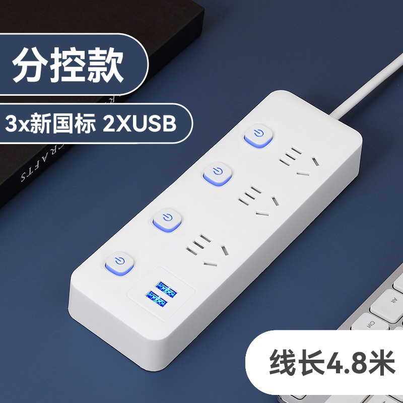 米用家用延长线多功能插排USB插口分控插座多位插线板总控LED开关