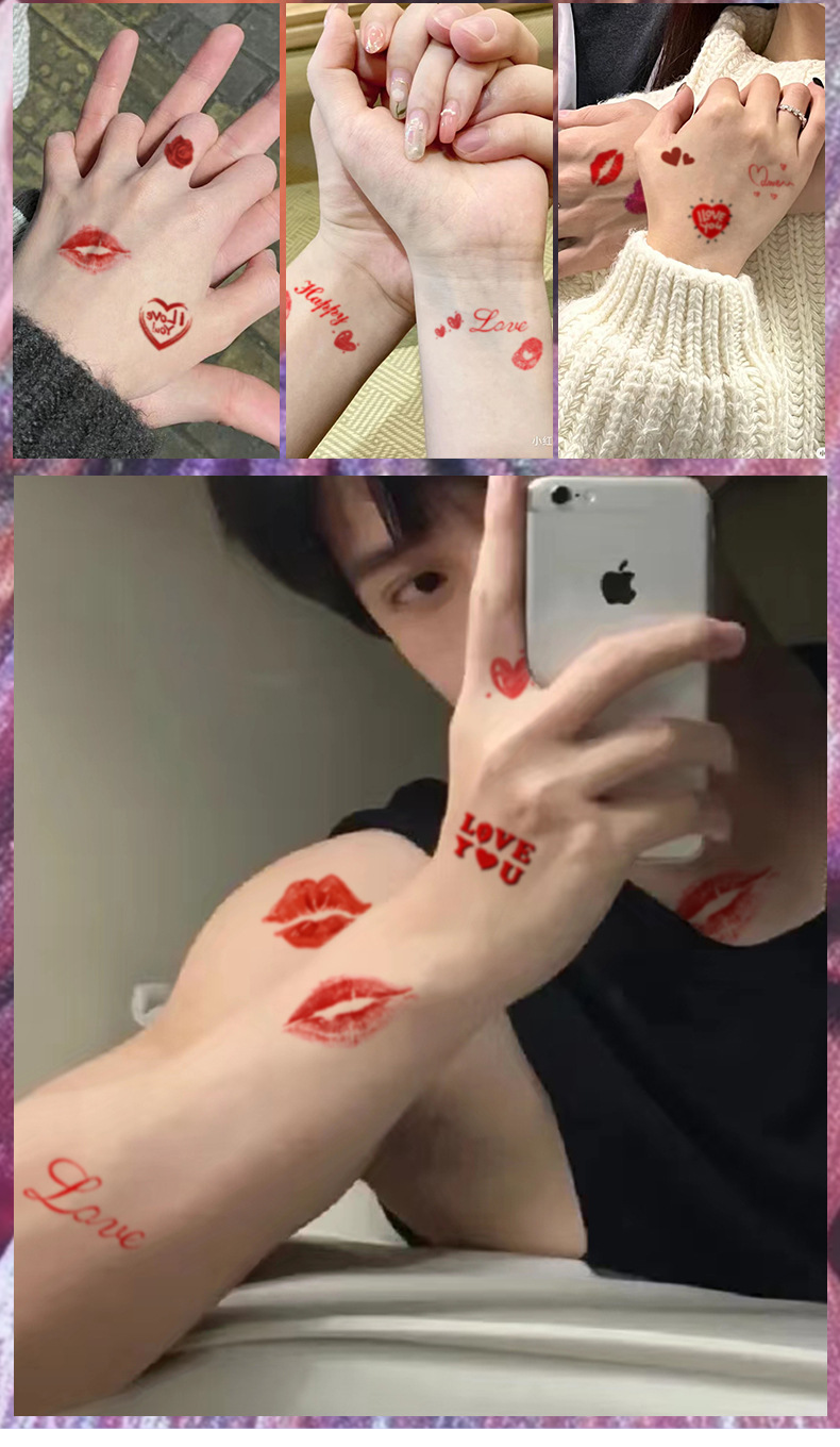 情人节爱心红唇纹身贴气息节日约会情侣表白一次性贴纸防水丘比特