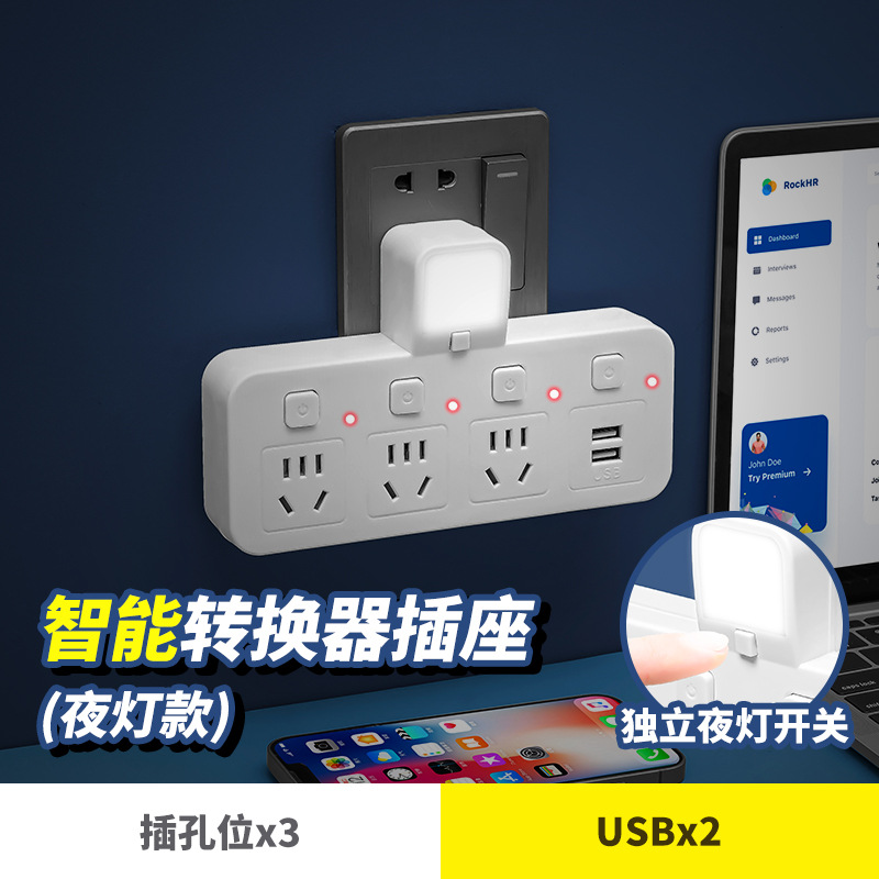 家用插座转换器多孔面板无线排插插板插排带usb一转多用功能插头