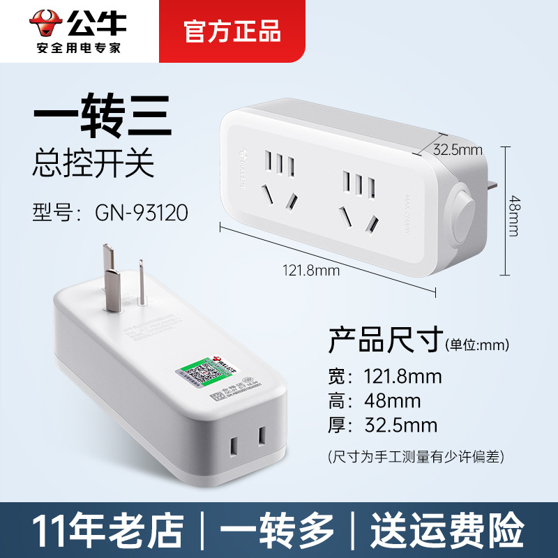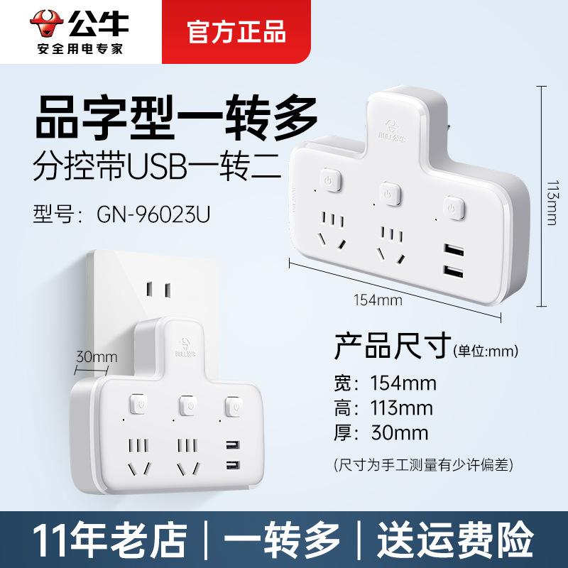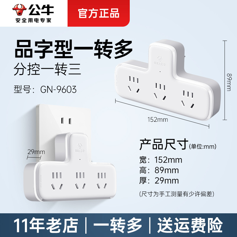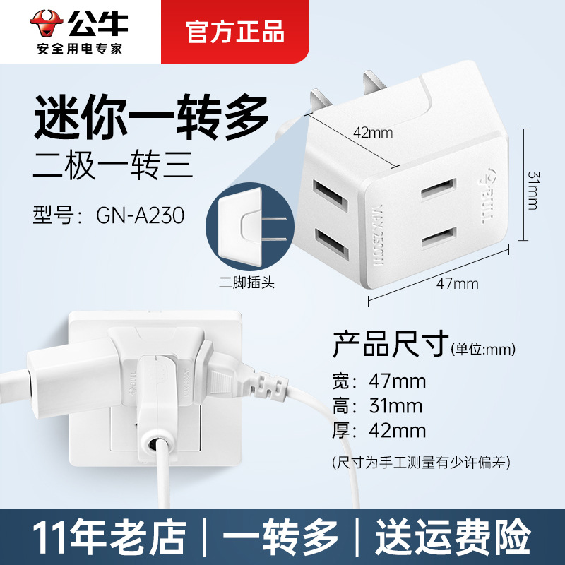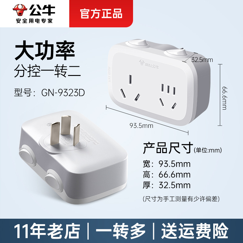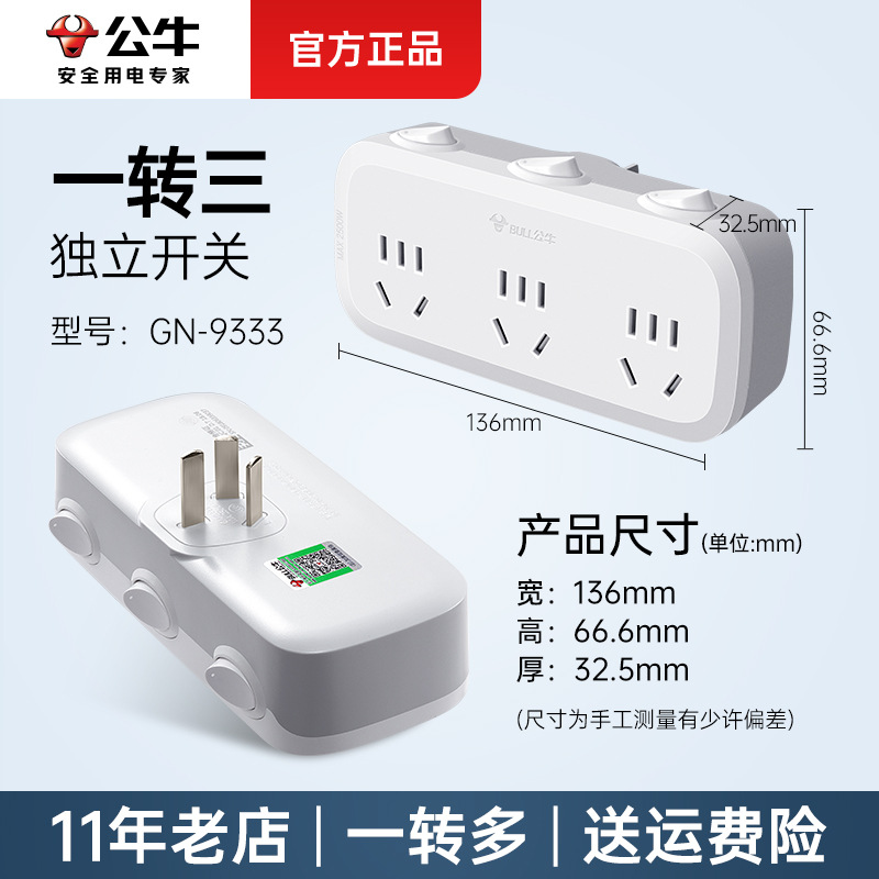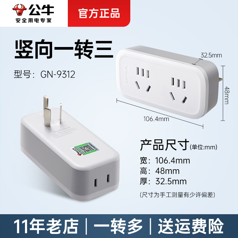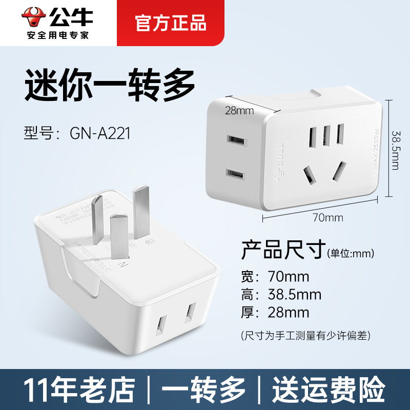 公牛转换插座多功能插座一转多带线二三四转换器转换插头扩展插排
