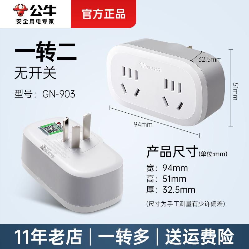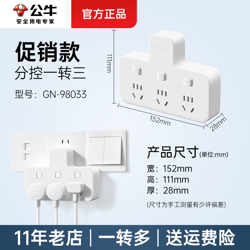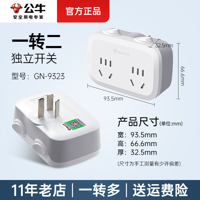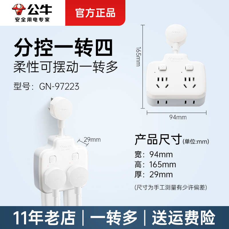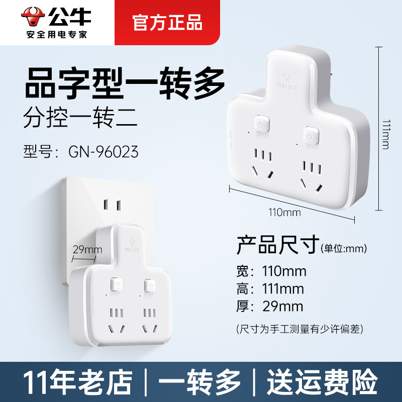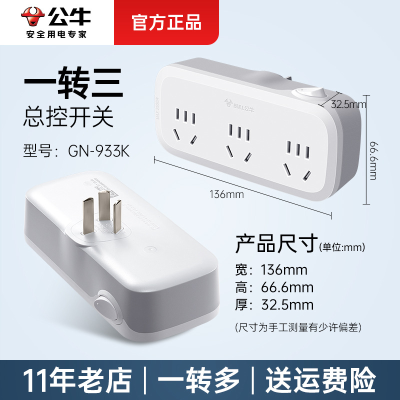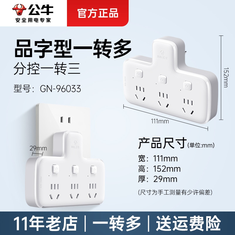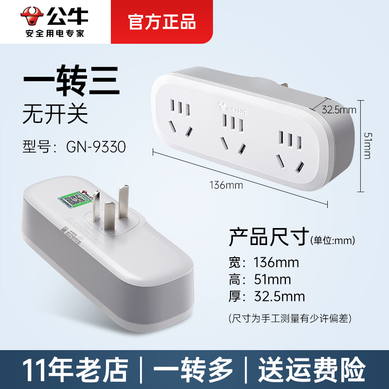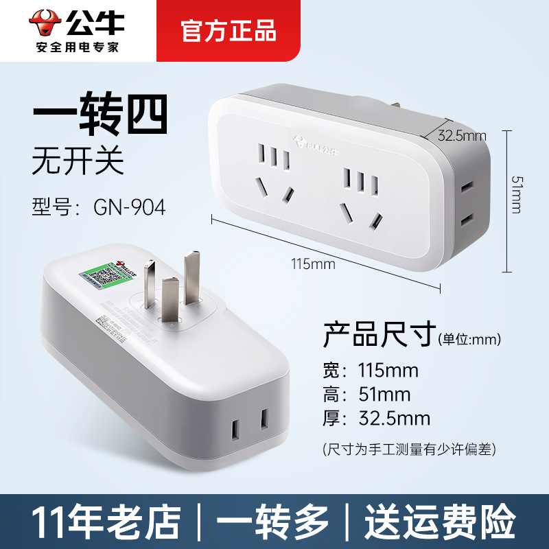 公牛转换插座多功能插座一转多带线二三四转换器转换插头扩展插排