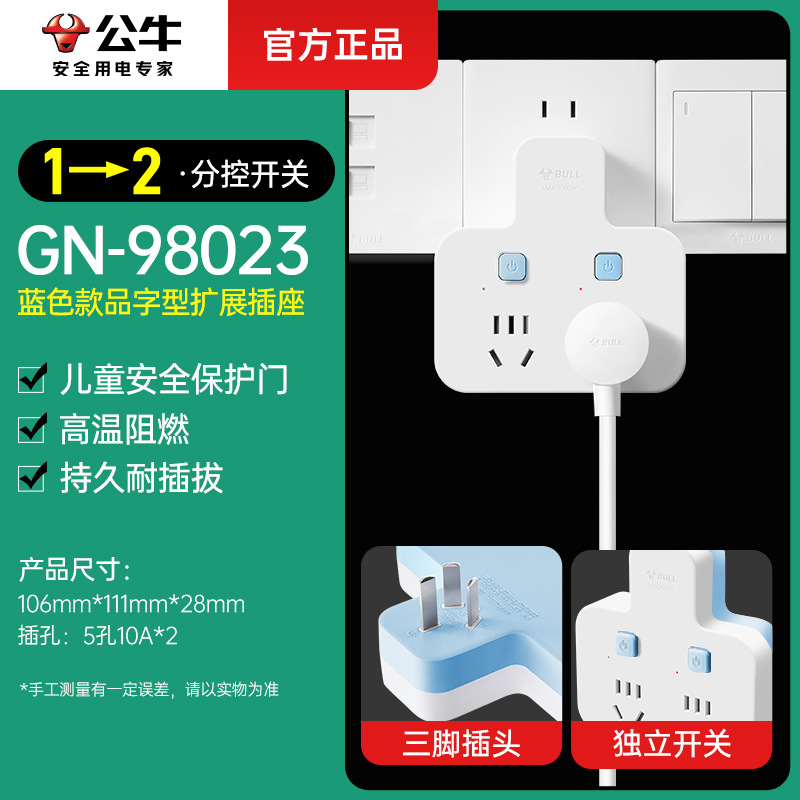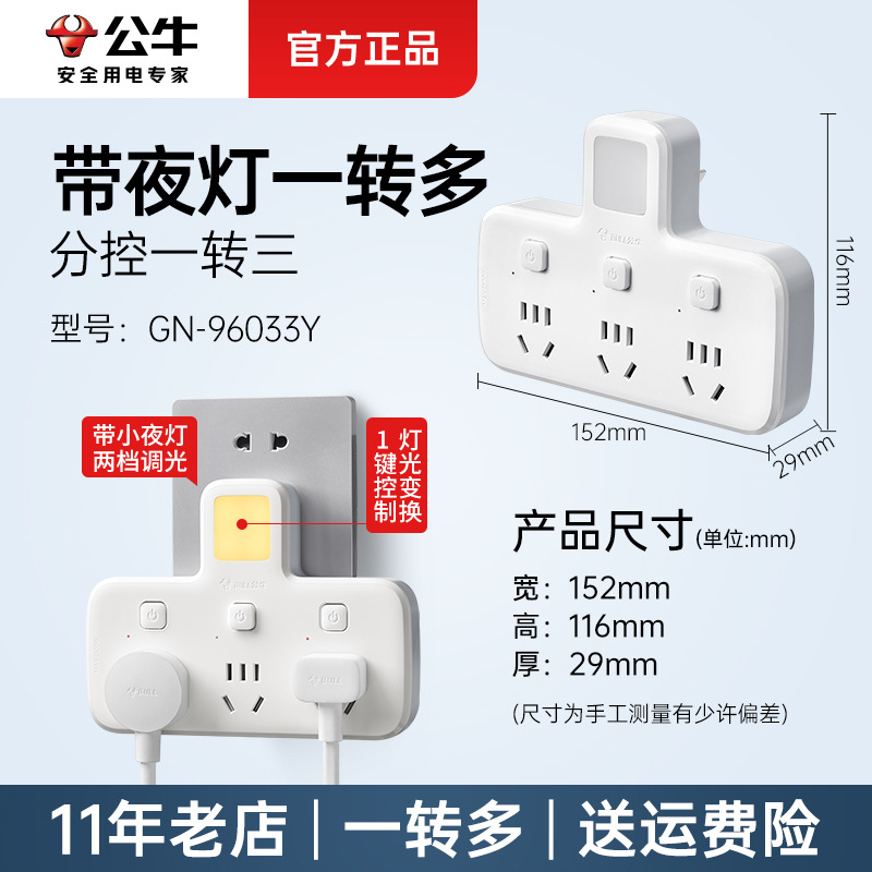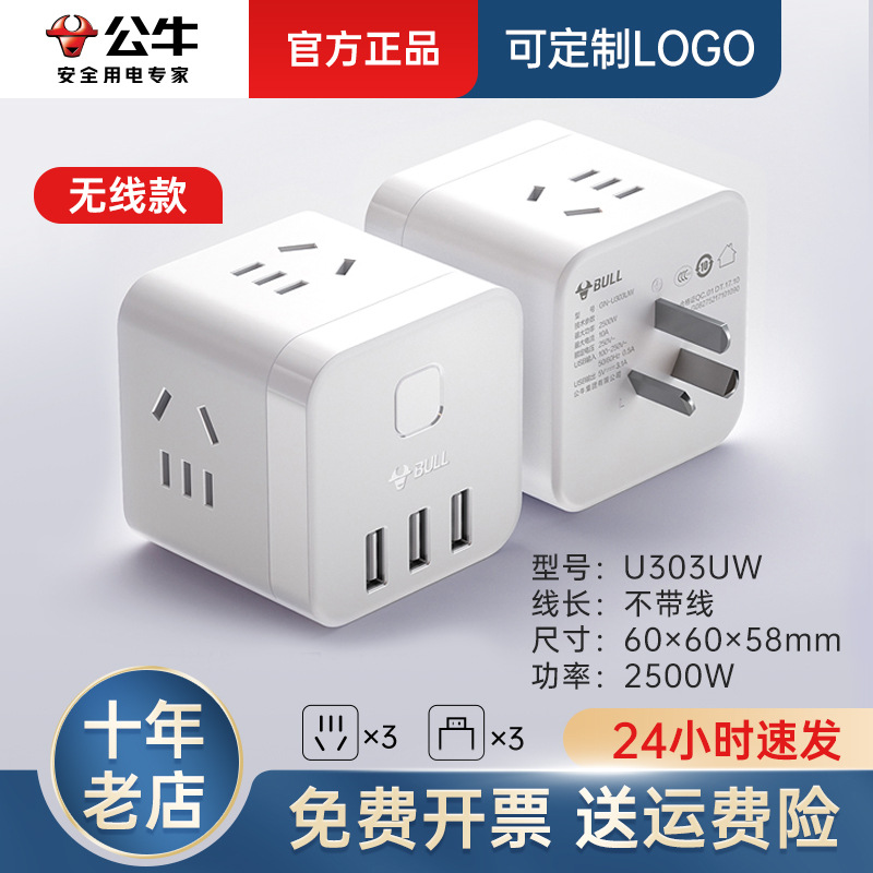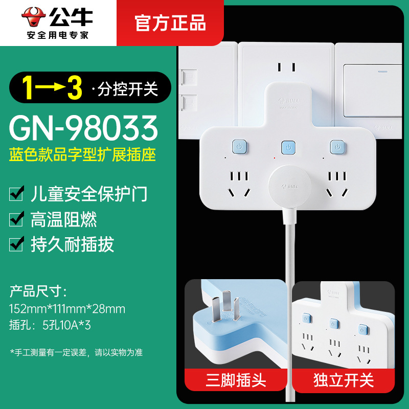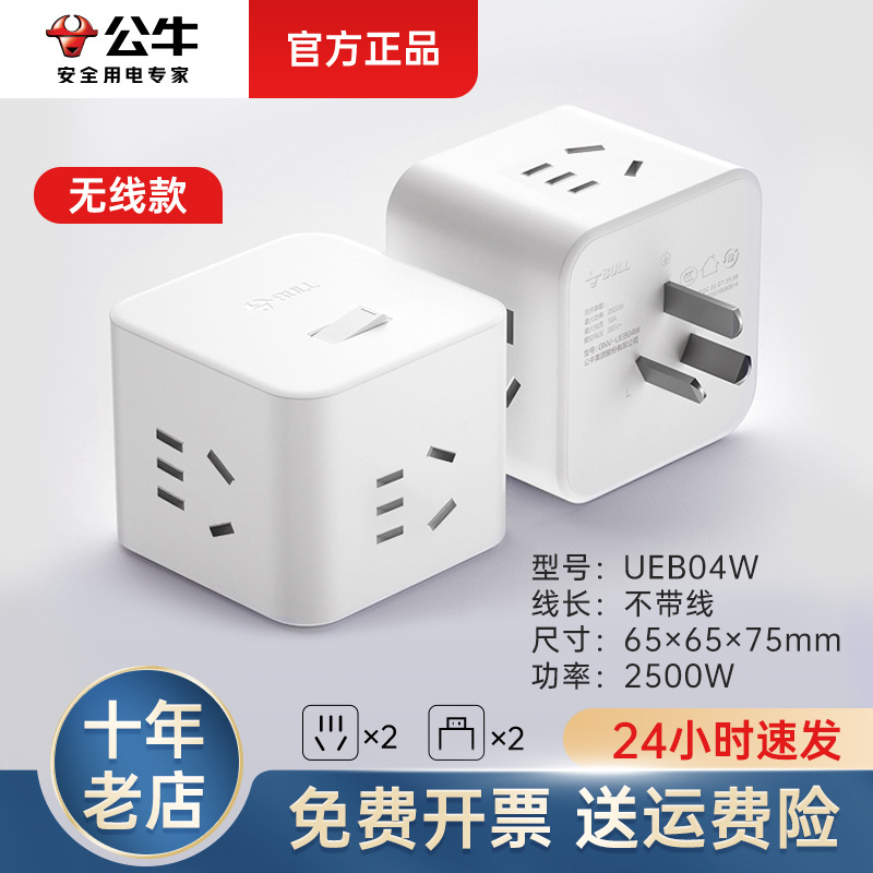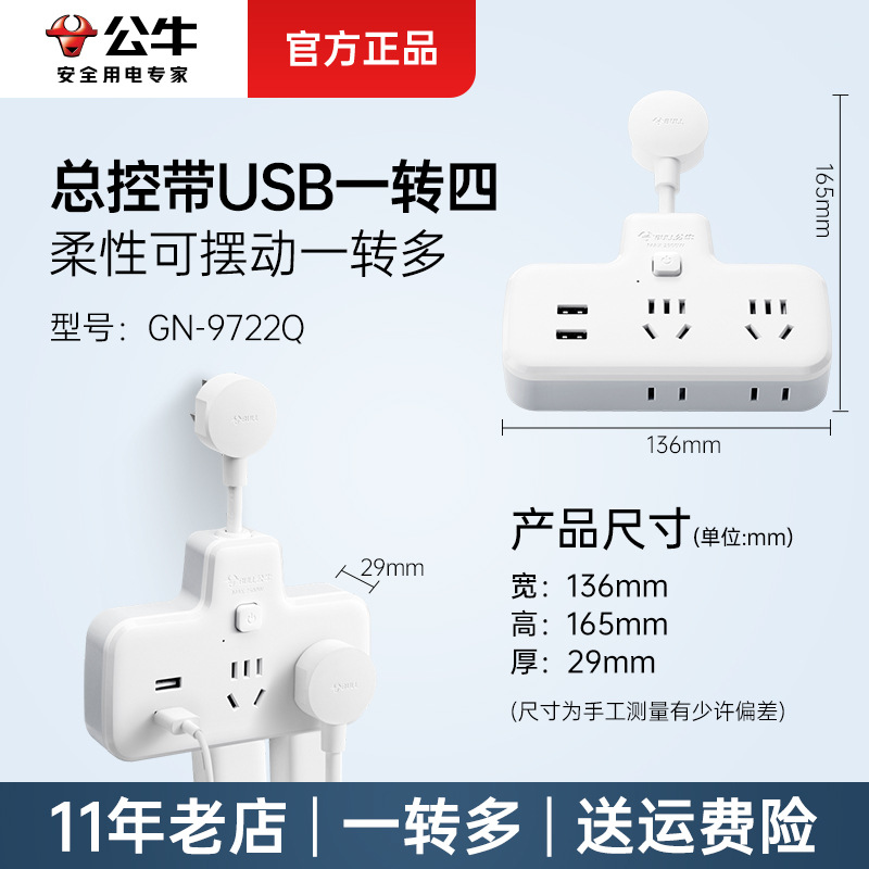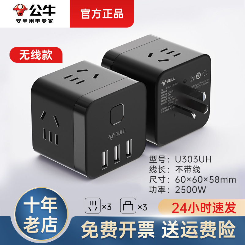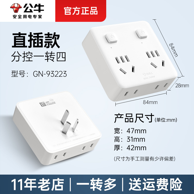公牛转换插座多功能插座一转多带线二三四转换器转换插头扩展插排