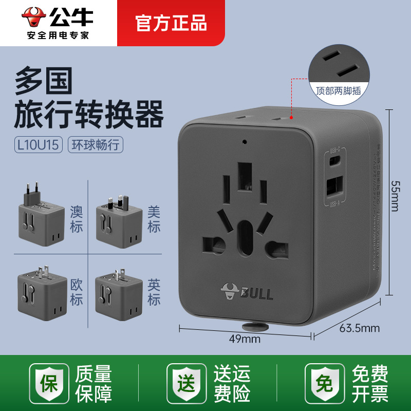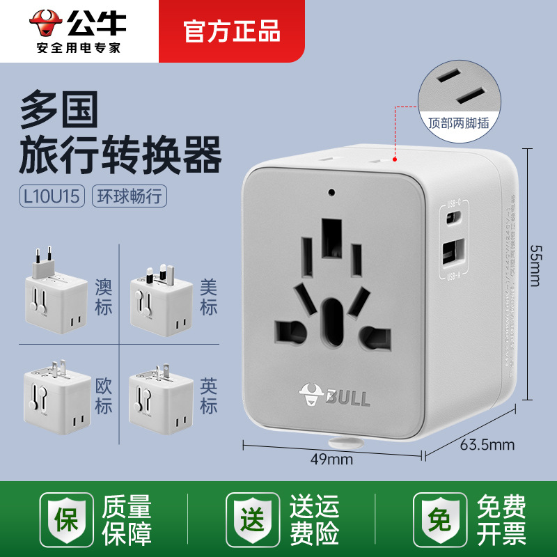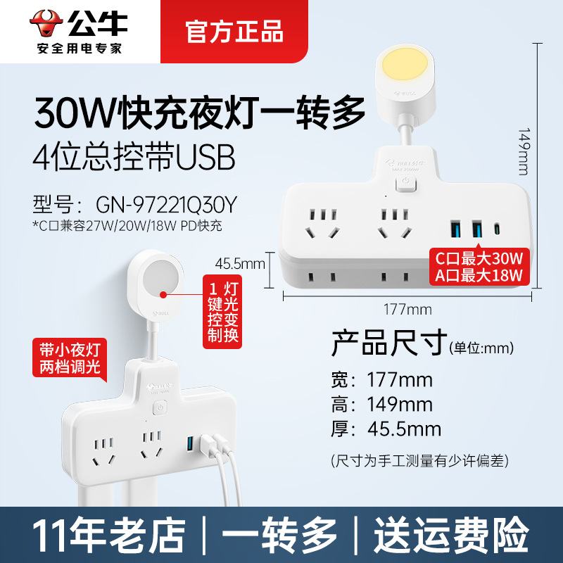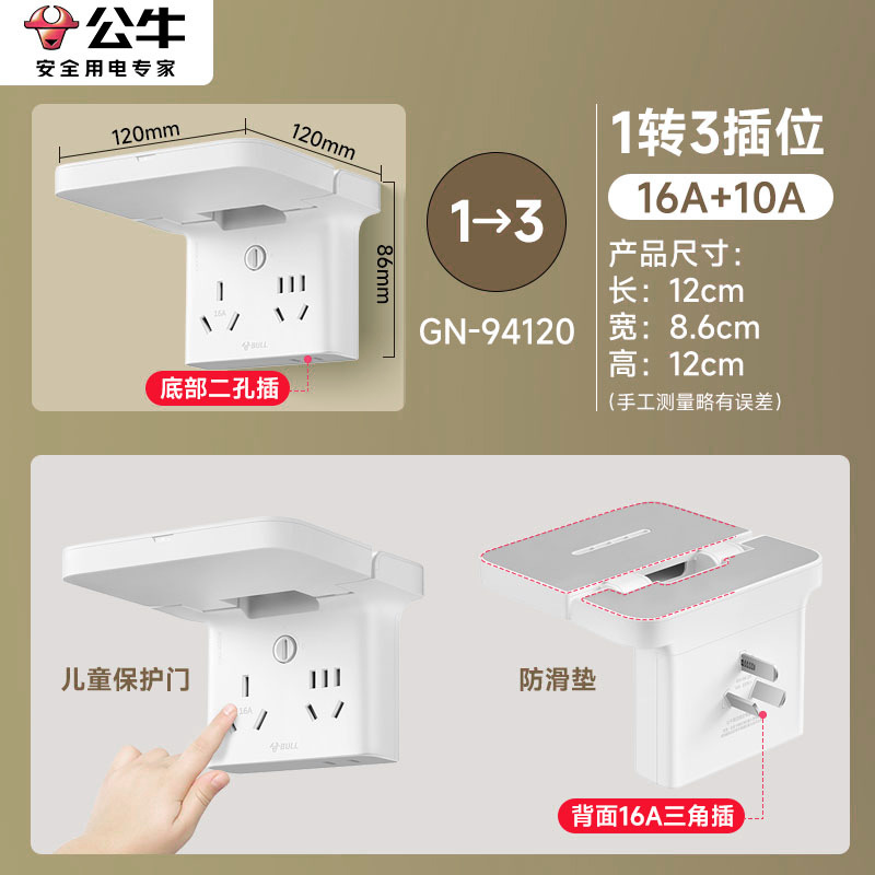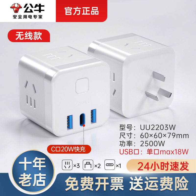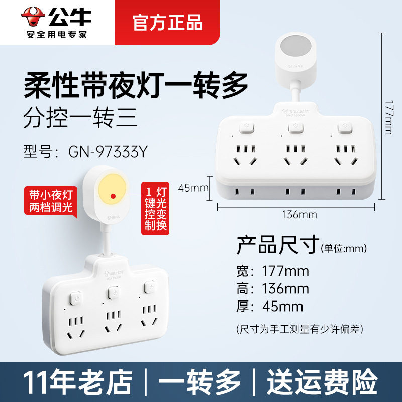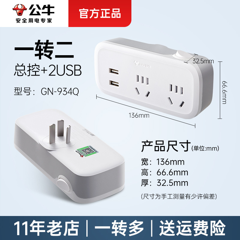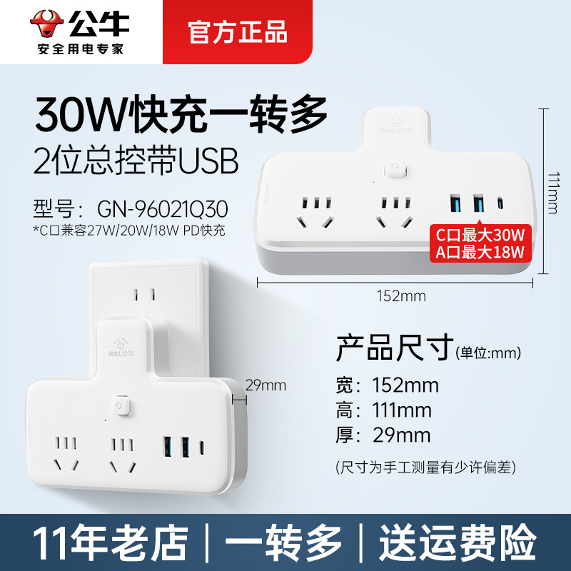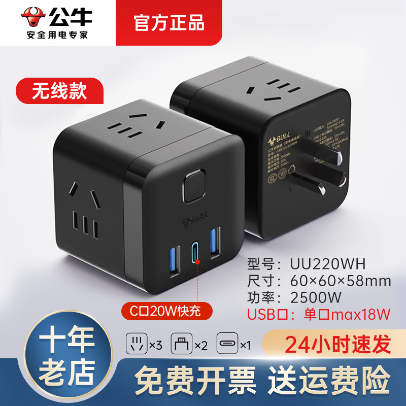 公牛转换插座多功能插座一转多带线二三四转换器转换插头扩展插排