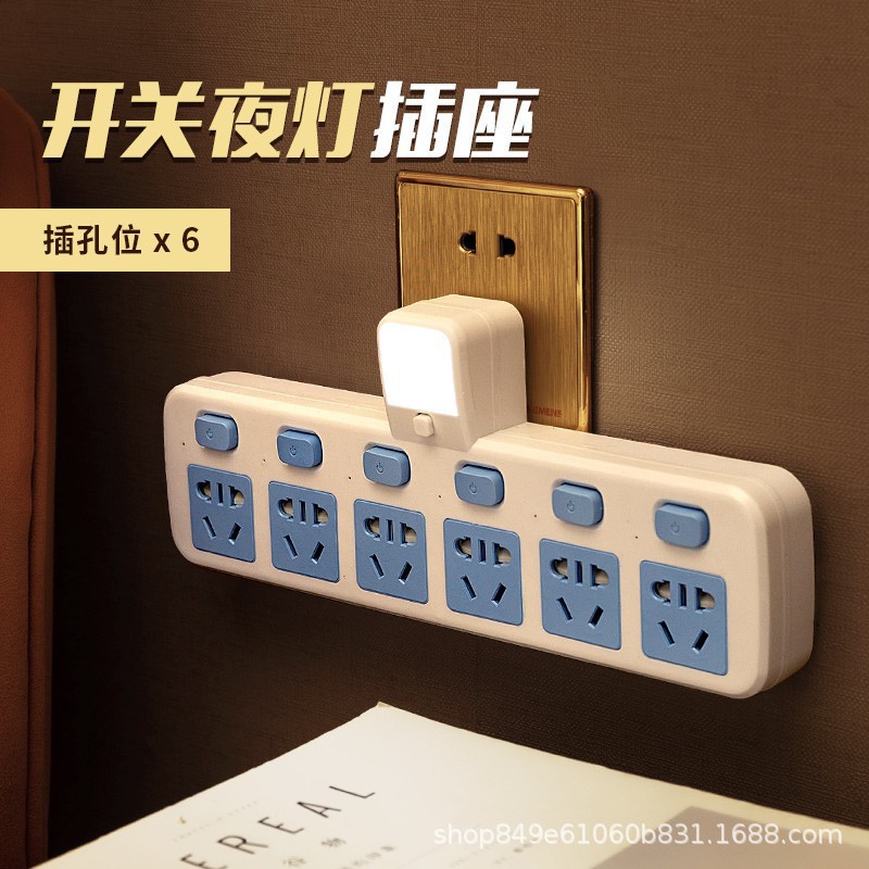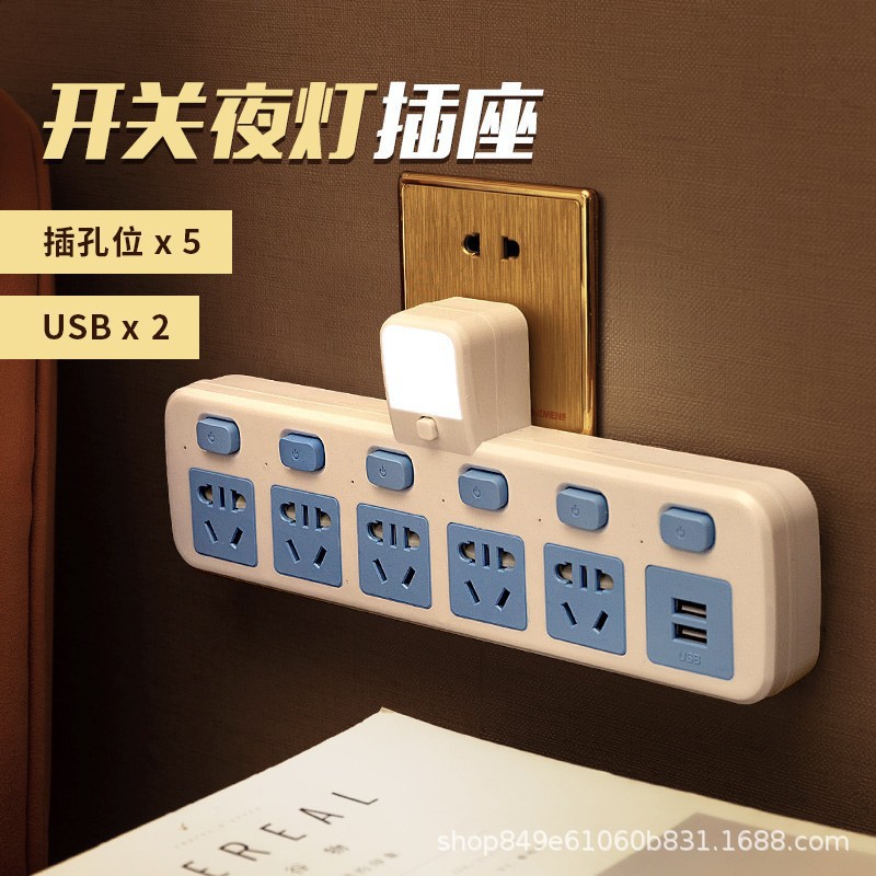 公正牛插座转换器多孔面板夜灯USB排插插板插排一转多用功能面板