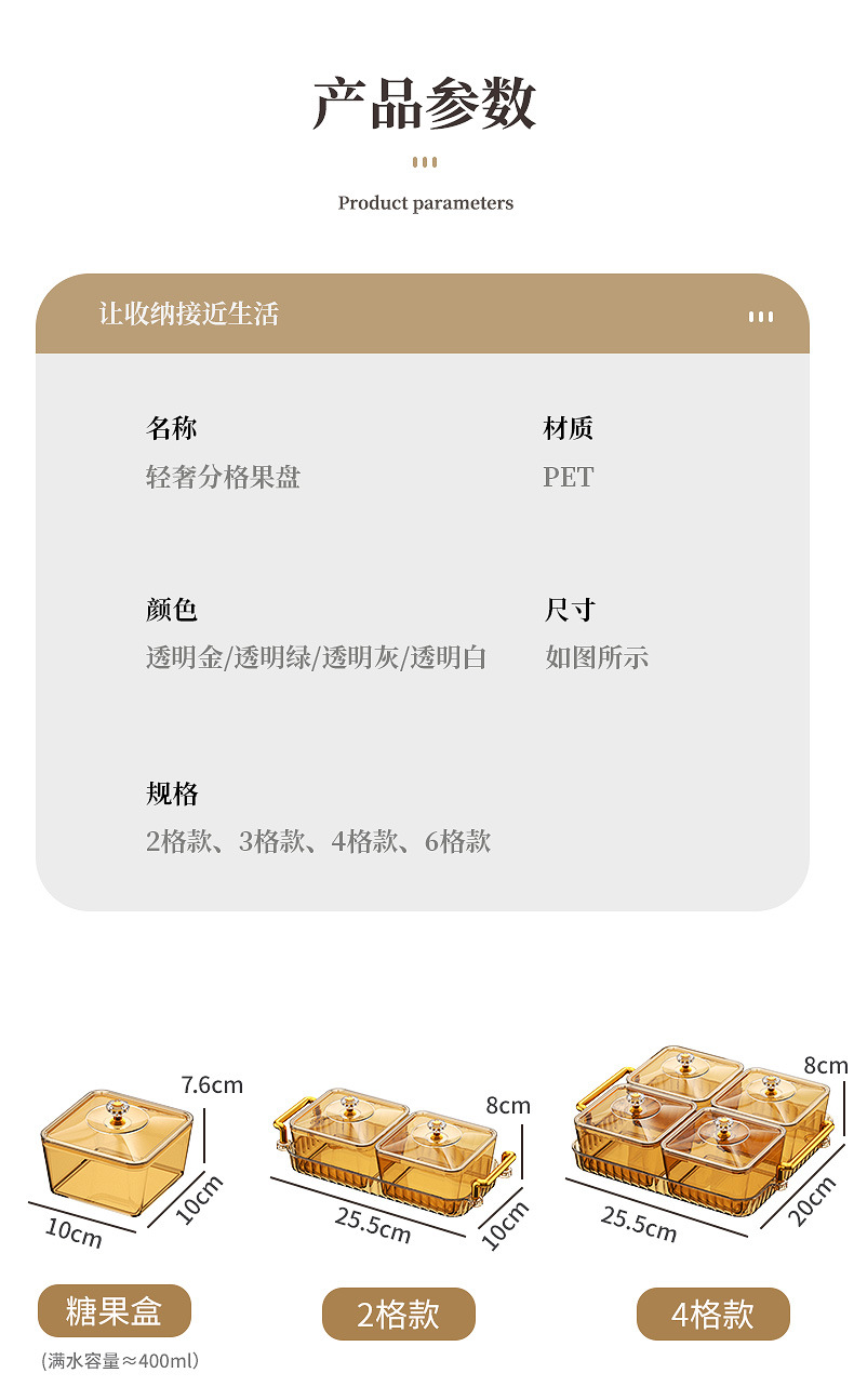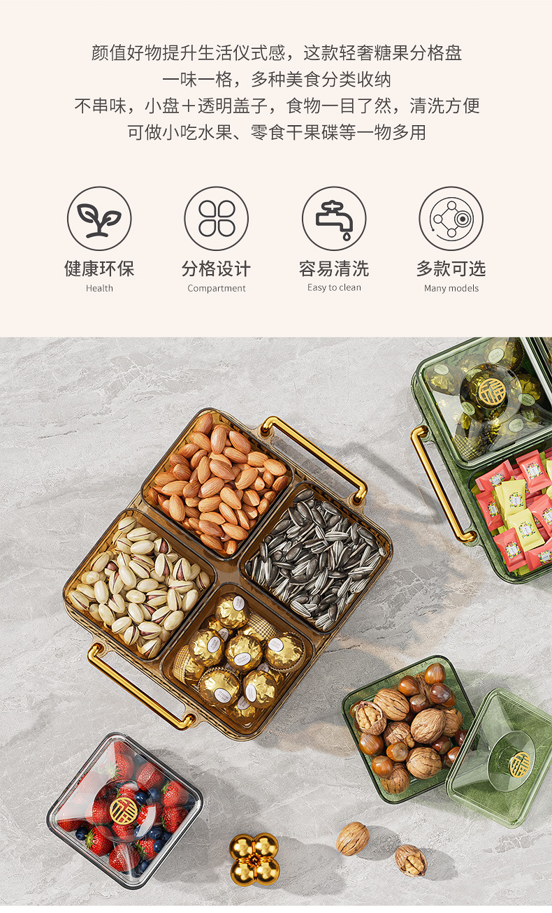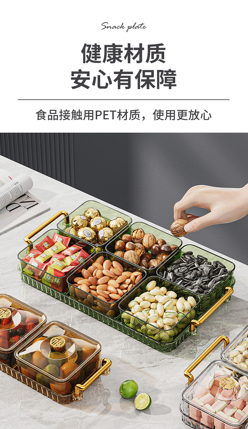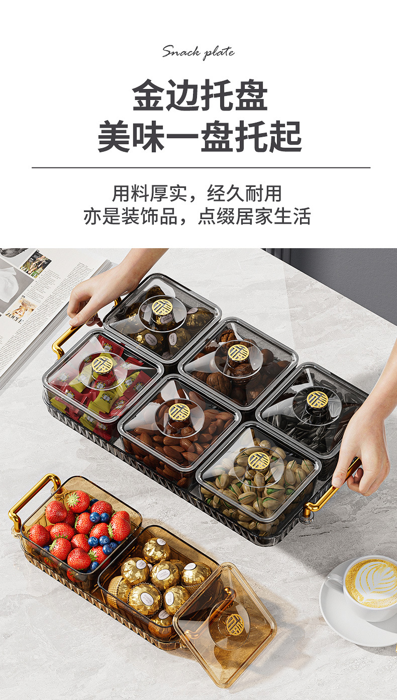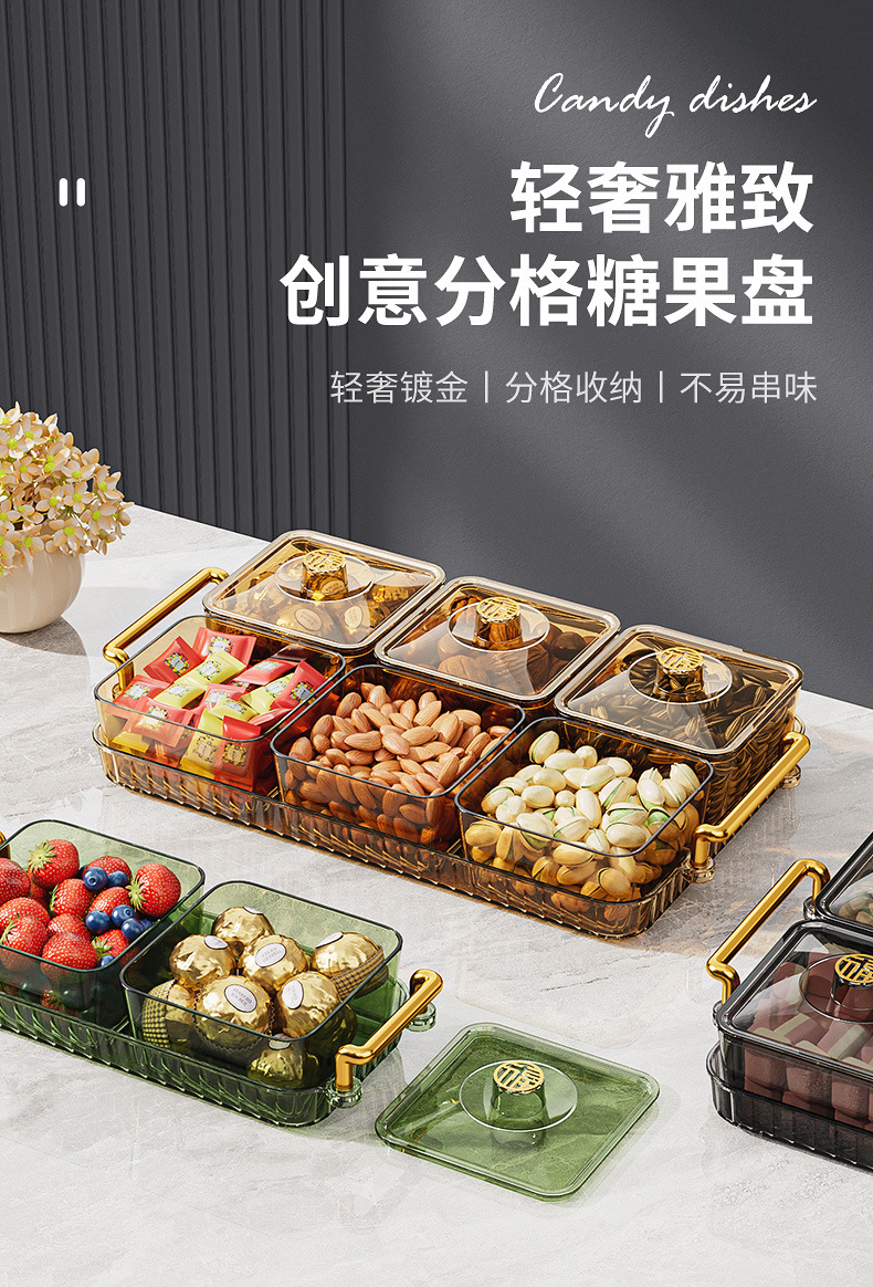 轻奢分格干果盘家用客厅拼盘糖果盒高颜值坚果盘收纳果盘水果托盘