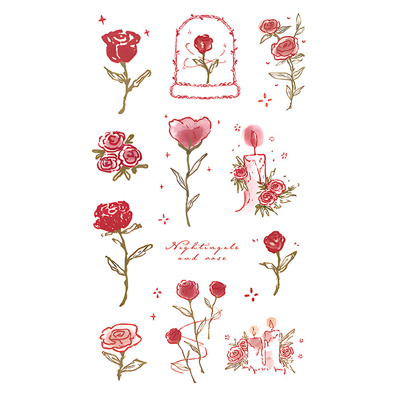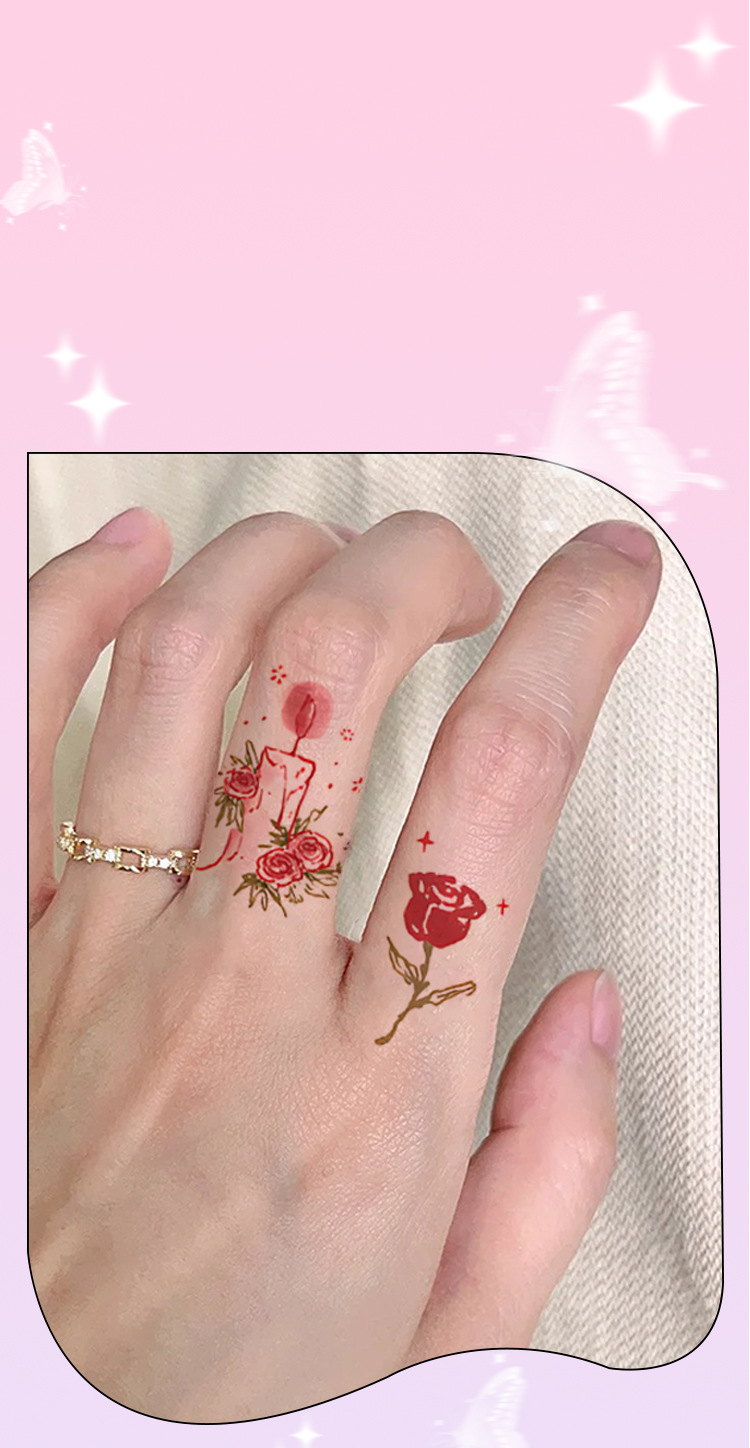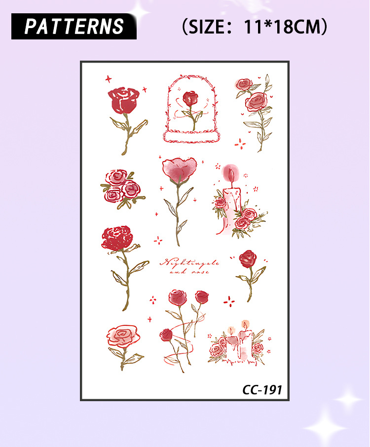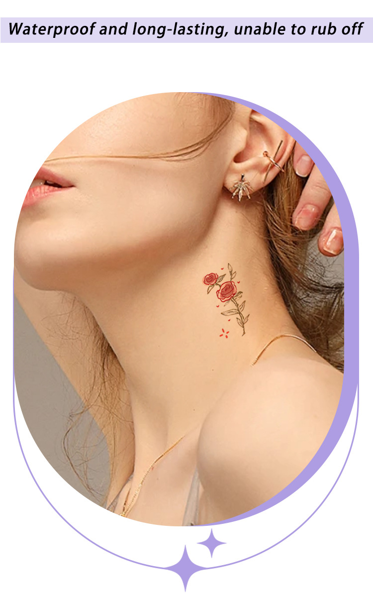 红色玫瑰花爱情彩色纹身贴女生性感小众高级感纹半永久逼真爆款