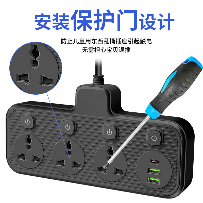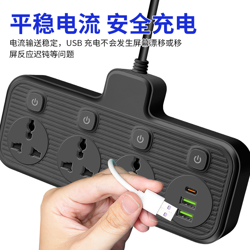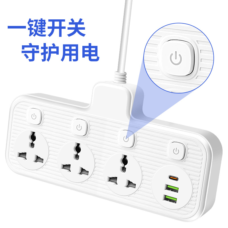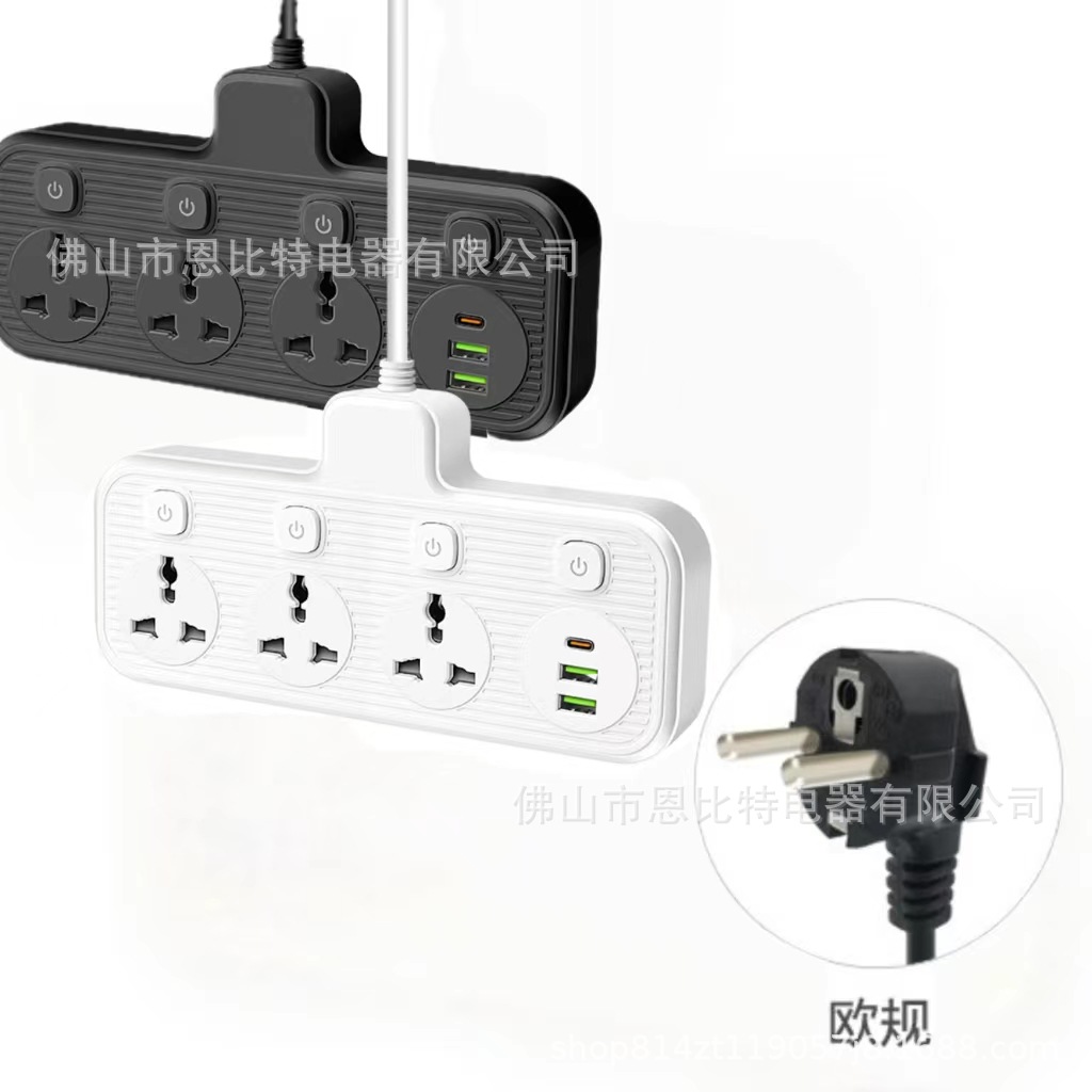 多开关跨境插座多口usb插排多插位拖线板5米亚马逊美英标排插供应