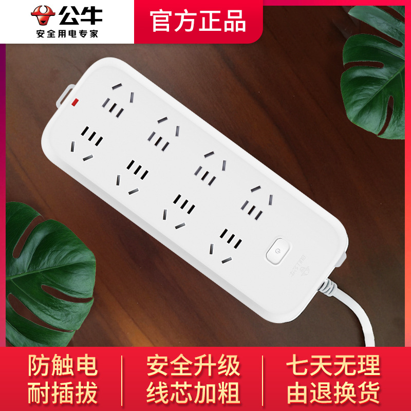 公牛插座板带线插排插线板8位40孔带过载保护家用多功能插板B5080
