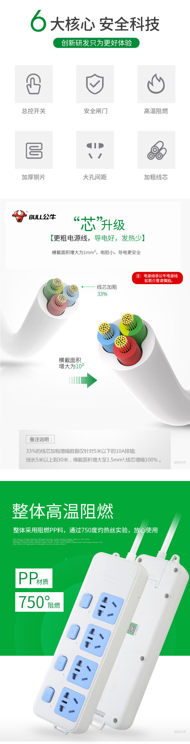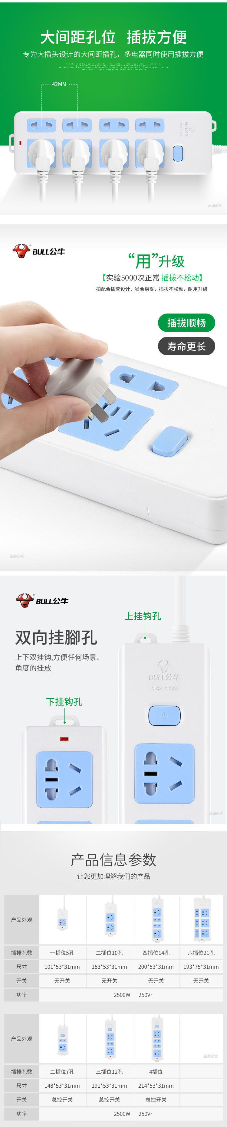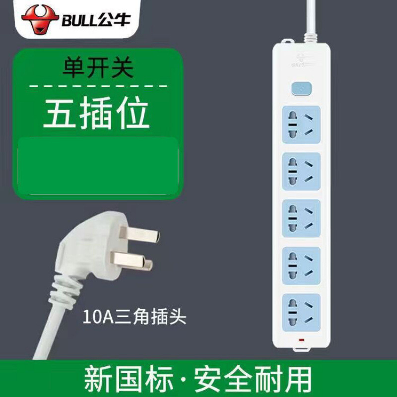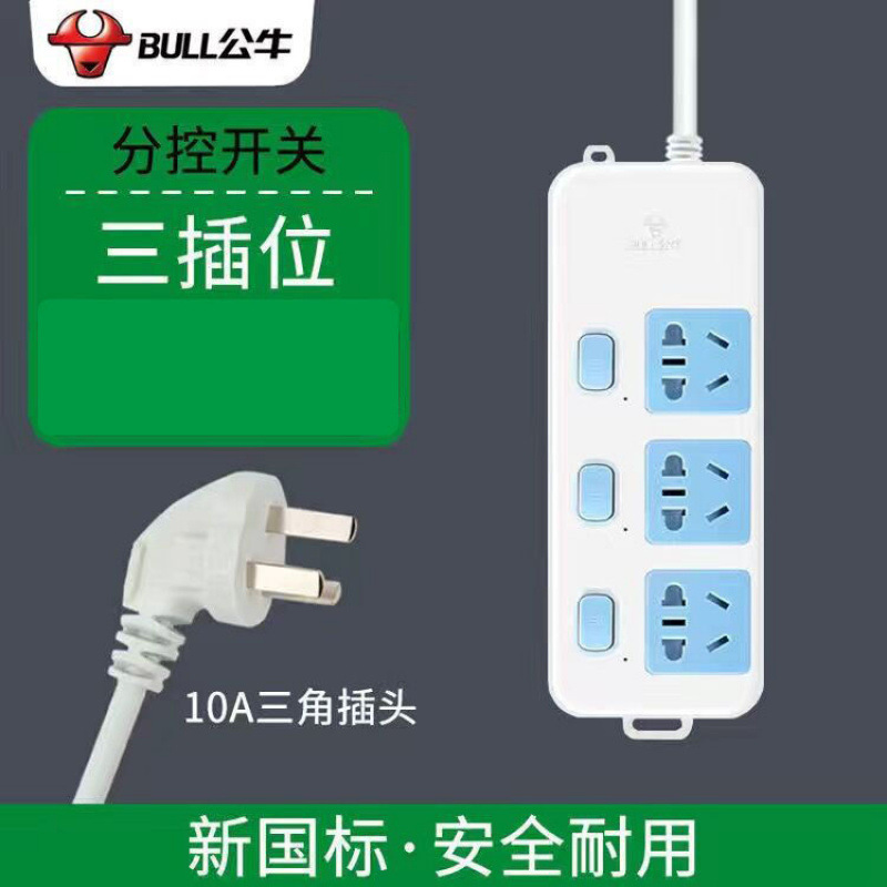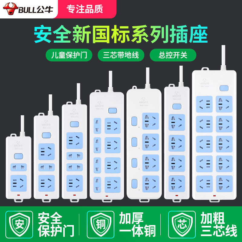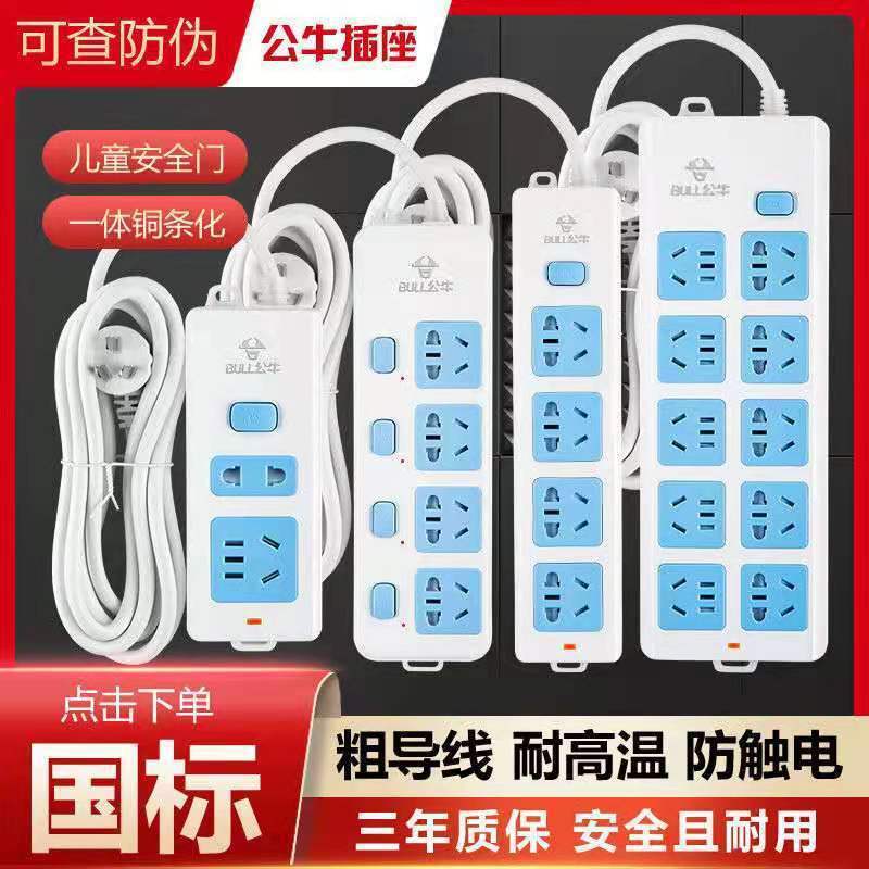 插板带线公牛插座插排接线板家用无线0.2/3/5/10米独立开关插线板