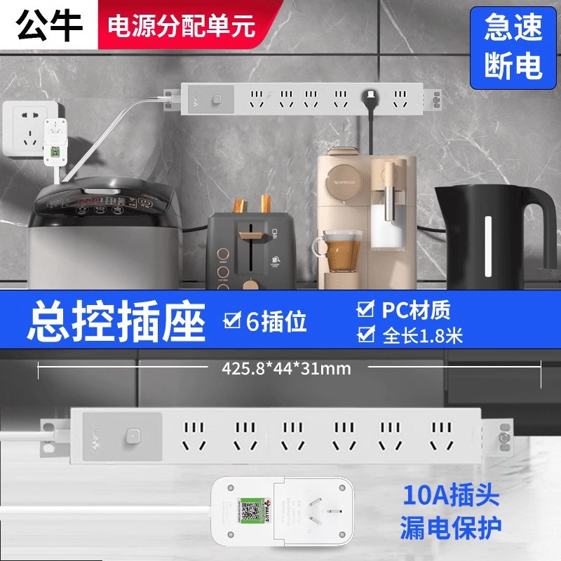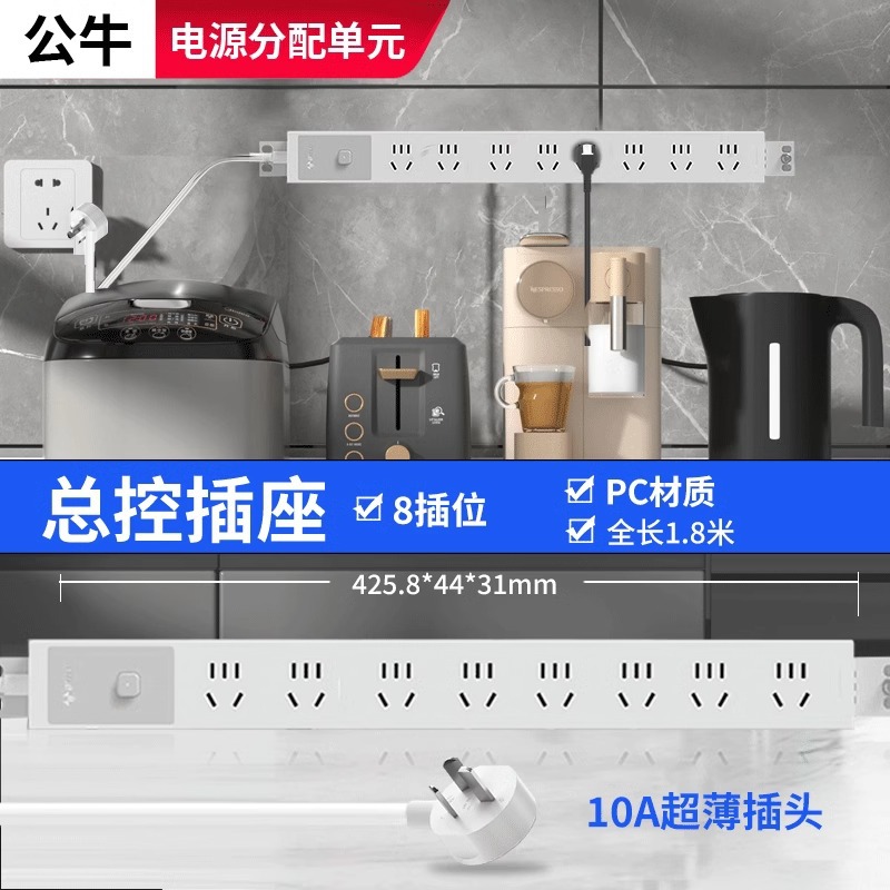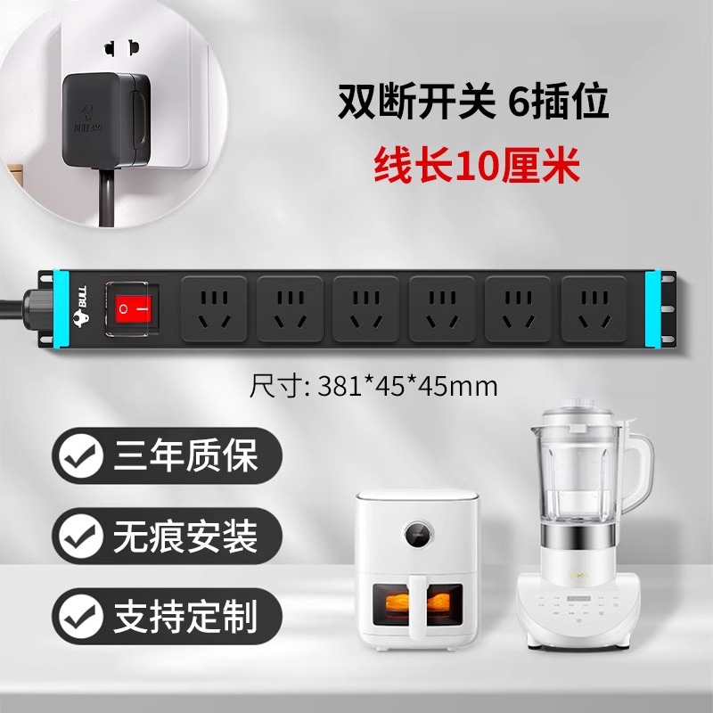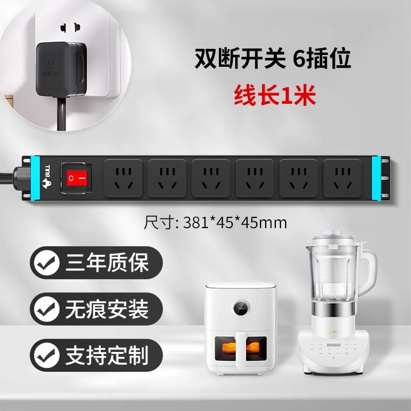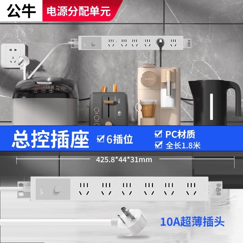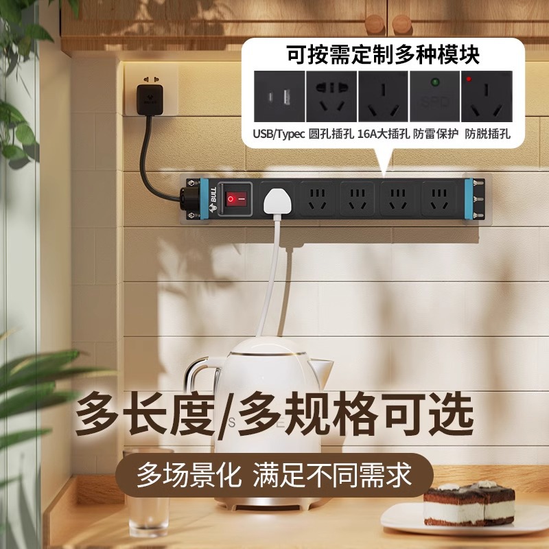 公牛PDU插排厨房插座带线扩展明装多插位餐边柜多功能排插接线板