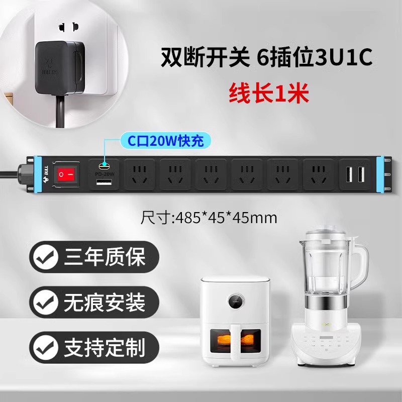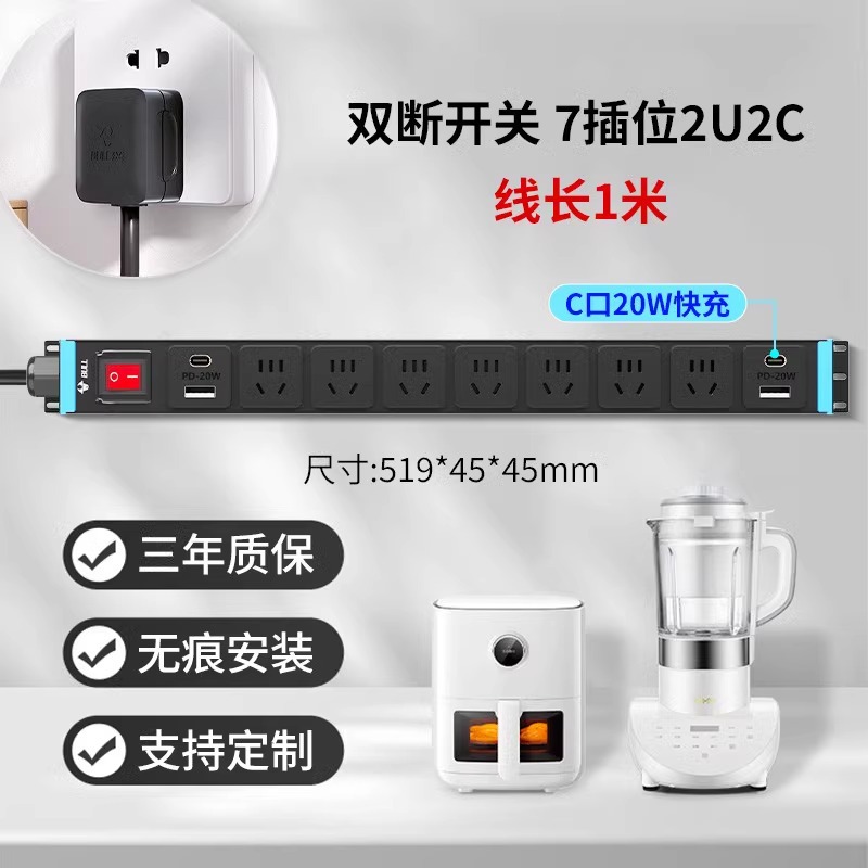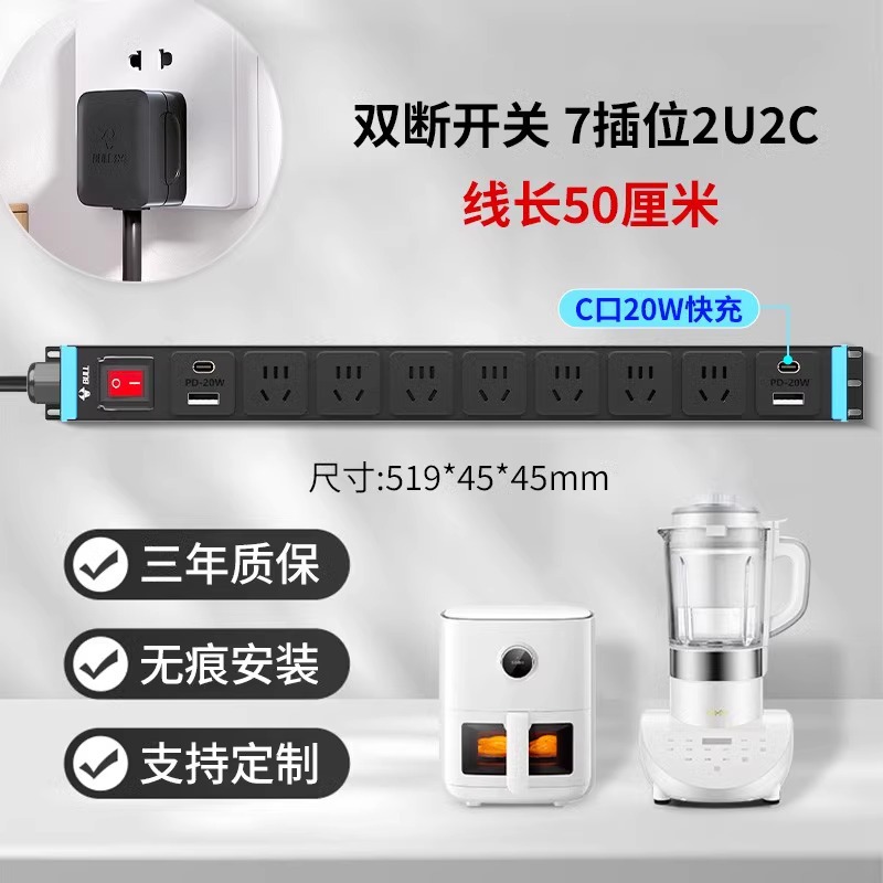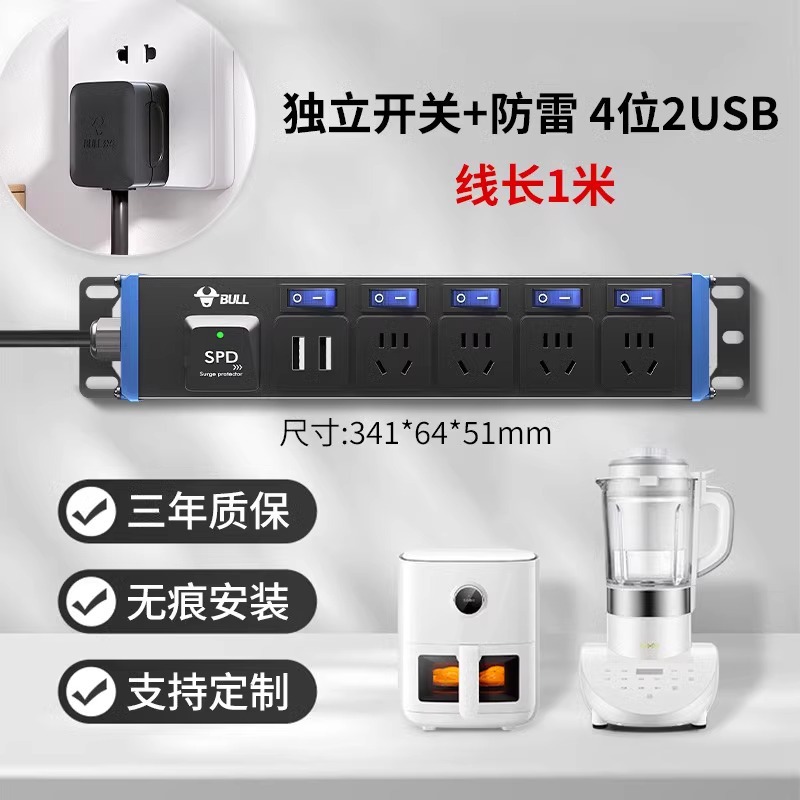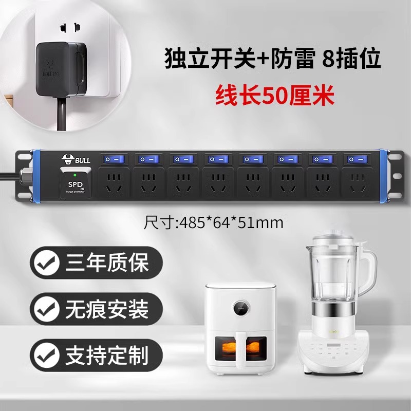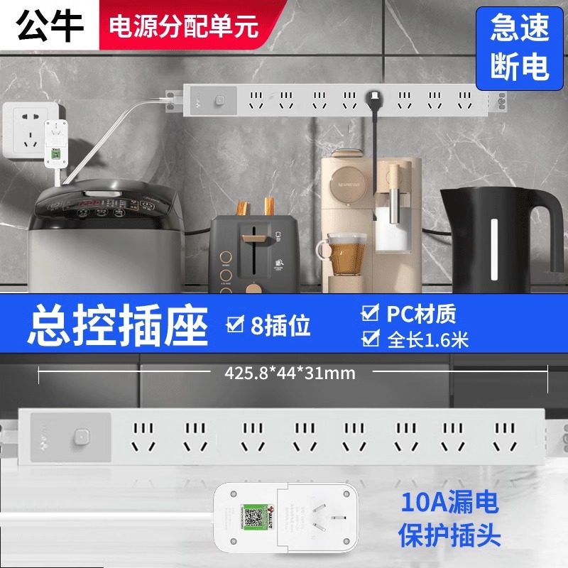 公牛PDU插排厨房插座带线扩展明装多插位餐边柜多功能排插接线板