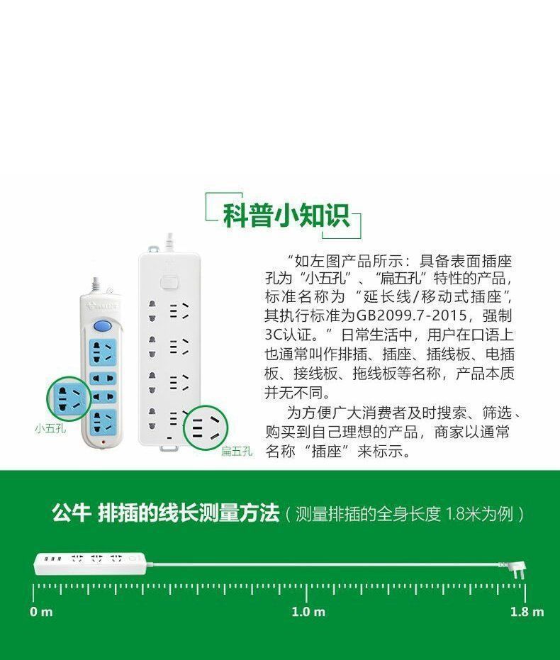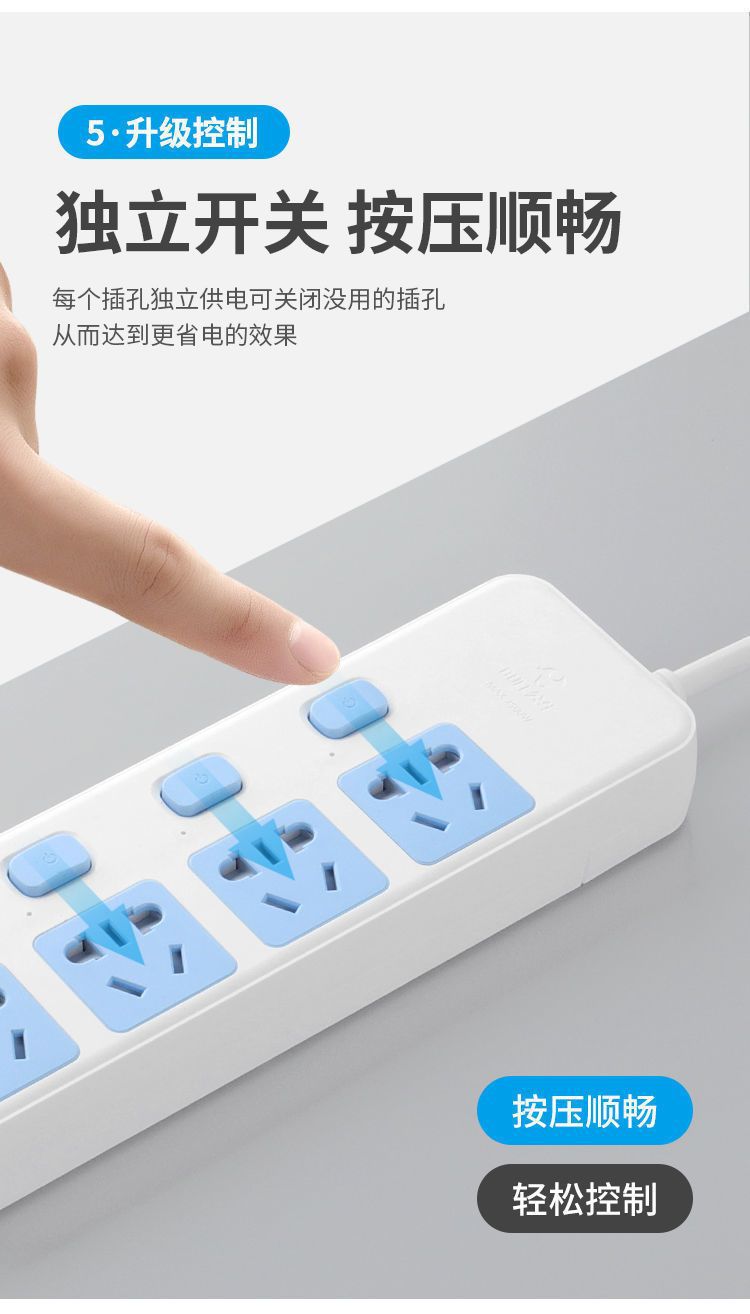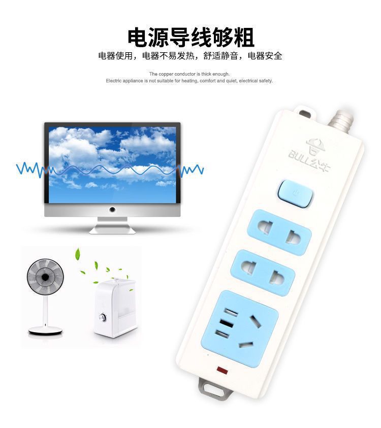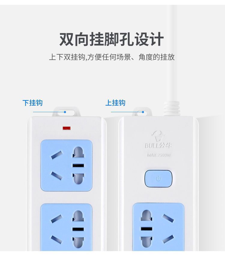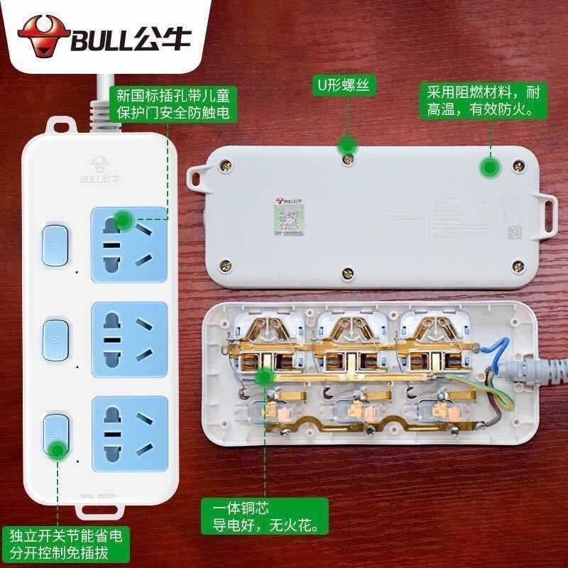 公牛家用插座长线插排带线接线板独立开关插线板插板宿舍拖线板10