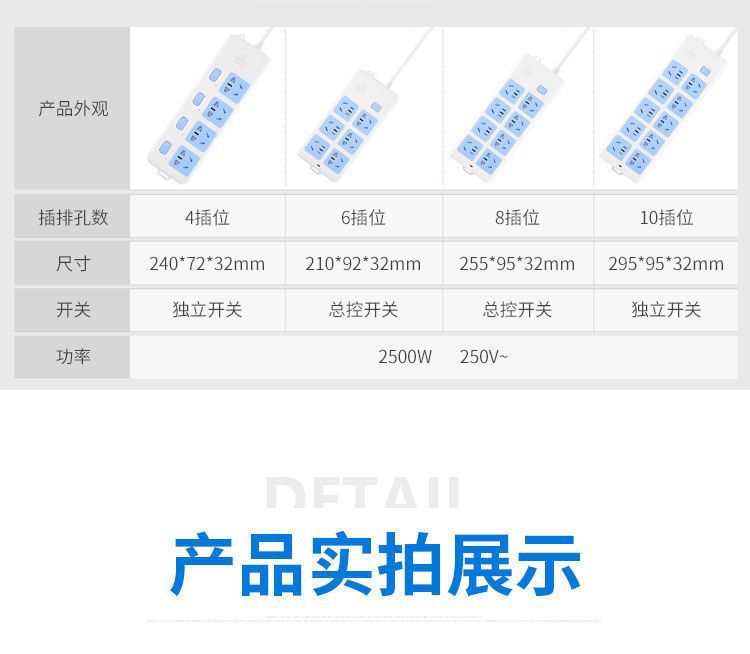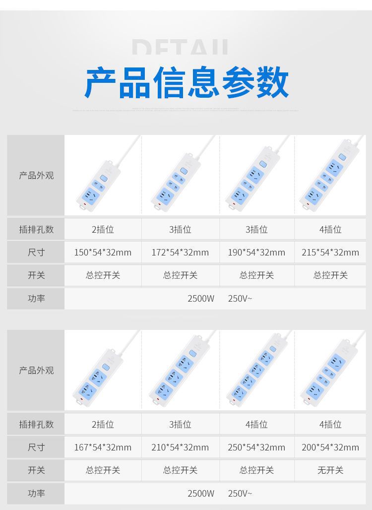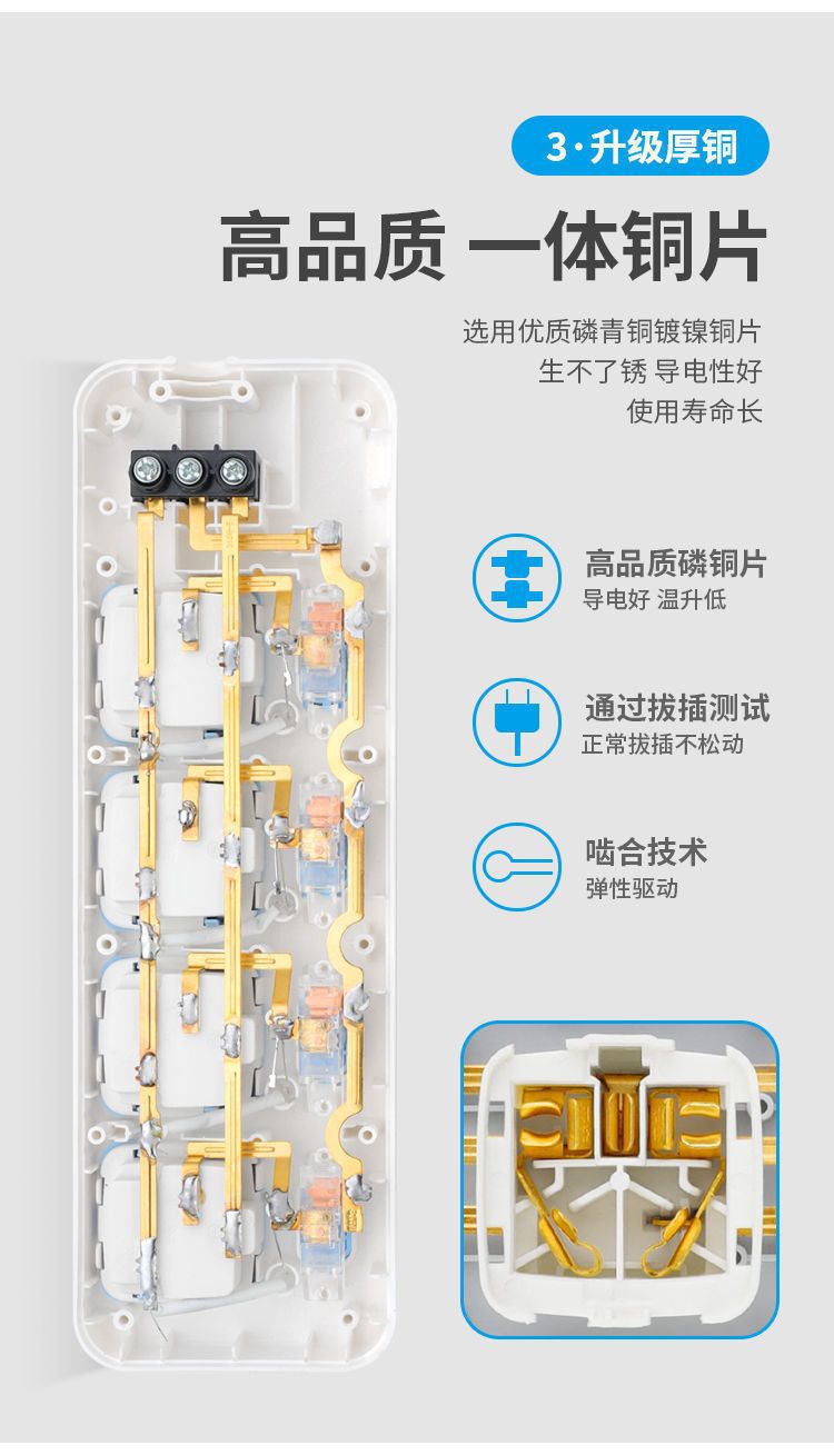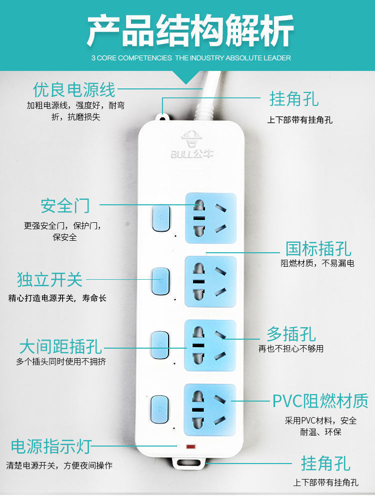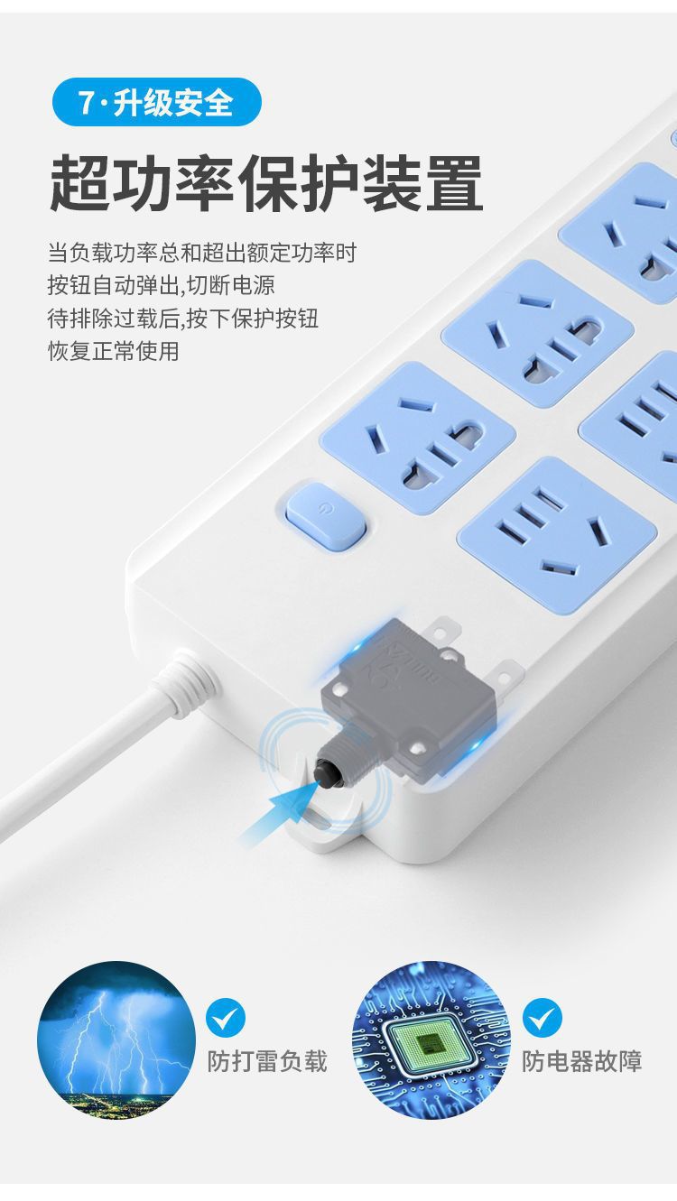 公牛家用插座长线插排带线接线板独立开关插线板插板宿舍拖线板10