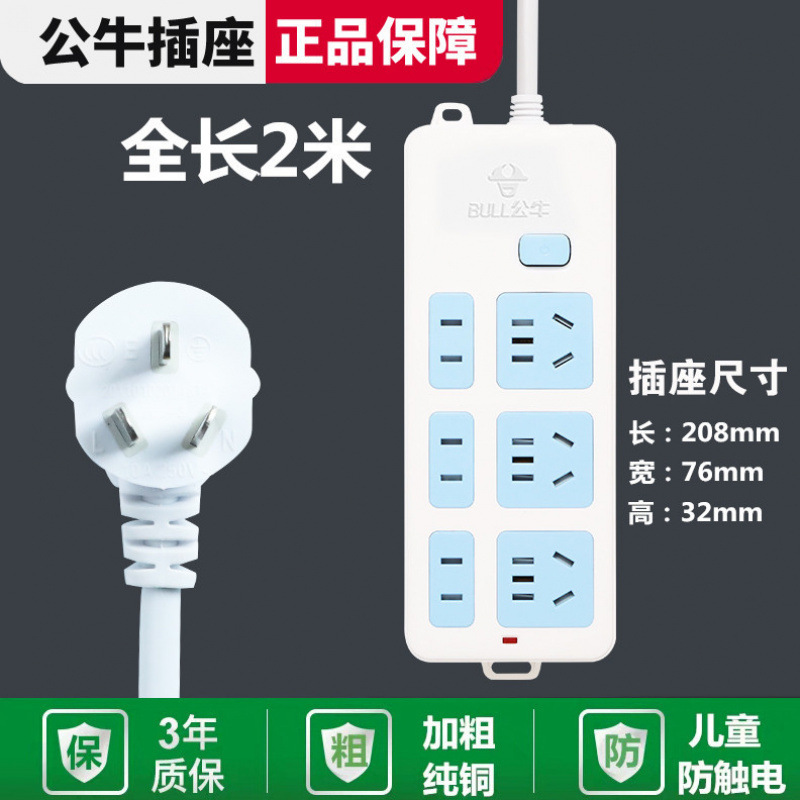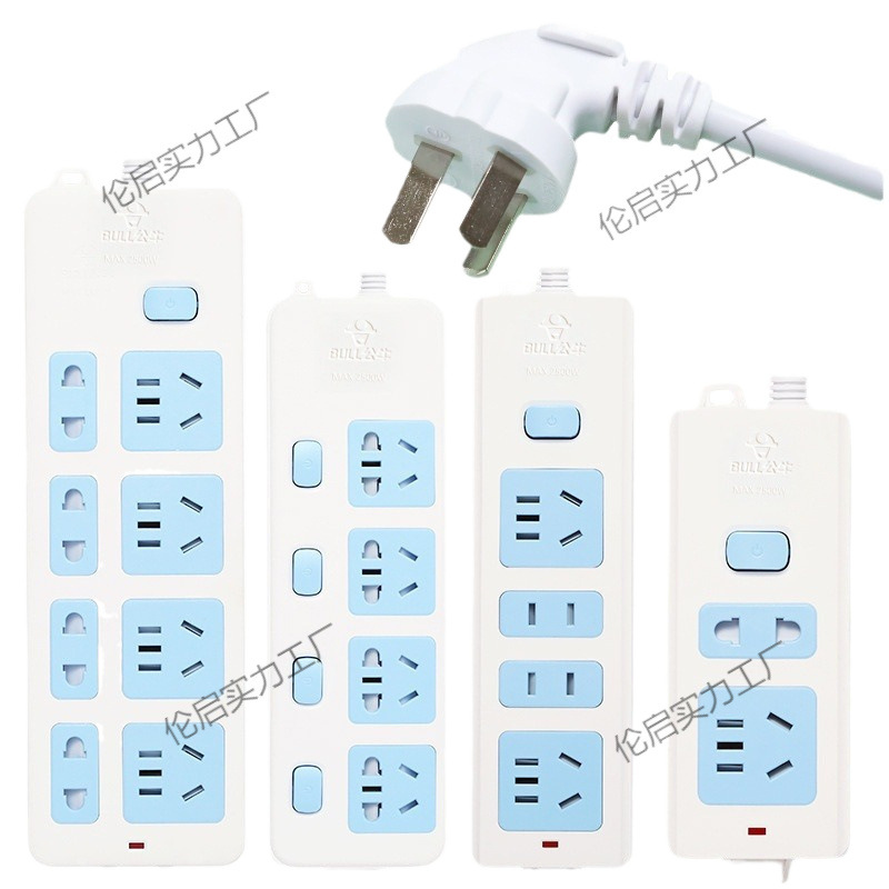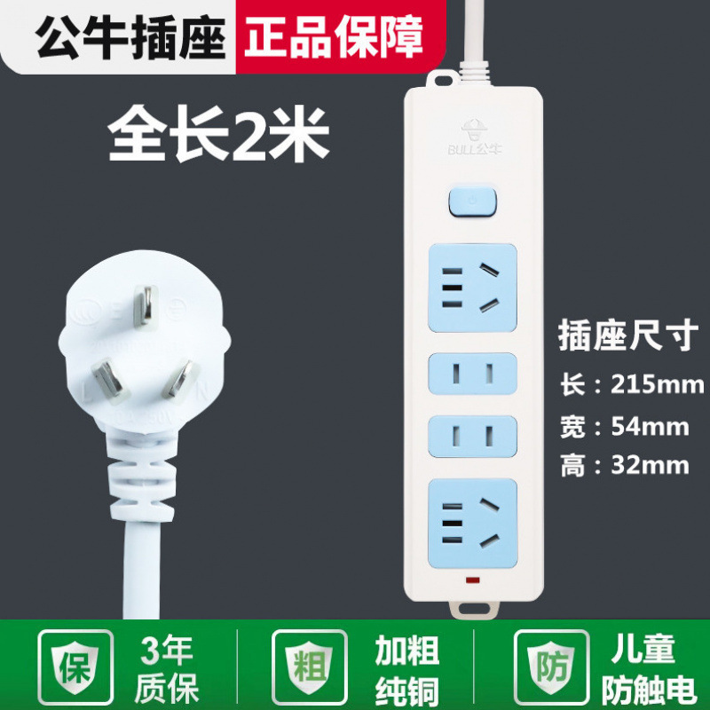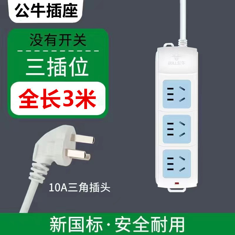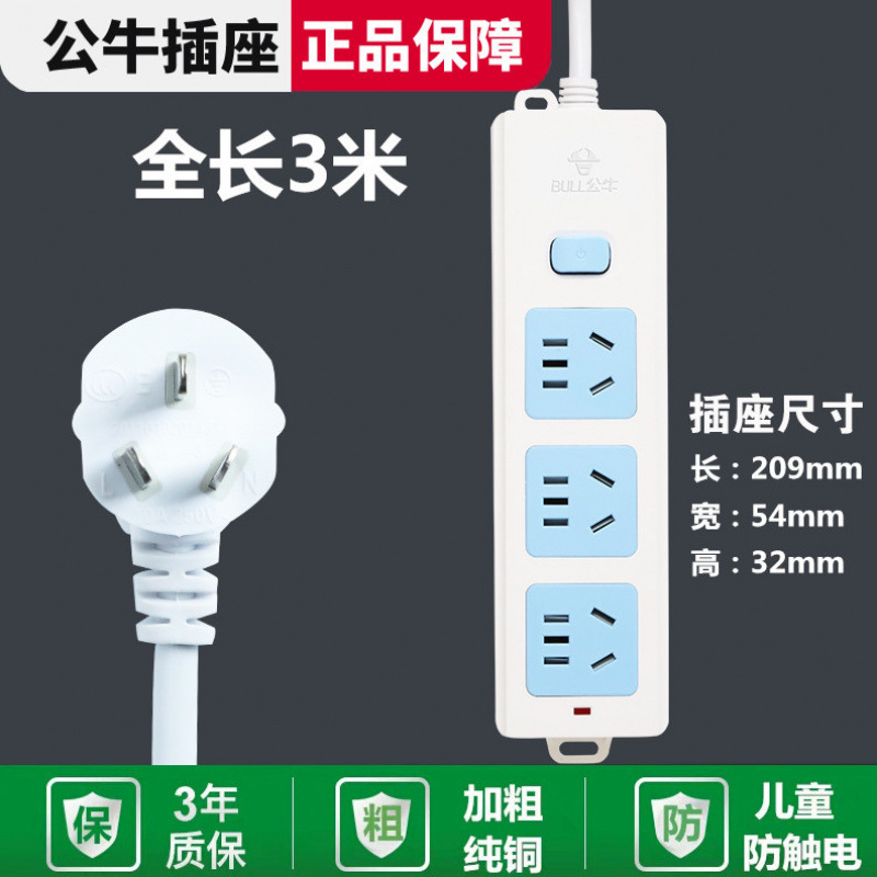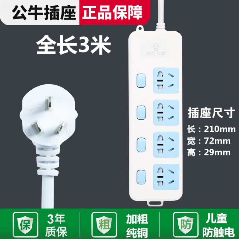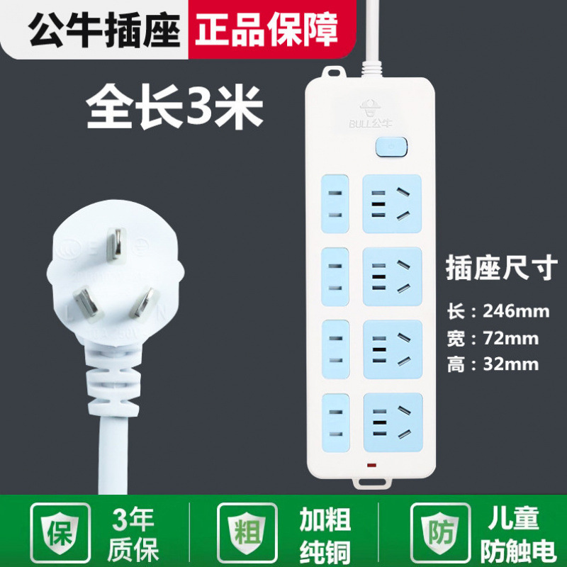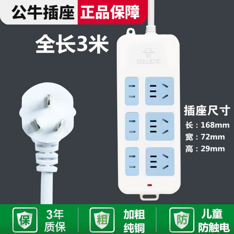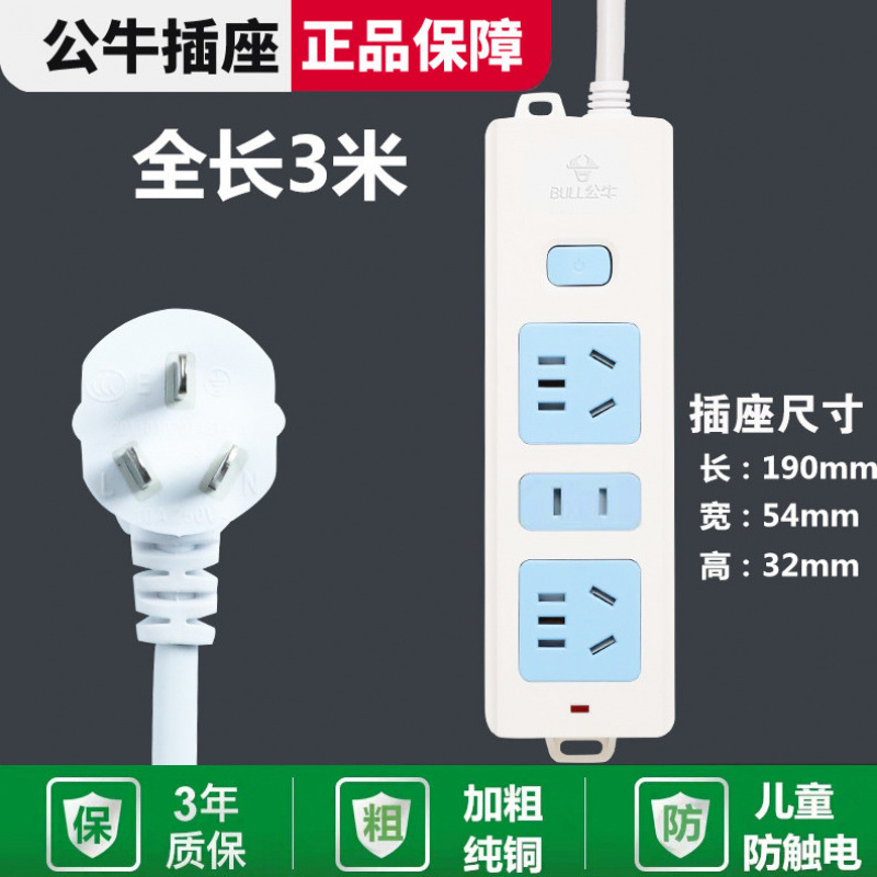 公牛插座长线家用学生宿舍3米5米接线板带线多功能多孔拖线板插排