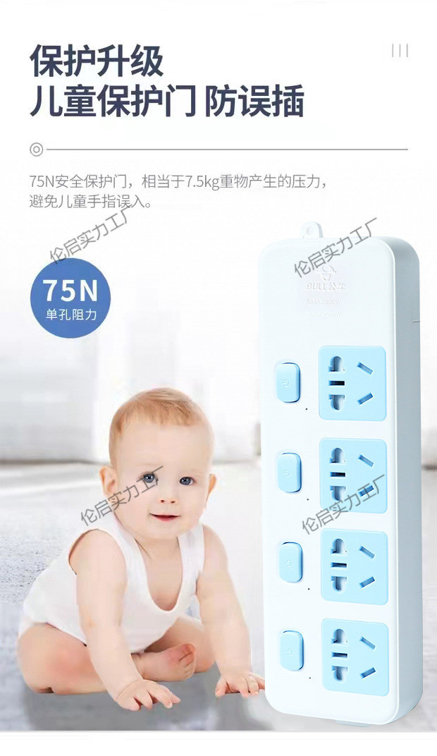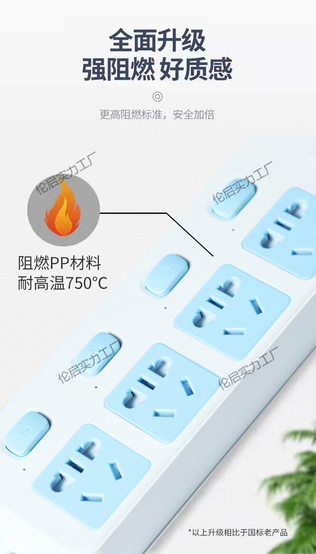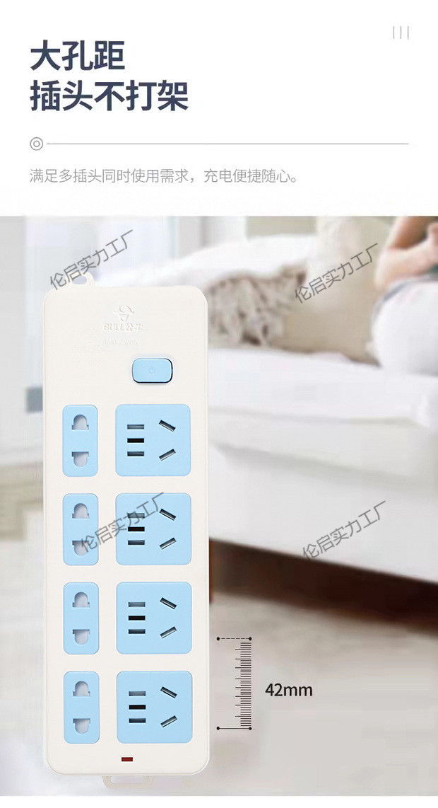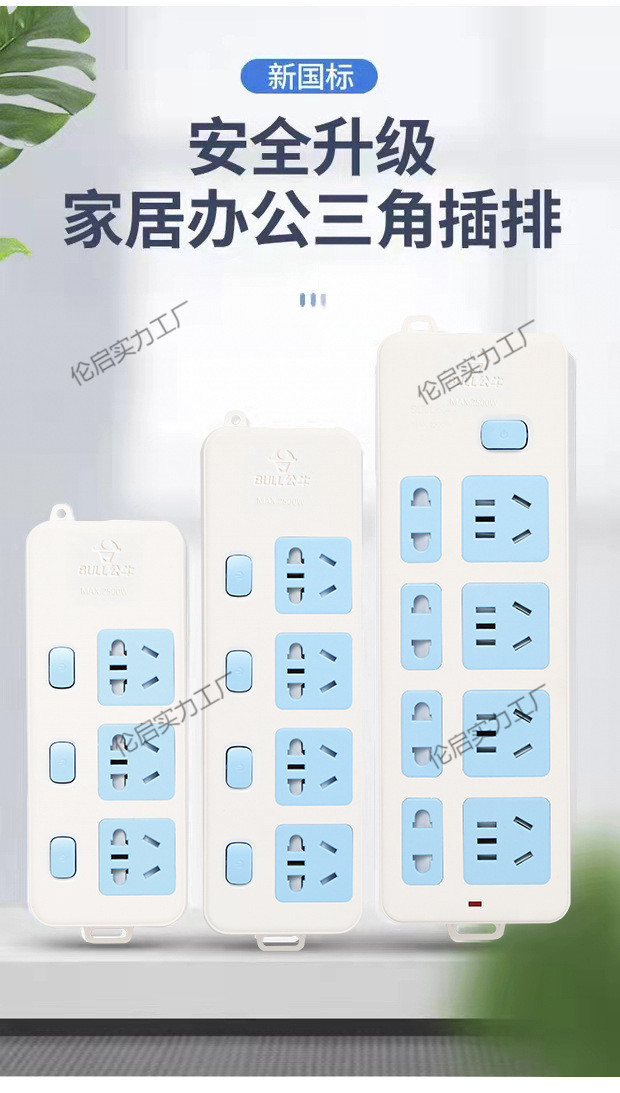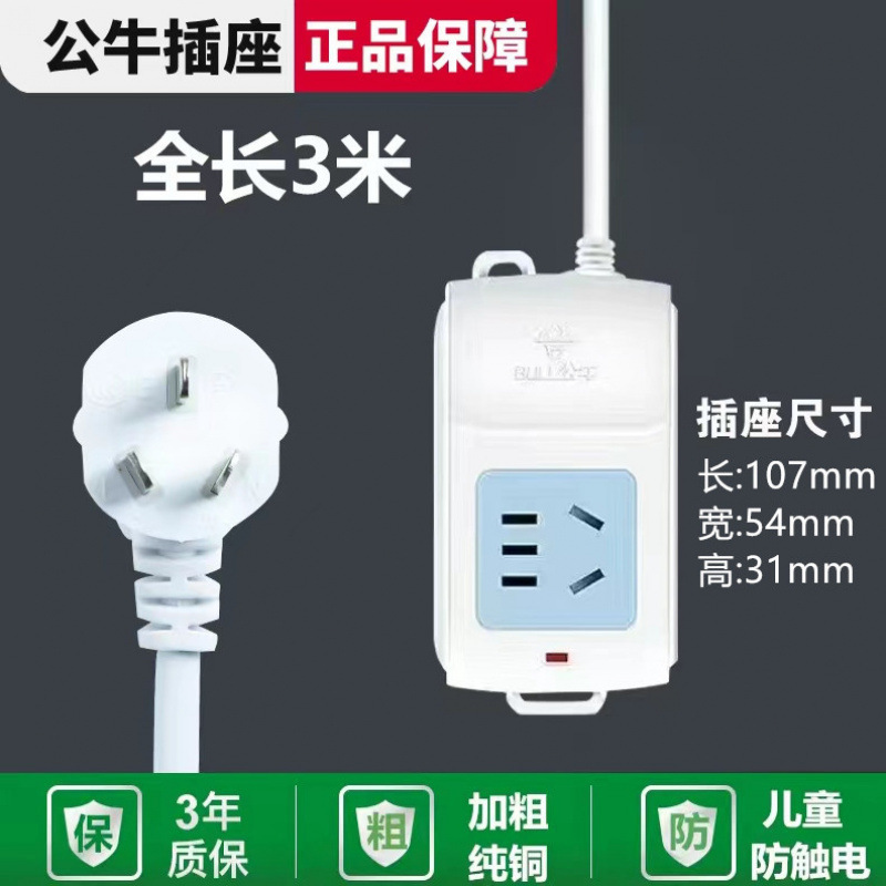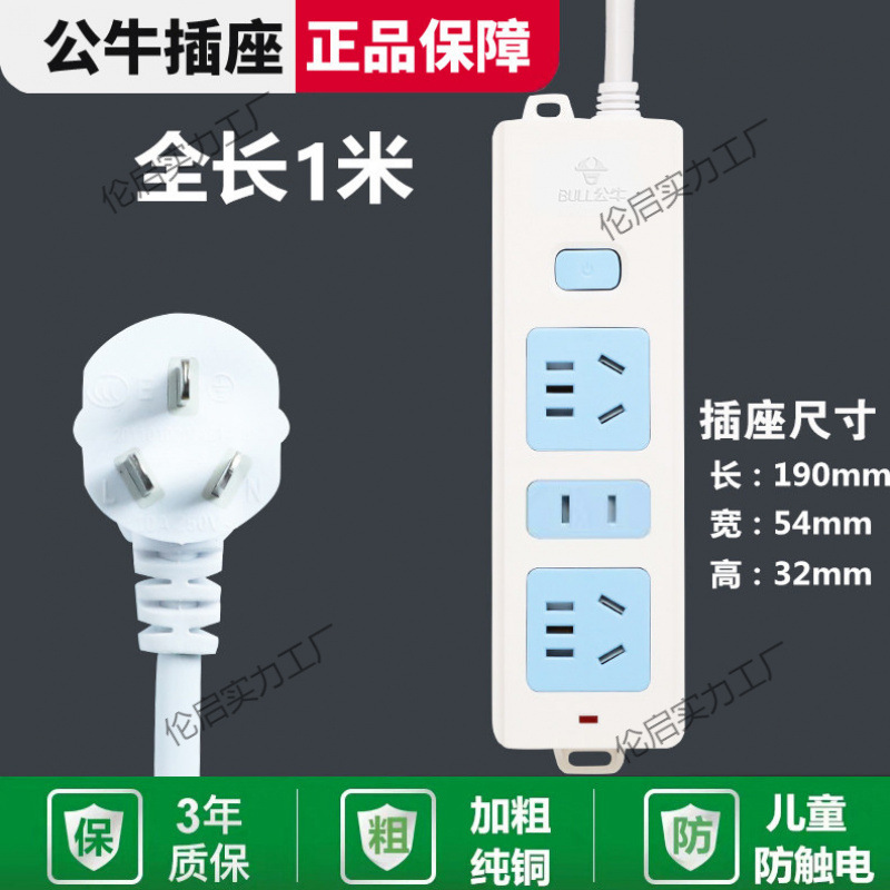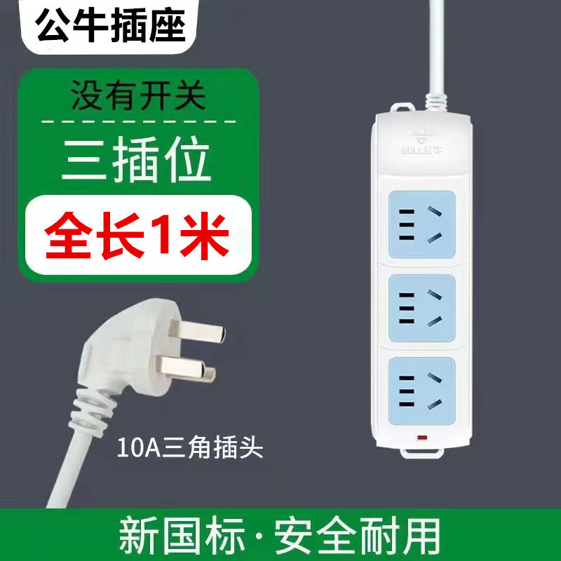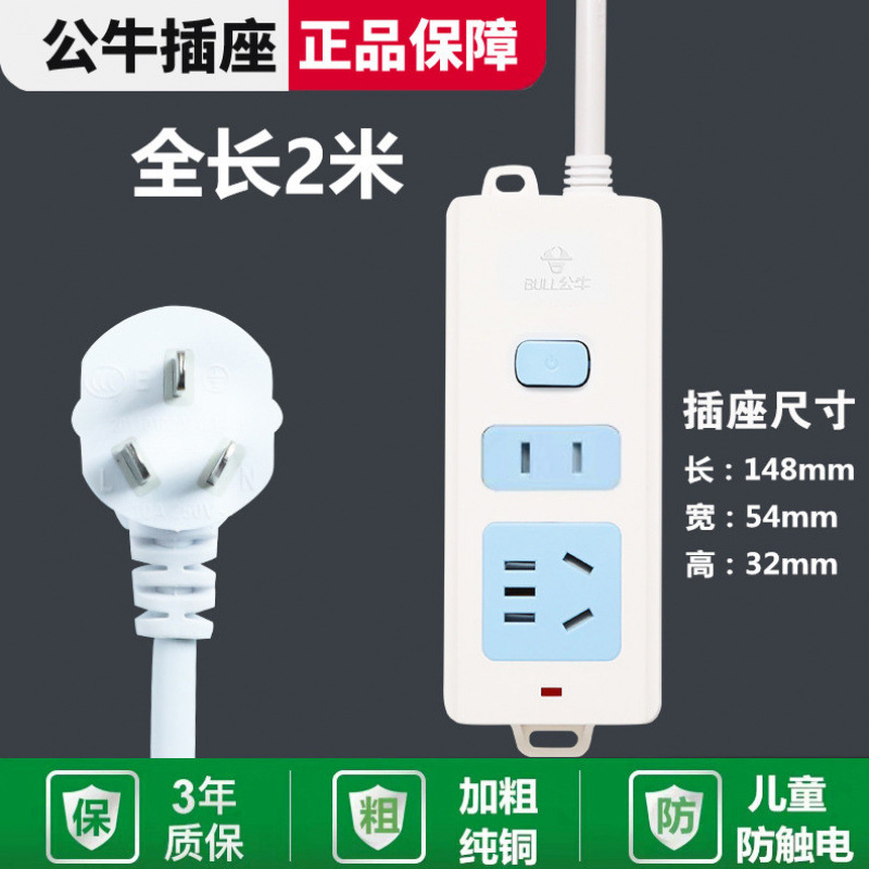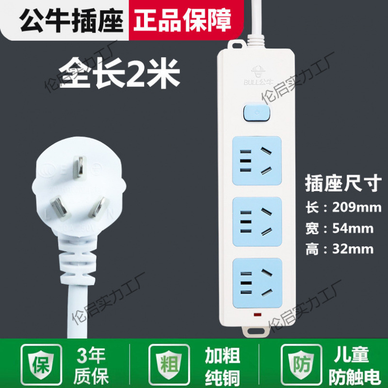 公牛插座长线家用学生宿舍3米5米接线板带线多功能多孔拖线板插排