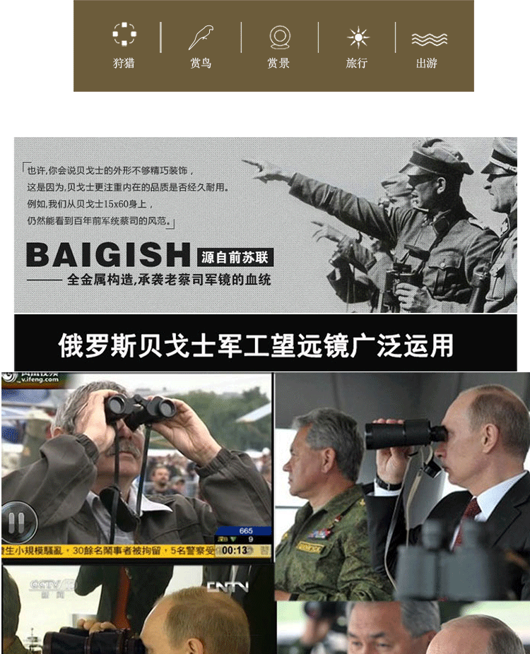 批发俄罗斯贝戈士15X60望远镜全金属高清微光夜视望成人户外望远