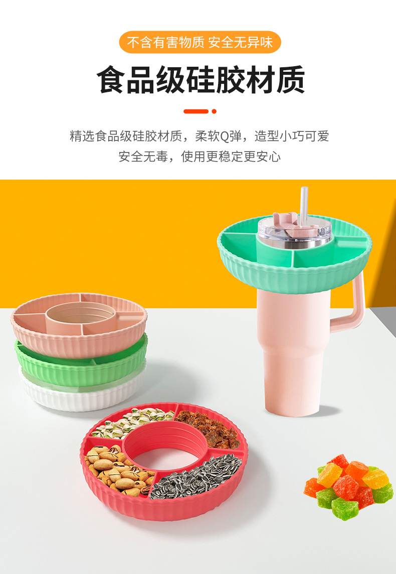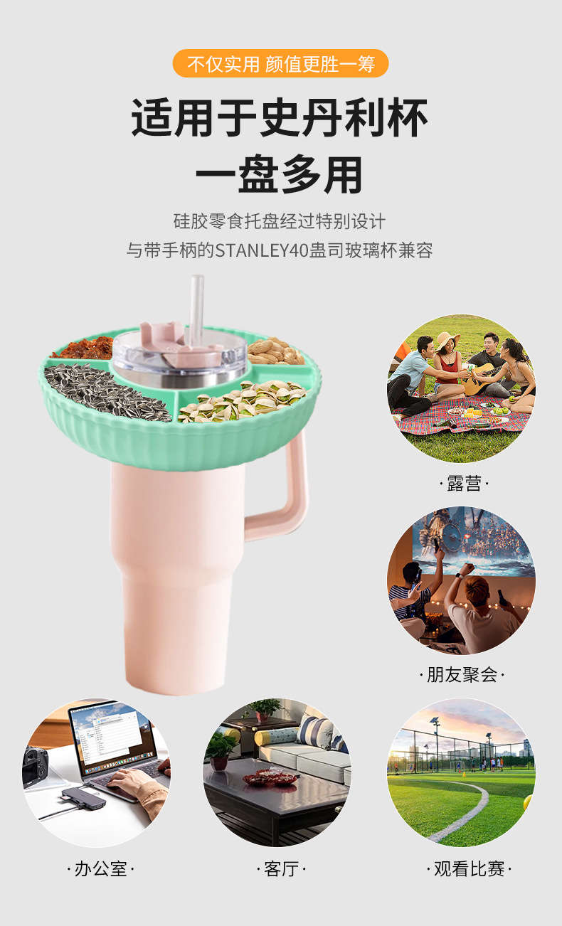 跨境爆款适用于史丹利杯零食盘 Stanley杯零食拼盘带盖分隔零食盘