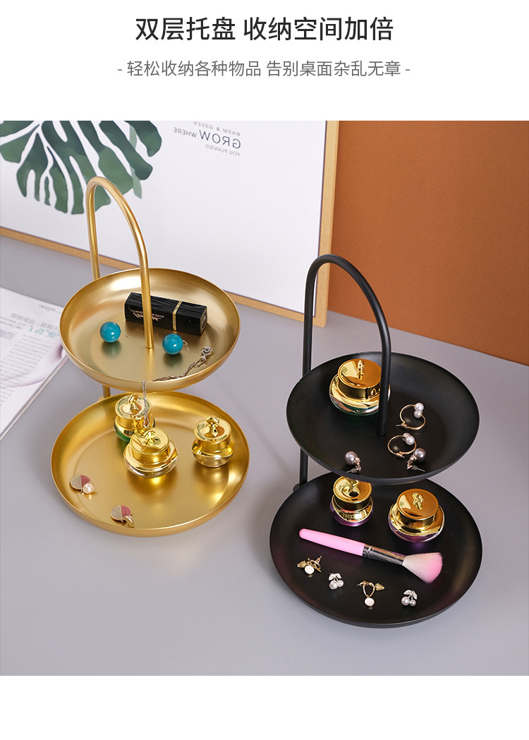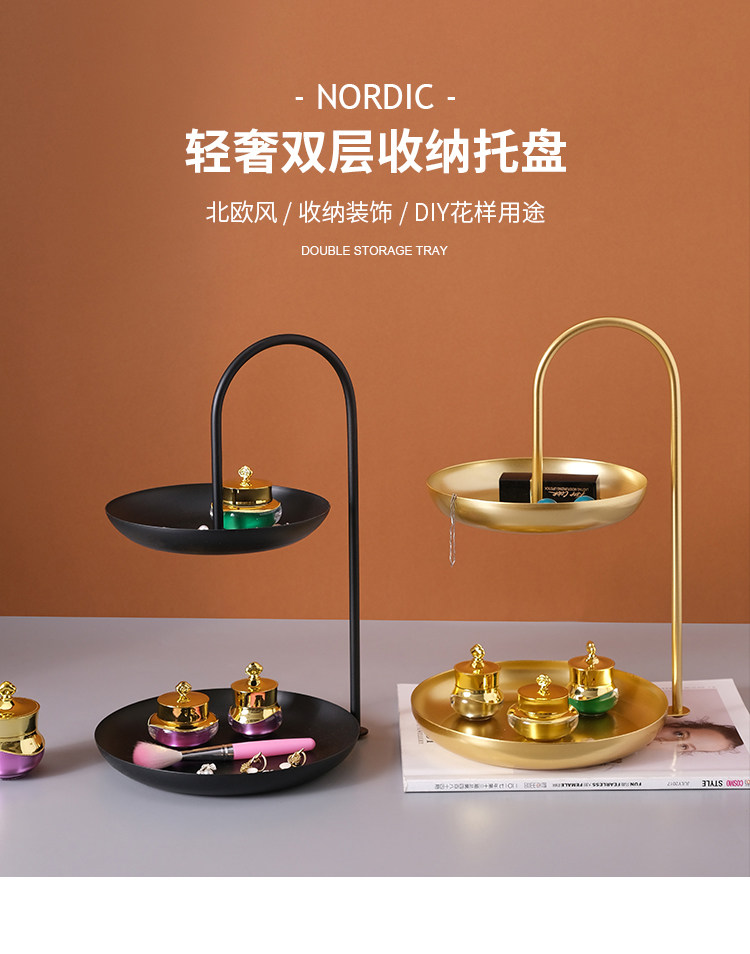 北欧铁艺托盘水果盘客厅创意家用多层糖果盆茶几拼盘多功能收纳