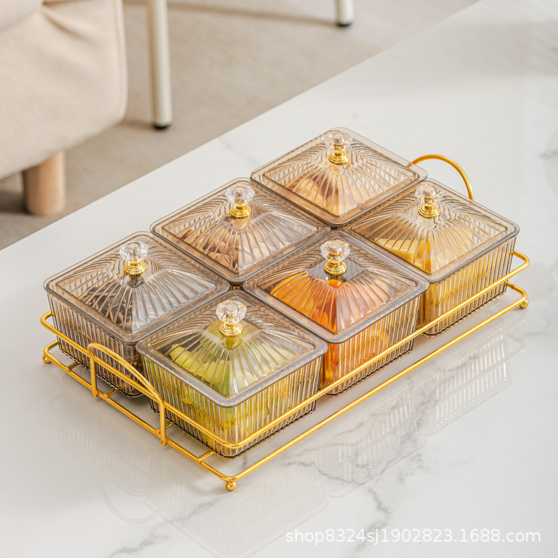 轻奢水果盘小吃碟分格拼盘客厅酒吧KTV坚果干果糖果零食摆盘家用