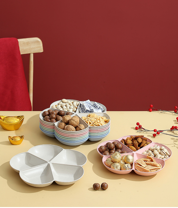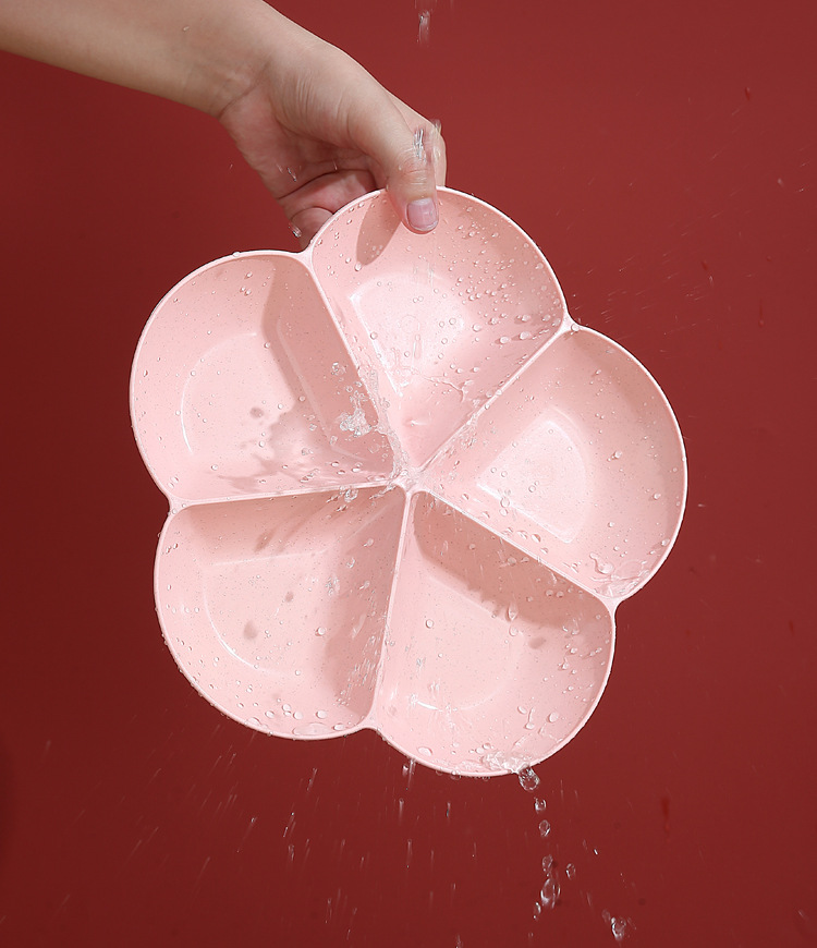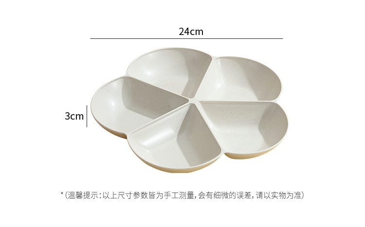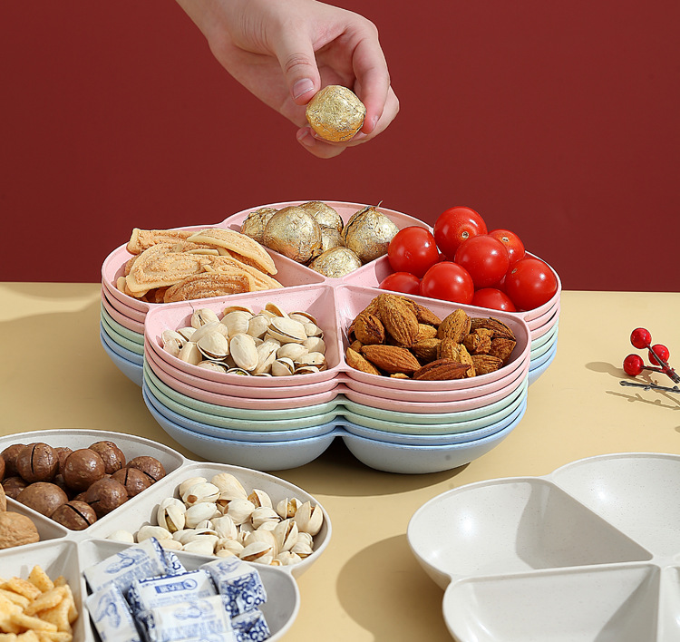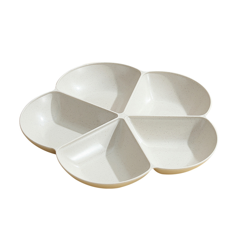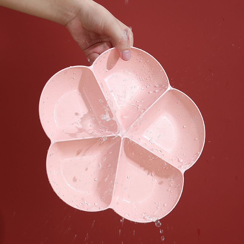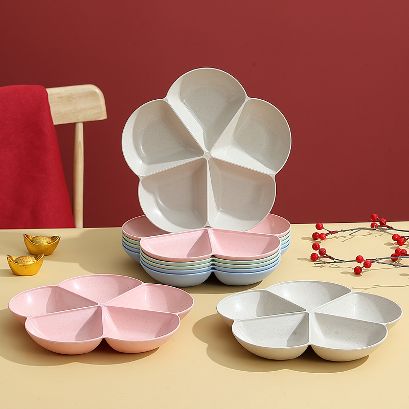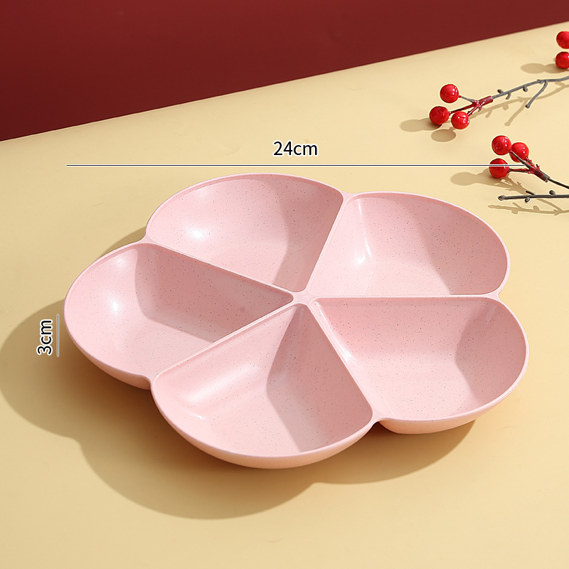 麦秸秆花形分格果盘商用KTV水果盘小吃盘塑料五格盘多格干果拼盘