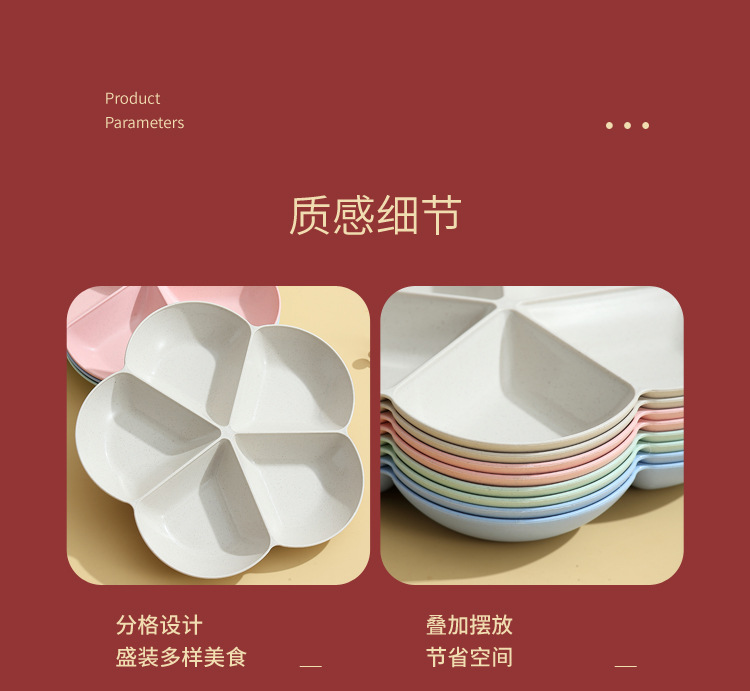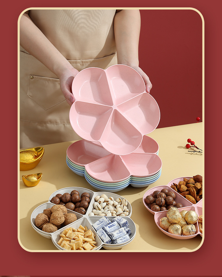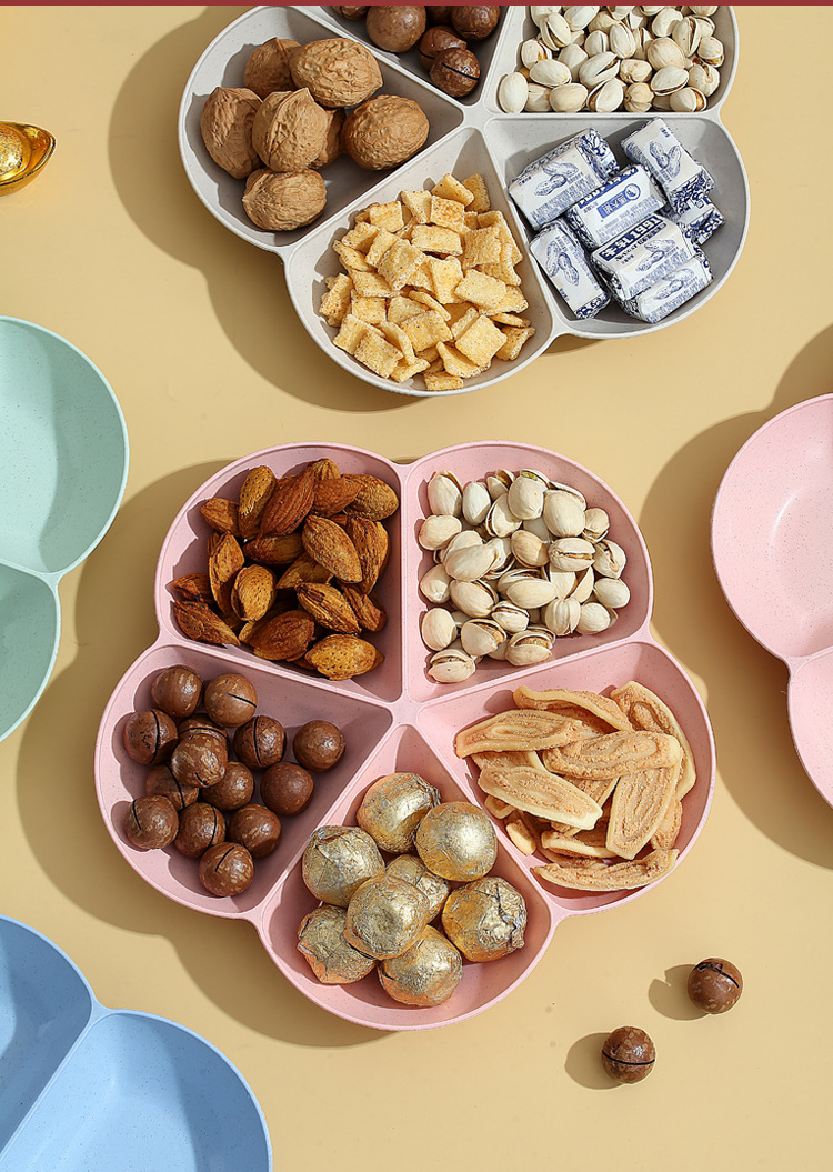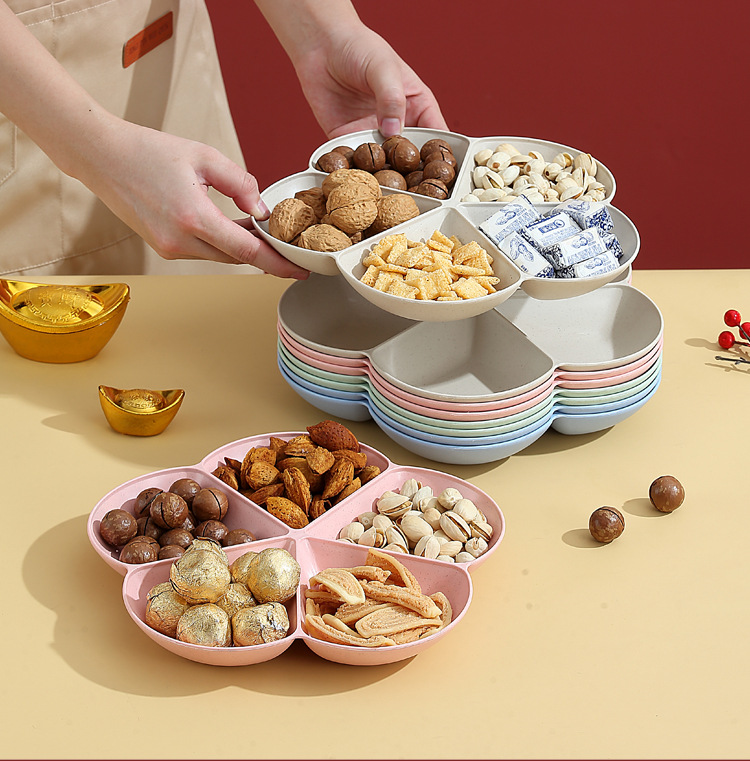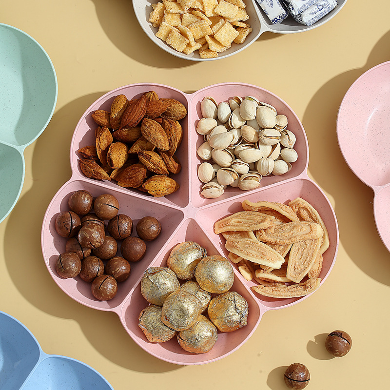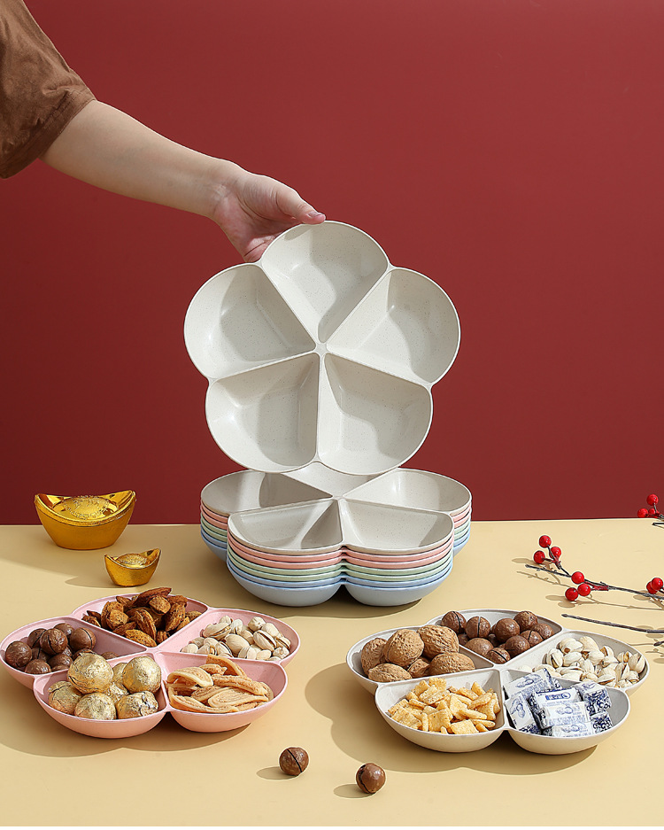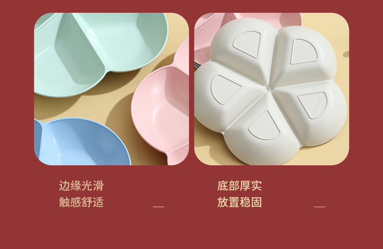 麦秸秆花形分格果盘商用KTV水果盘小吃盘塑料五格盘多格干果拼盘
