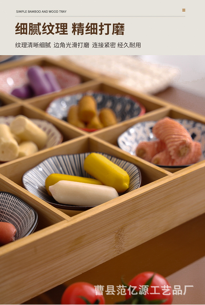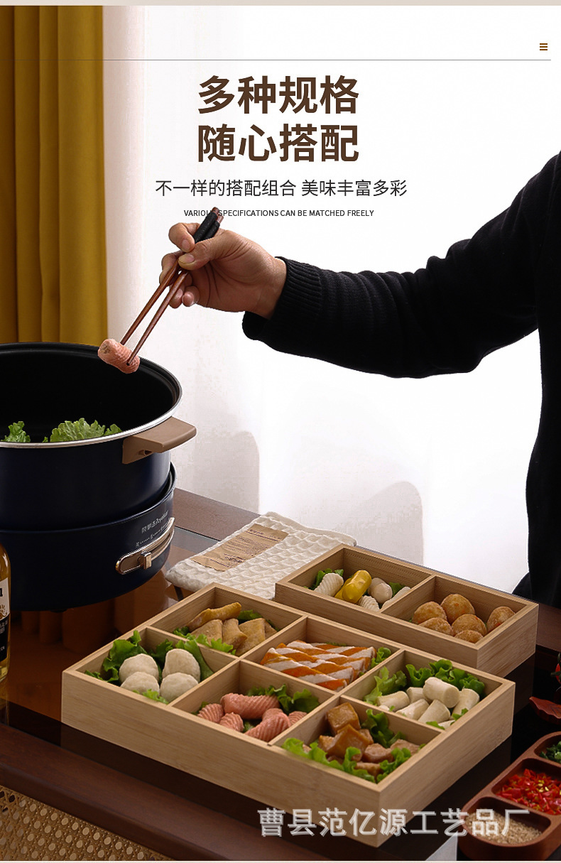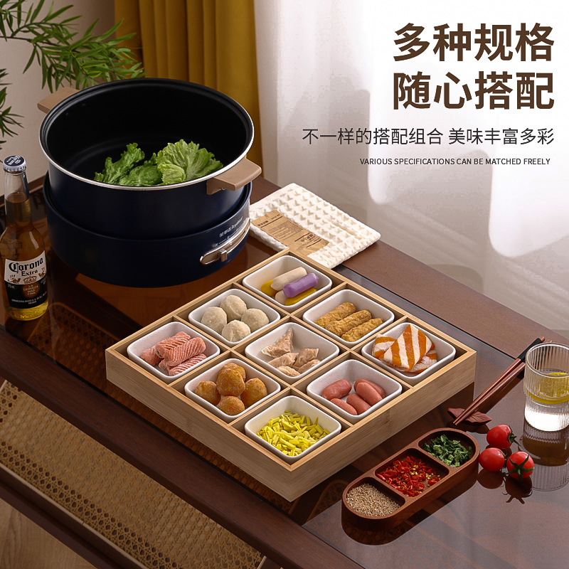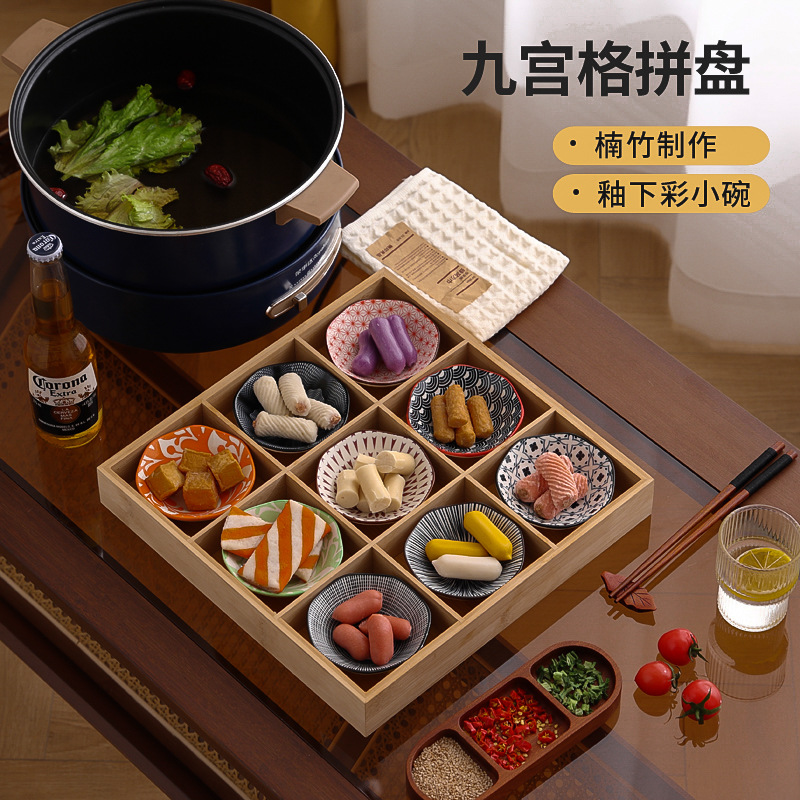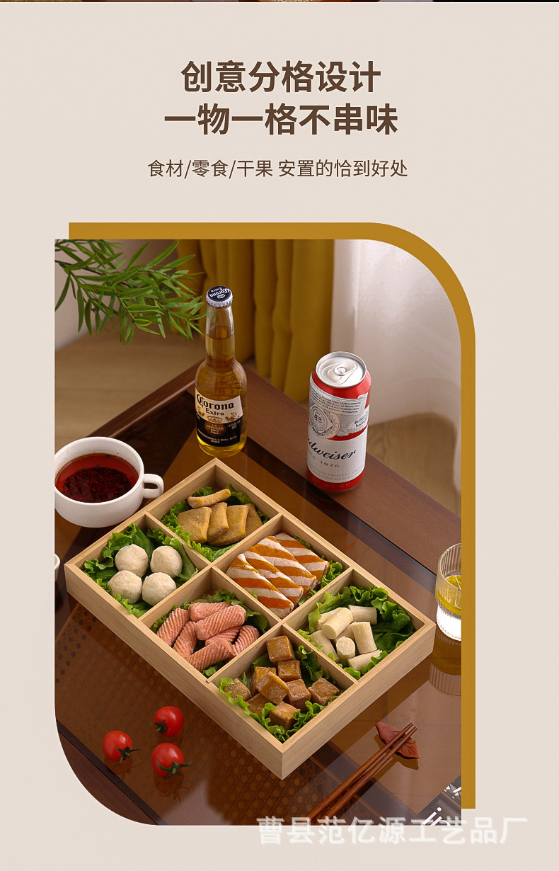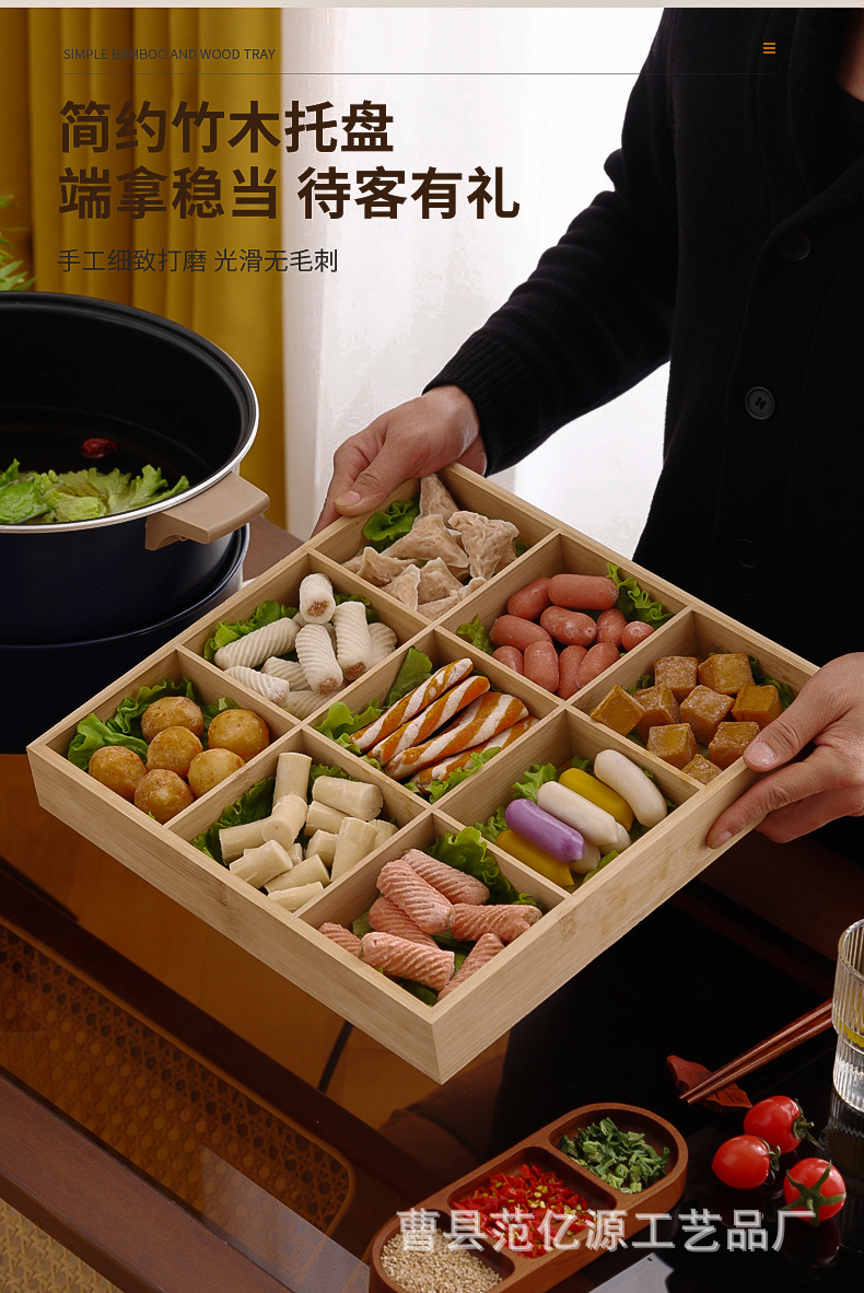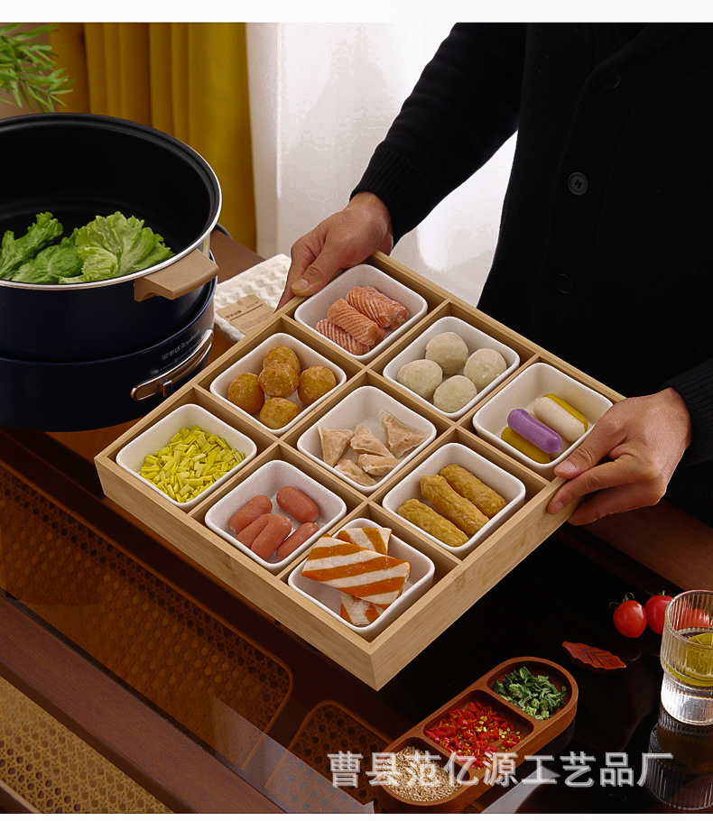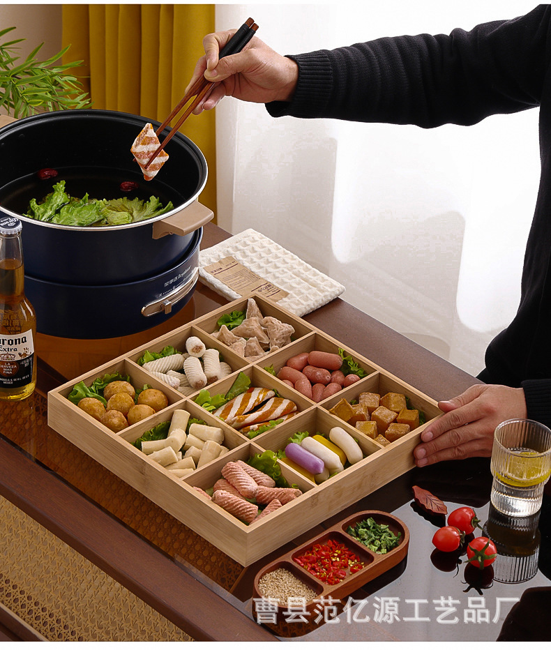 现货九宫格火锅店餐具分格木制早餐托盘蔬菜日式料理配菜烤肉拼盘