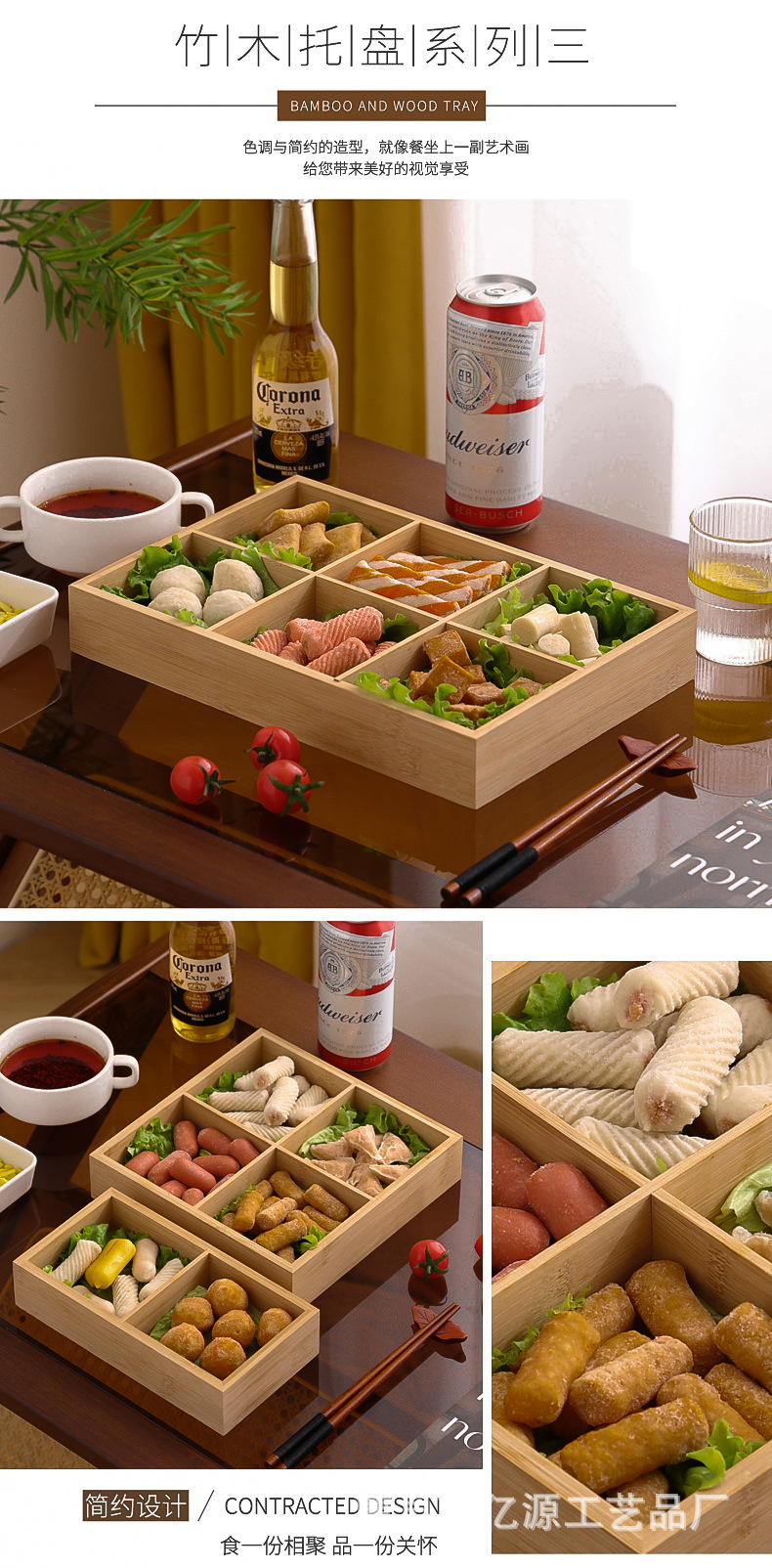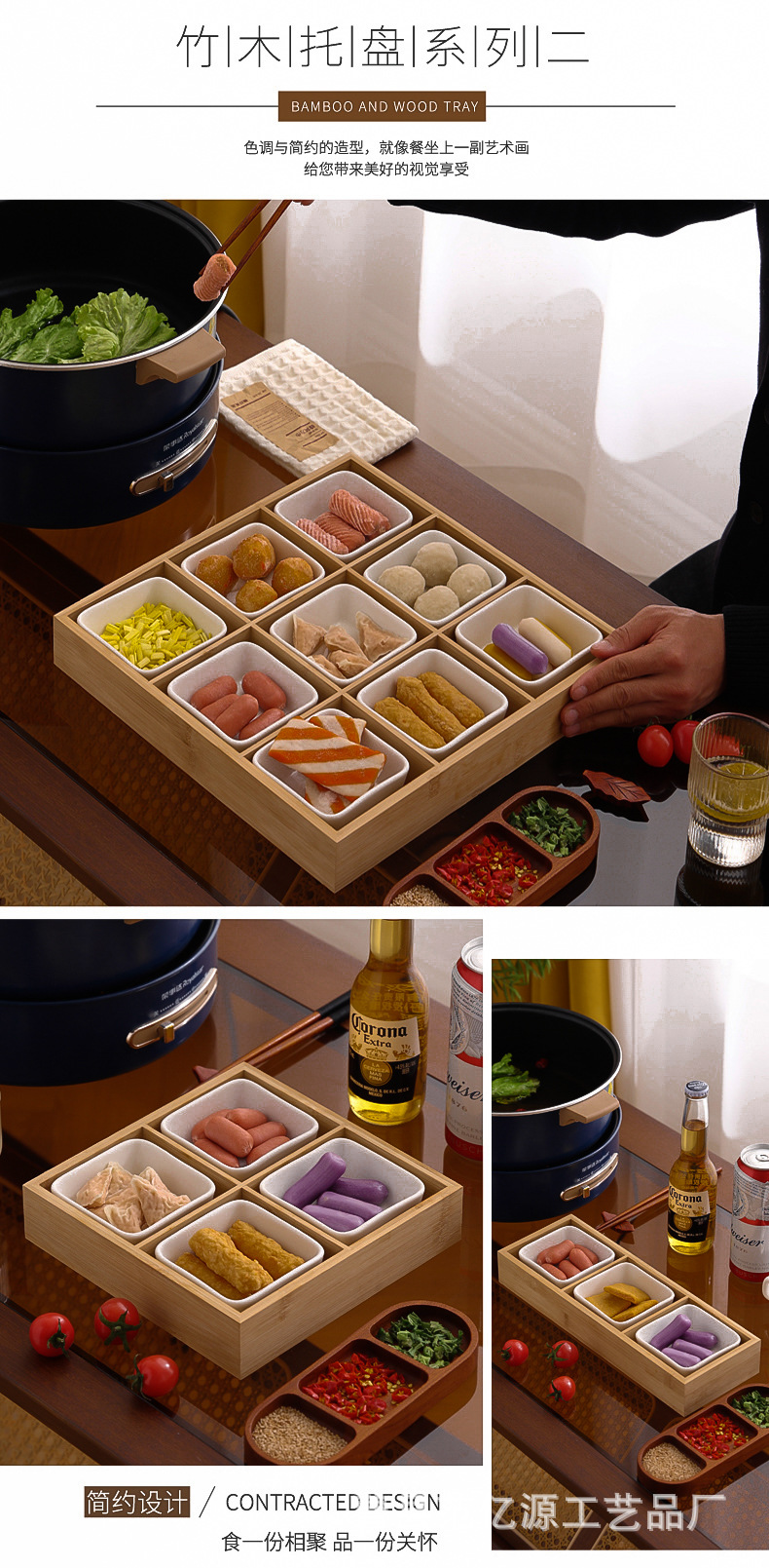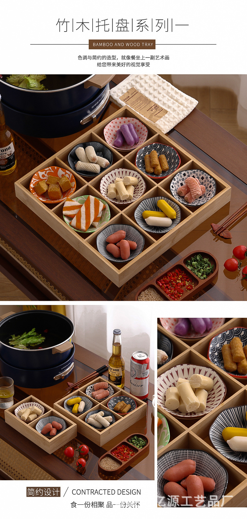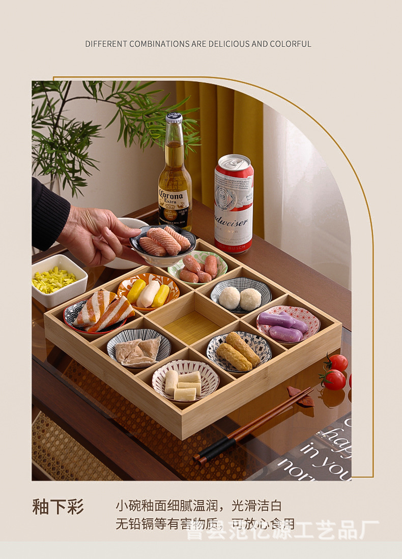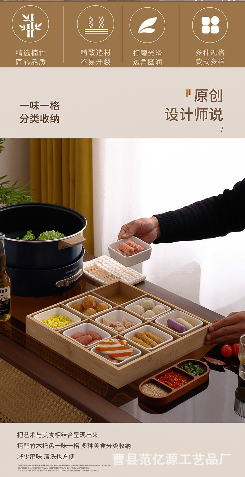 现货九宫格火锅店餐具分格木制早餐托盘蔬菜日式料理配菜烤肉拼盘