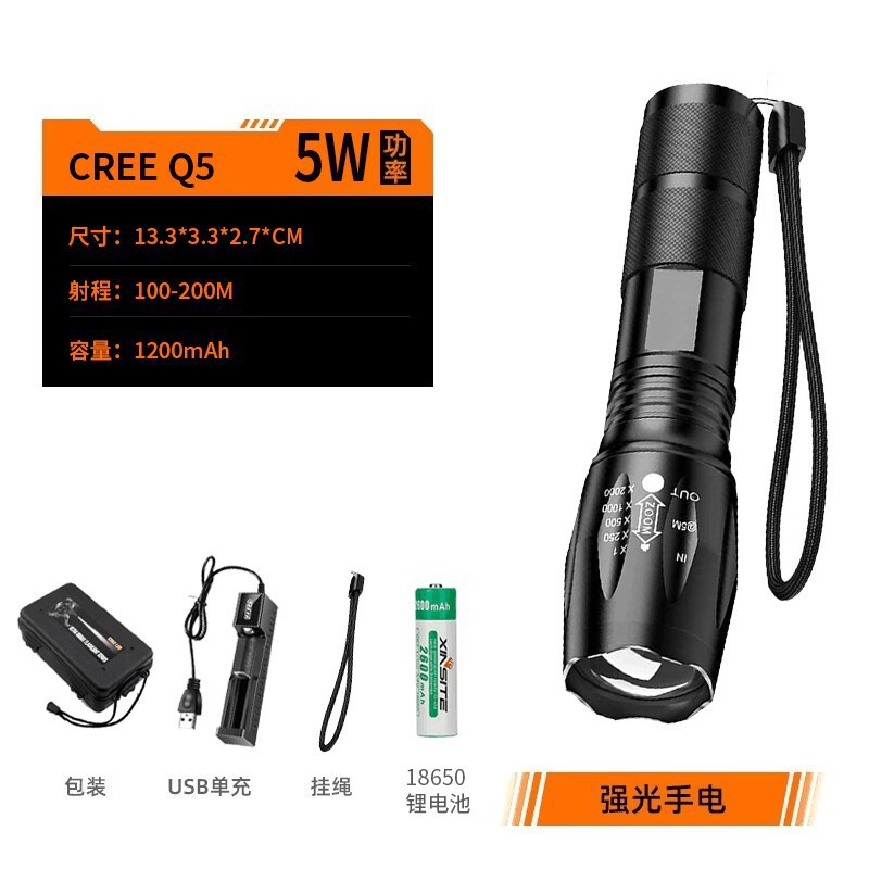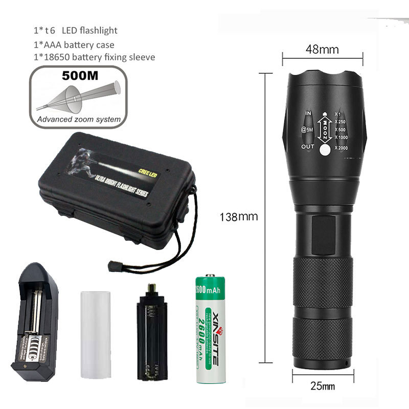 跨境爆款A100户外led手电筒T6充电变焦迷你强光手电筒 厂家直销