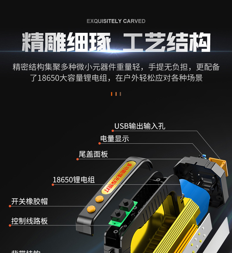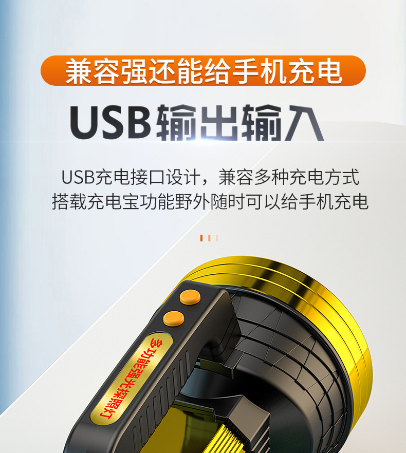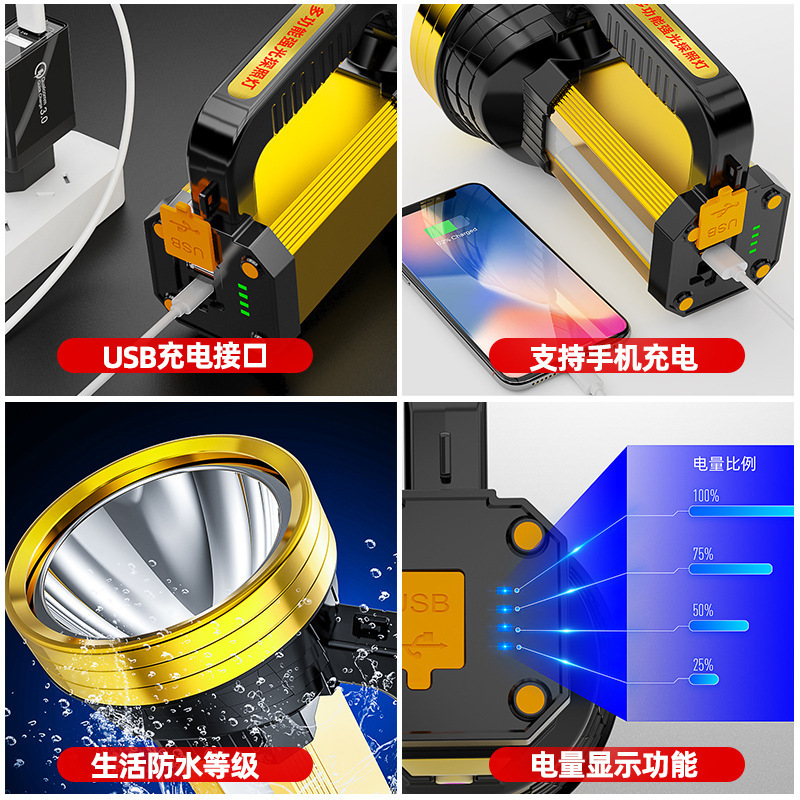 户外强光长续航探照灯手提式手电筒超亮家用充电便携矿灯野外防水