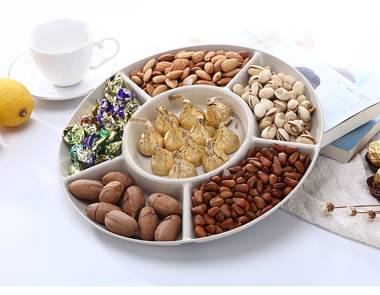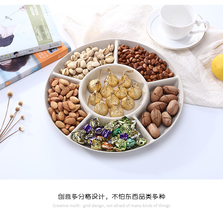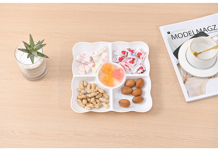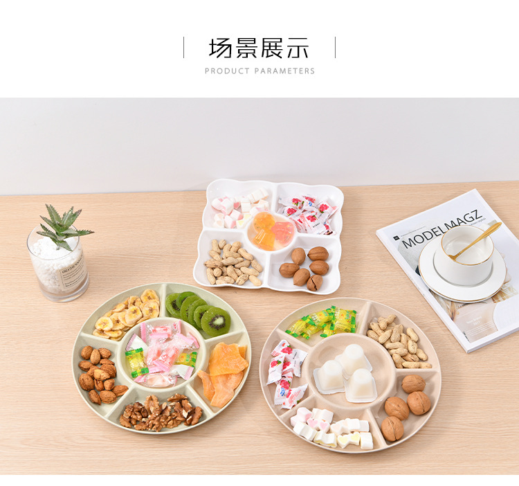 小食碟零食盘客厅干果盘塑料圆形分格拼盘大容量茶几零食摆放盘