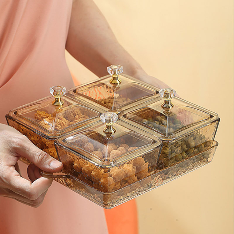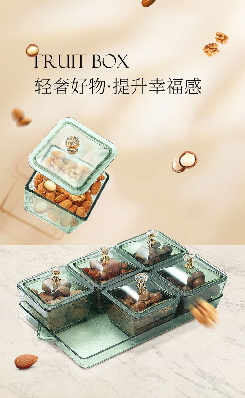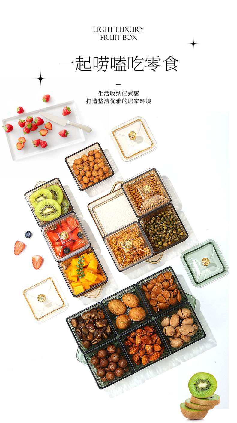 源头工厂糖果盒果蔬盘带盖家用客厅点心分格透明零食糖拼盘干果盘