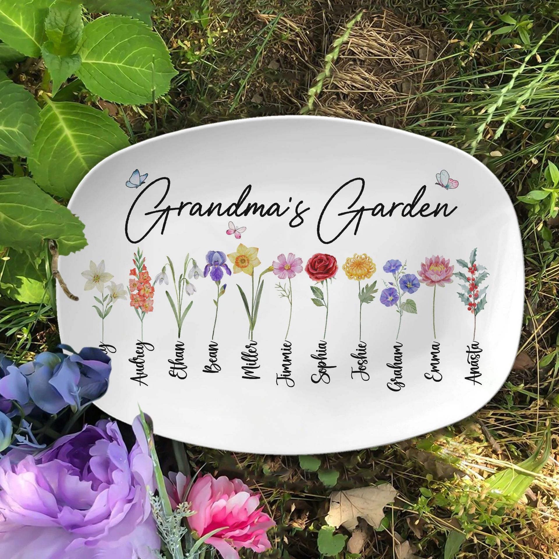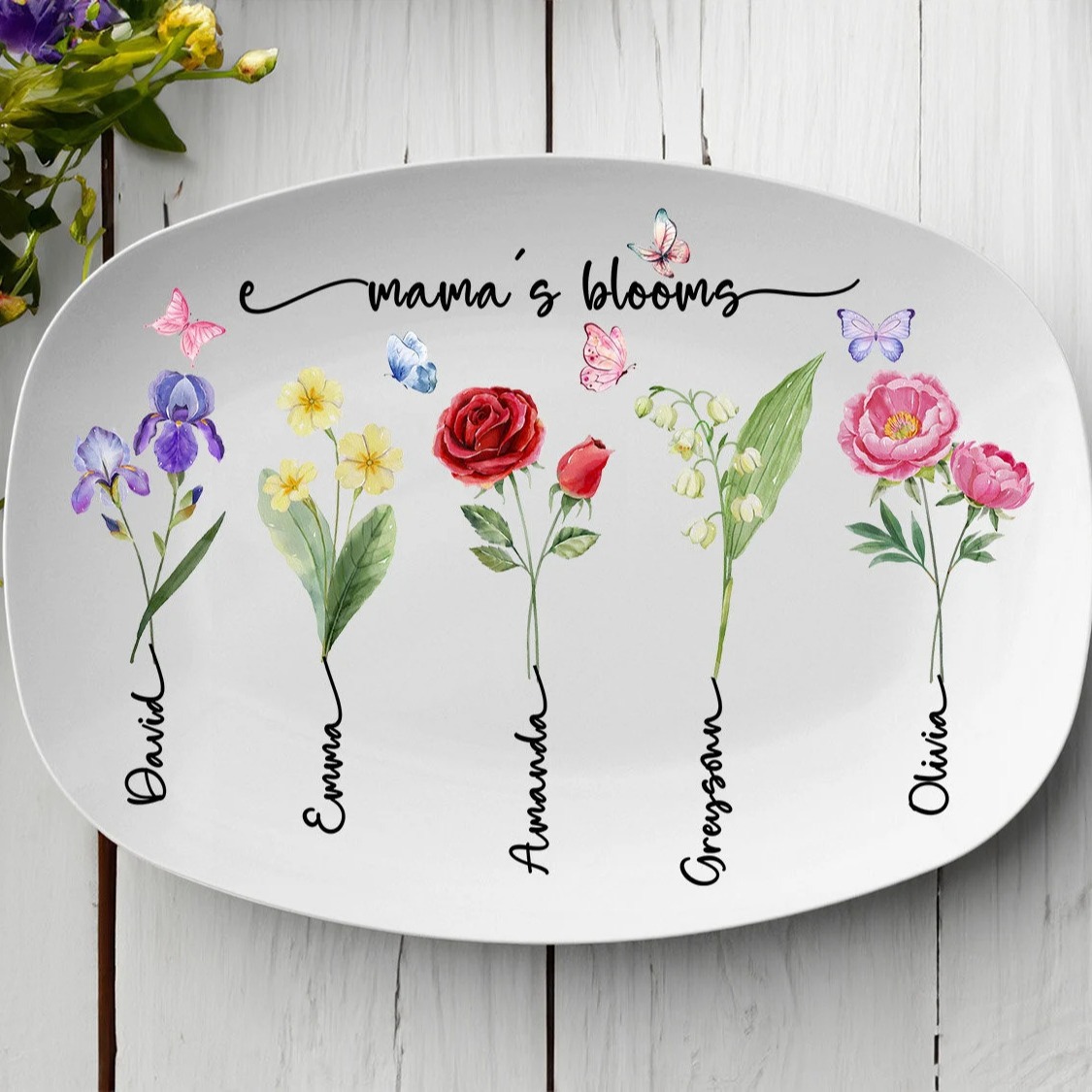 独立站家庭个性化拼盘餐盘来图打印生辰花父亲节母亲节圣诞节餐盘