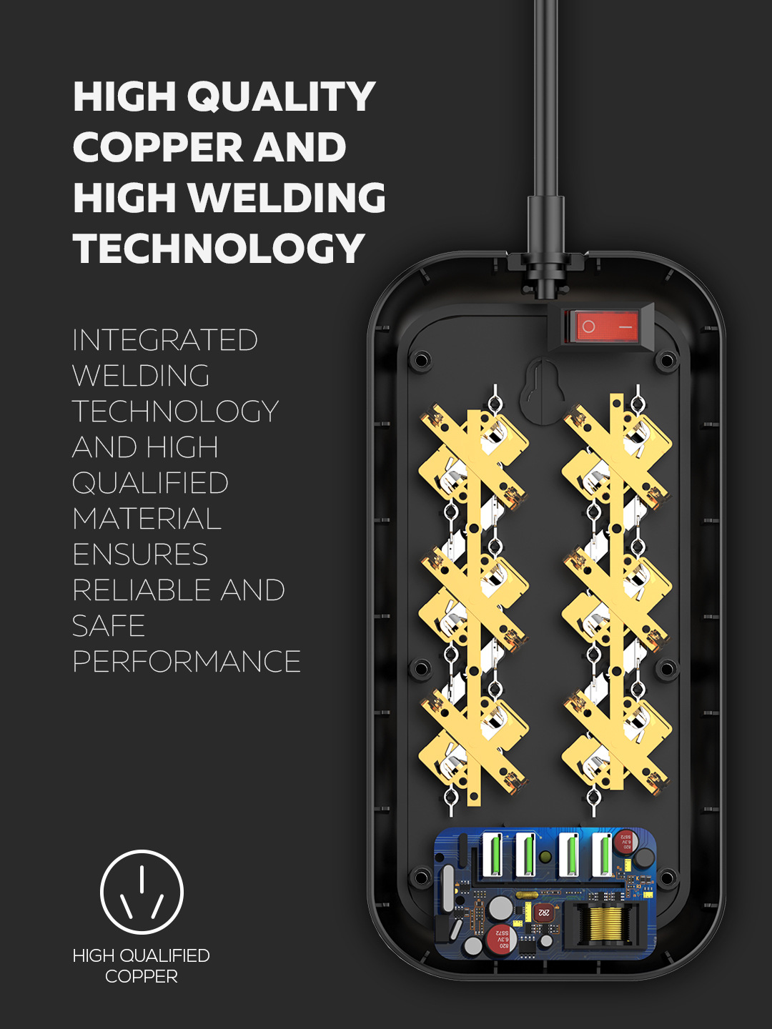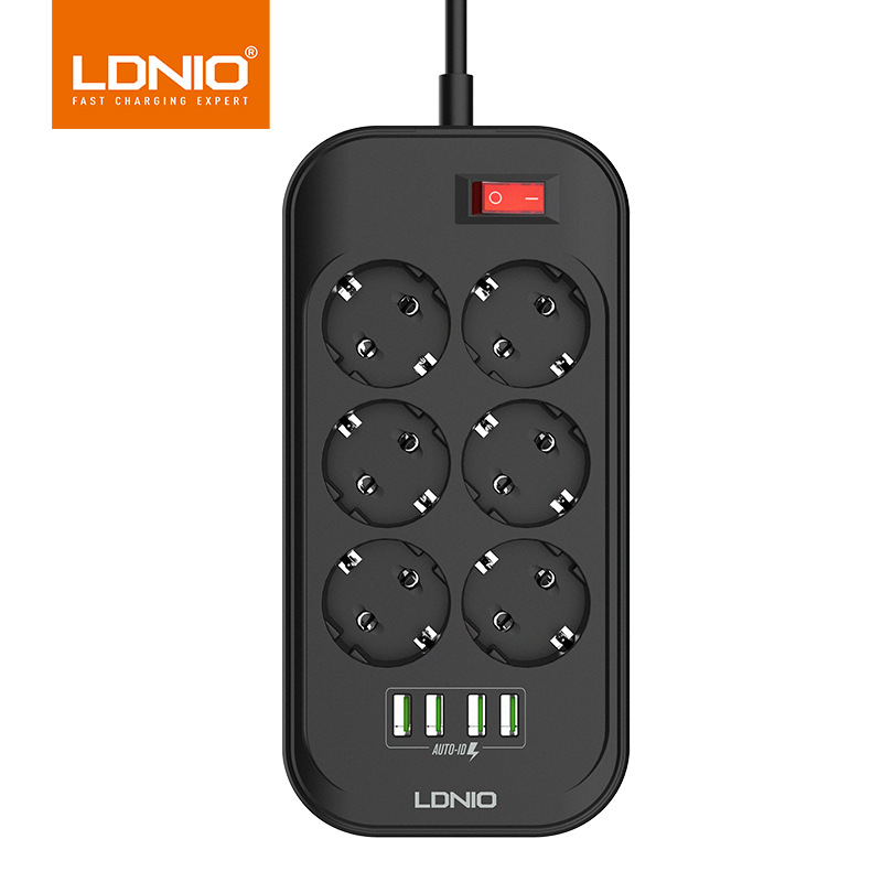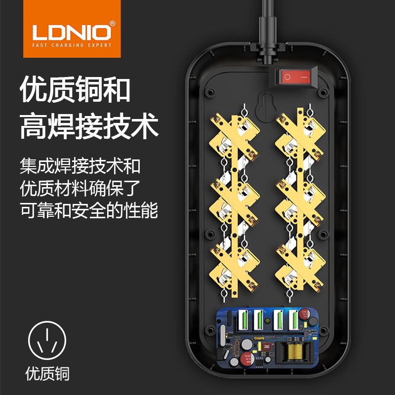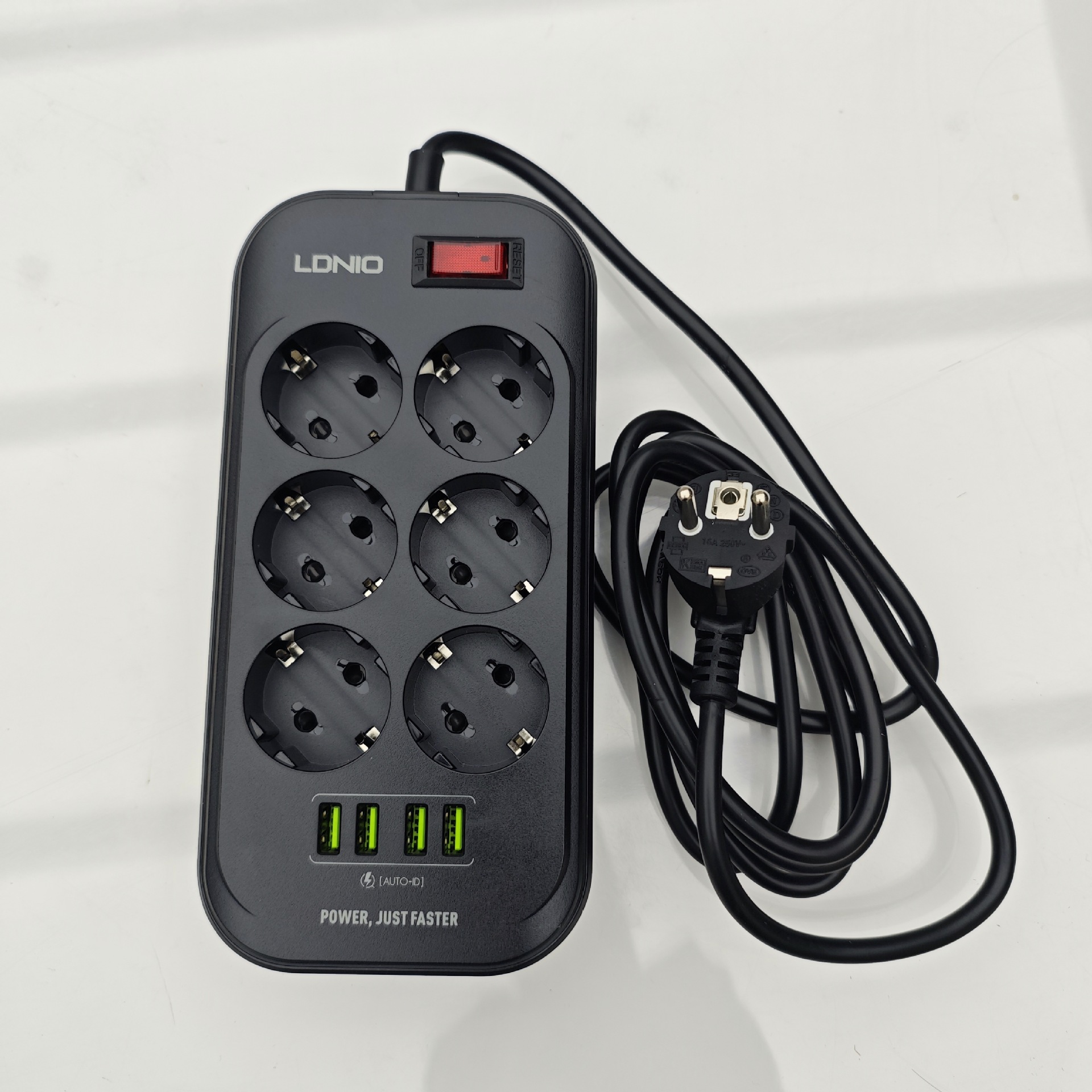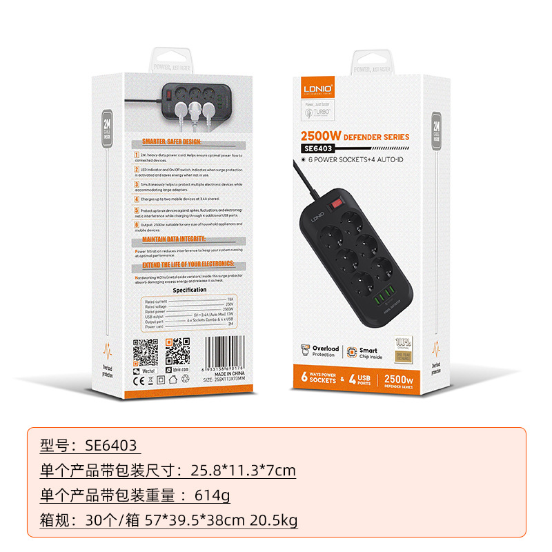 力德诺圆孔欧规排插 六位USB智能插座亚马逊热卖欧标插板插线板