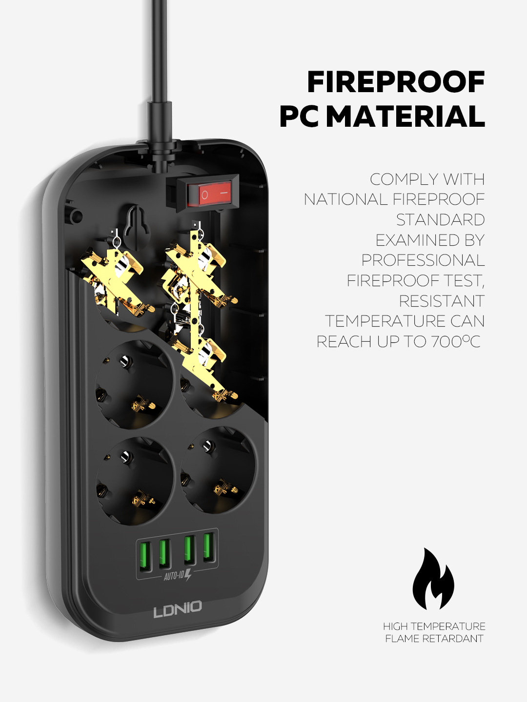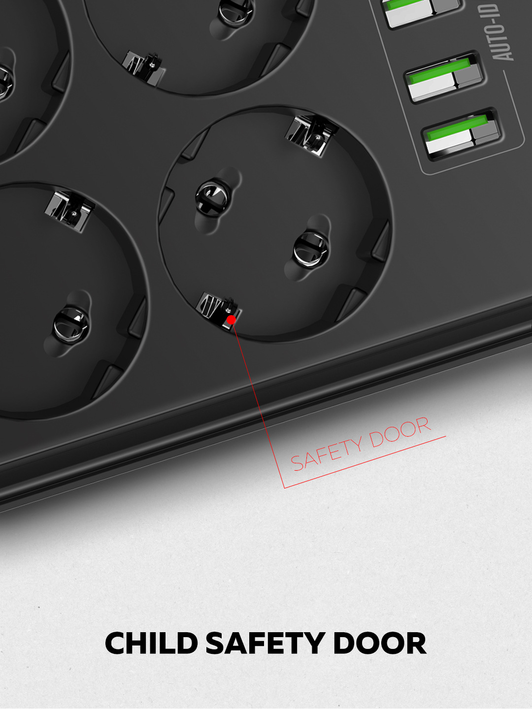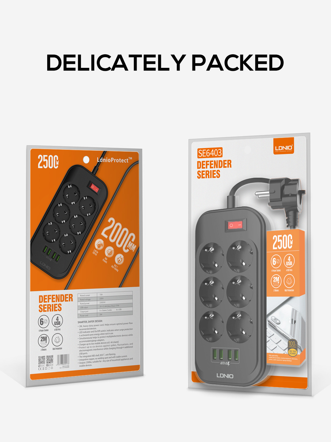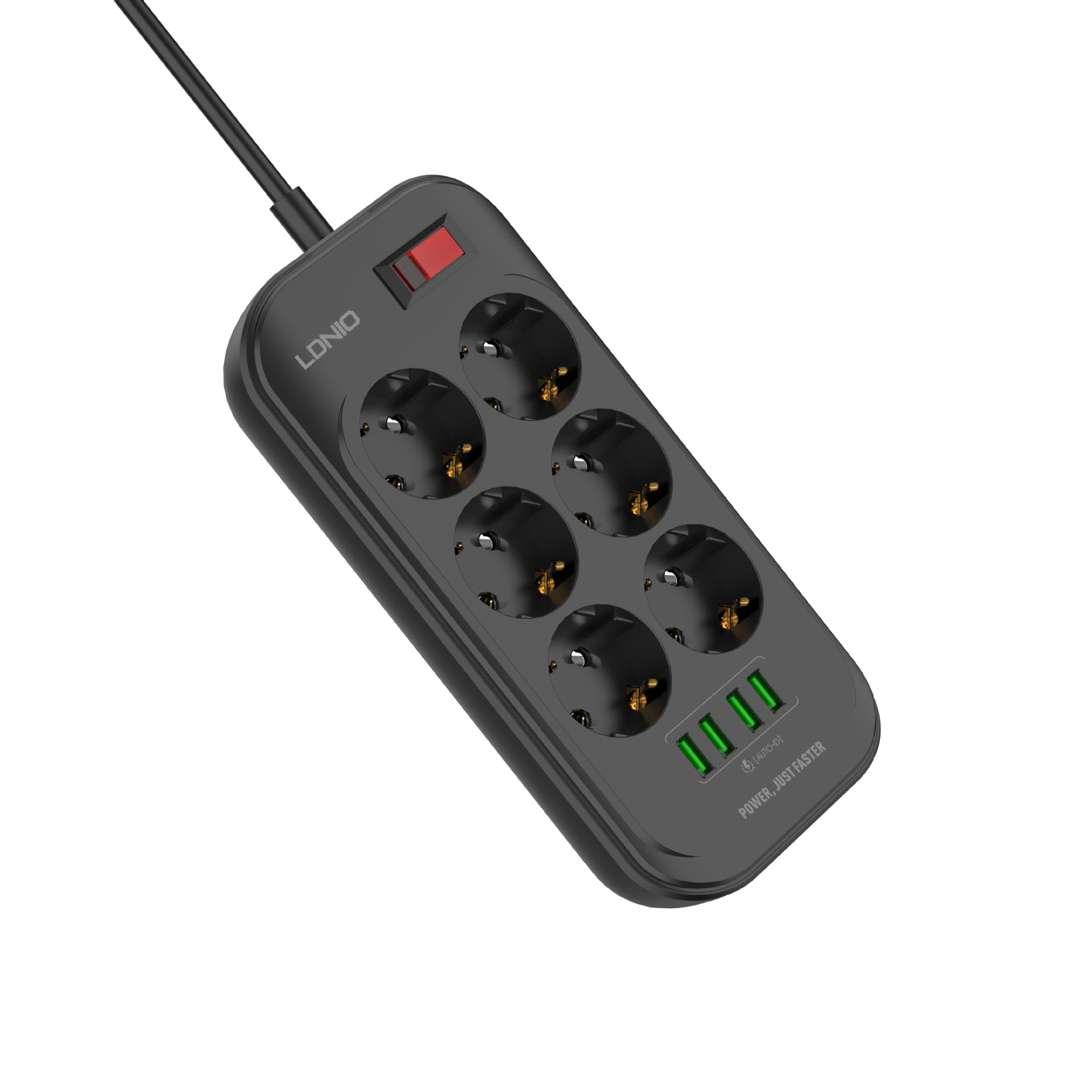 力德诺圆孔欧规排插 六位USB智能插座亚马逊热卖欧标插板插线板