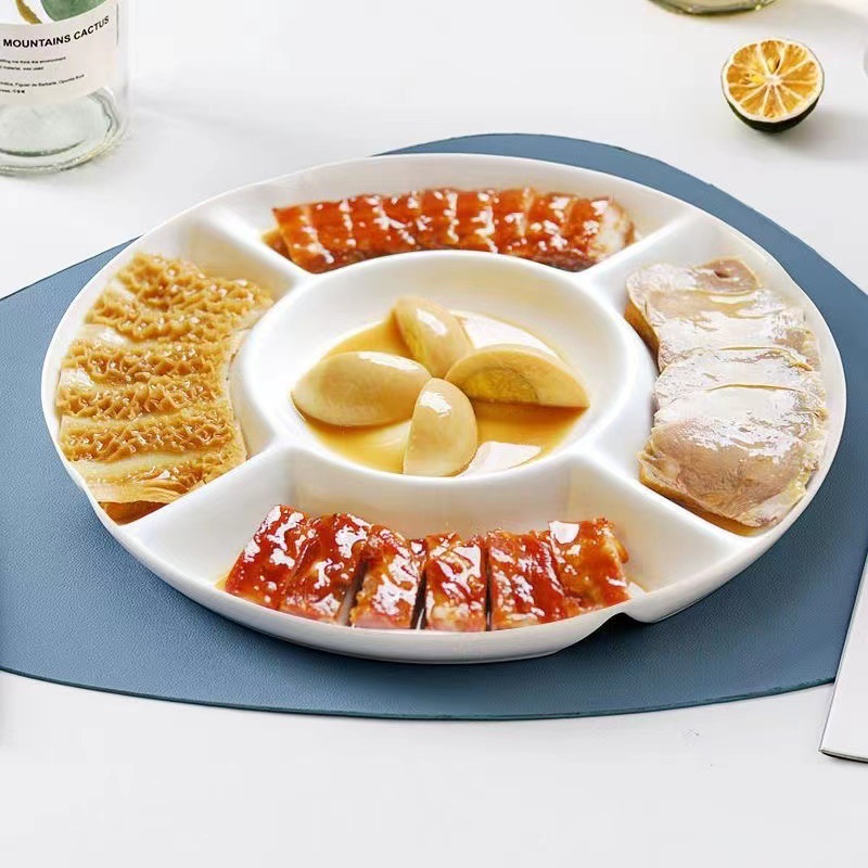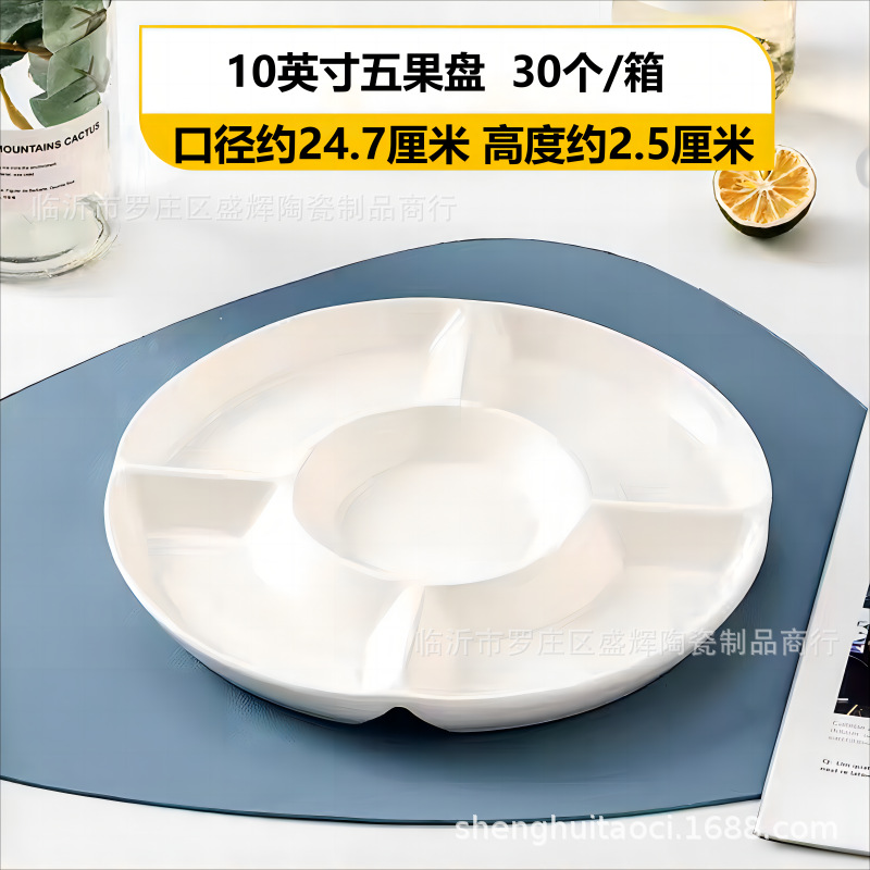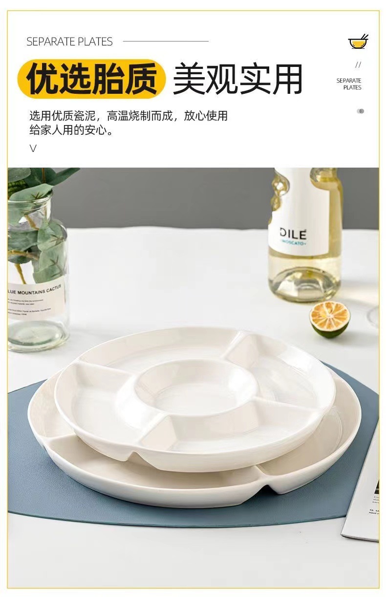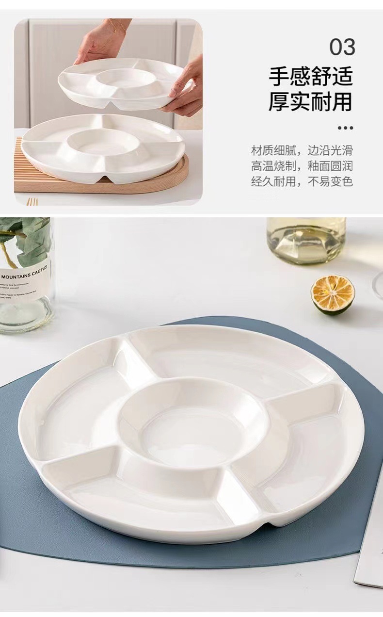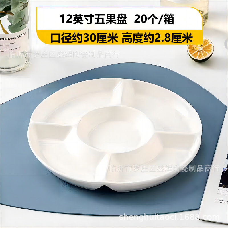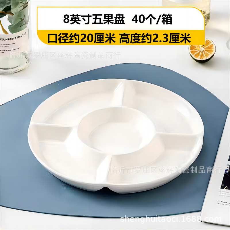 分格盘陶瓷卤水拼盘五格水果佐料盘坚果糖果点心小吃零食摆放盘子