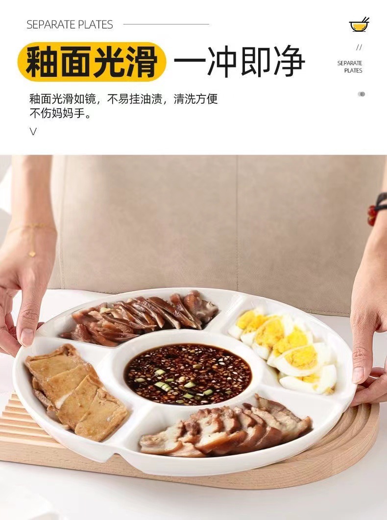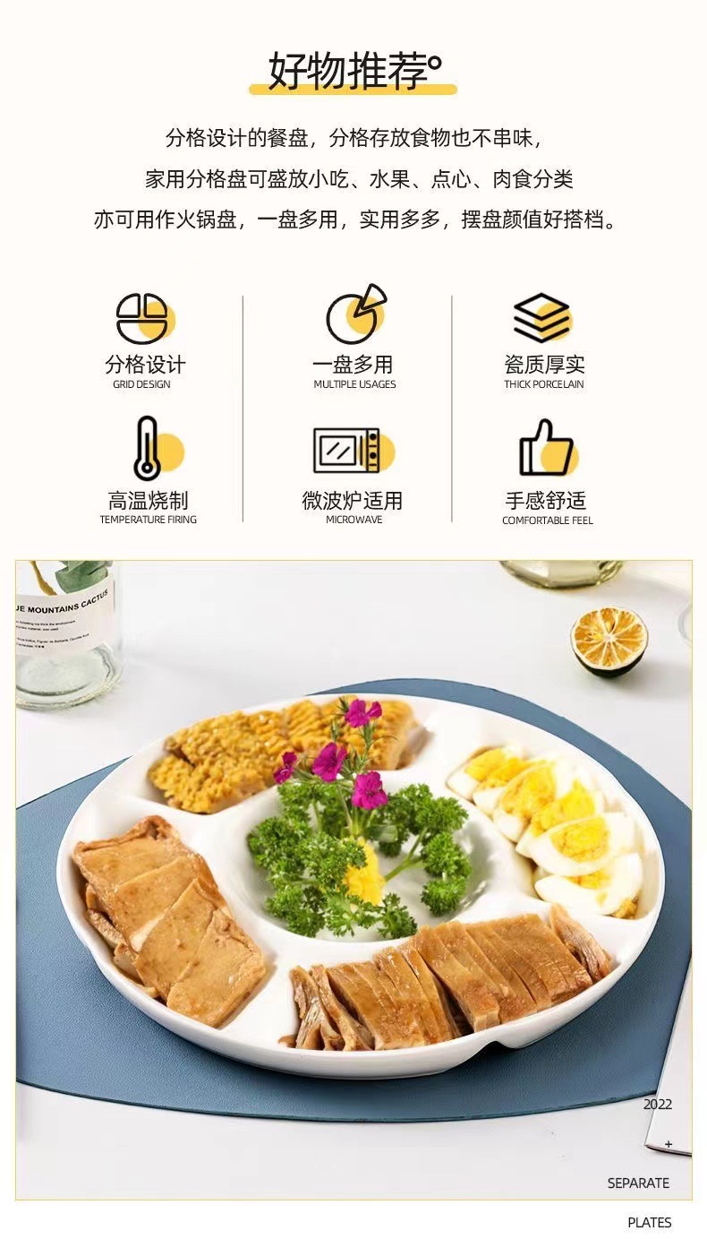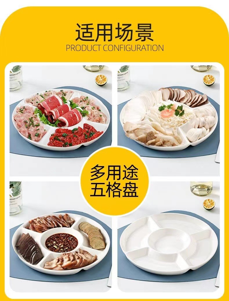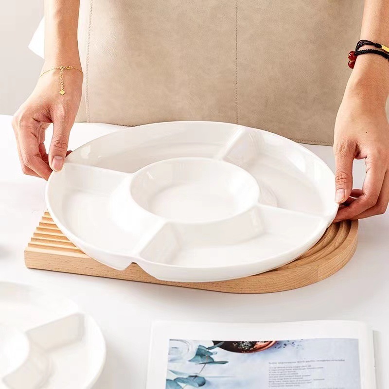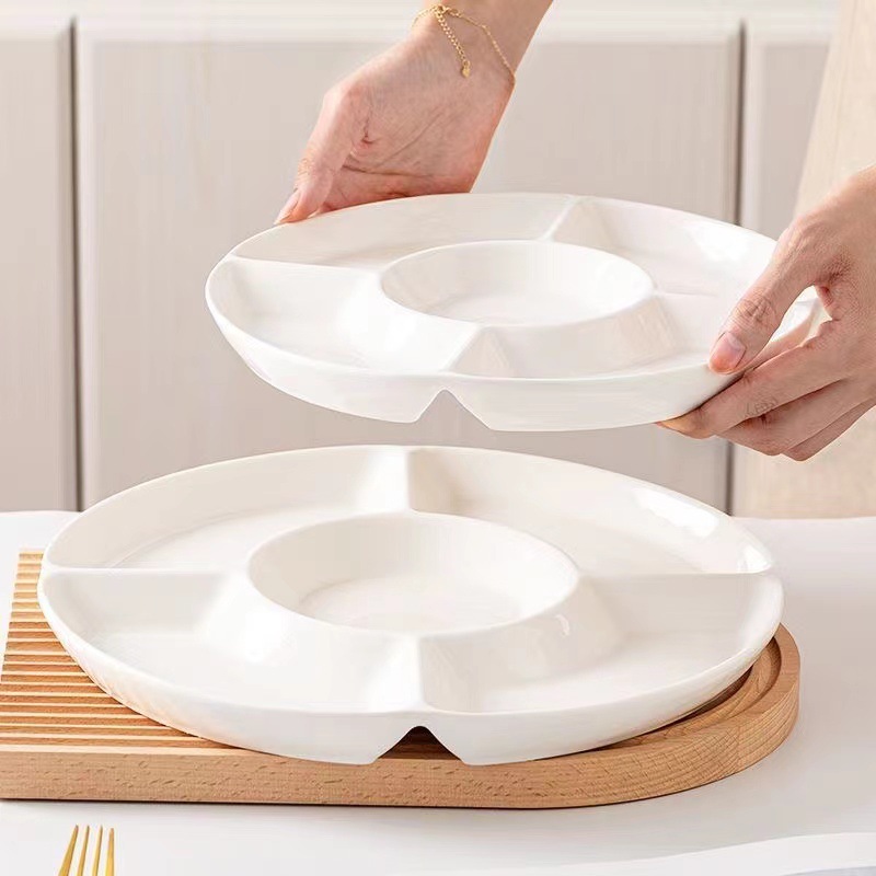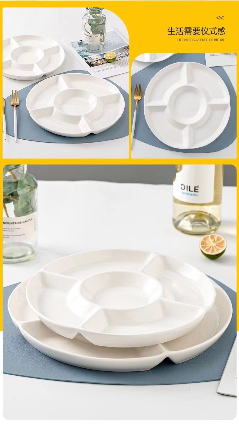 分格盘陶瓷卤水拼盘五格水果佐料盘坚果糖果点心小吃零食摆放盘子