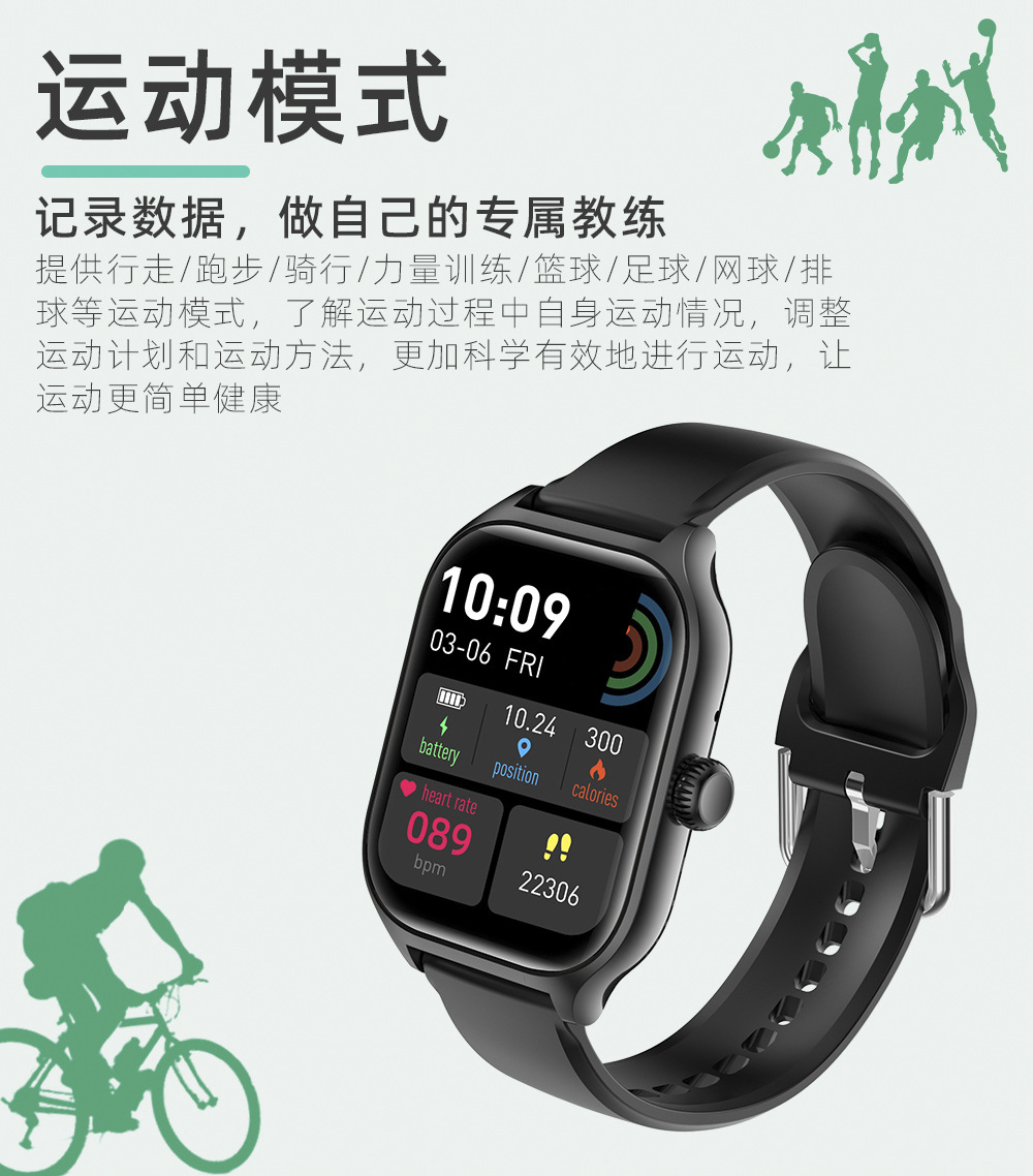 运动智能手表J10男女款测心率多功能手环学生电子表适用安卓ios
