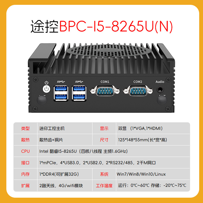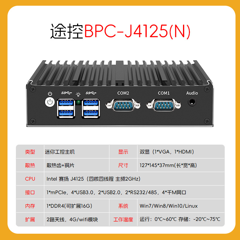 工控小主机 嵌入式工业电脑j4125/j1900多串口无风扇迷你工控机