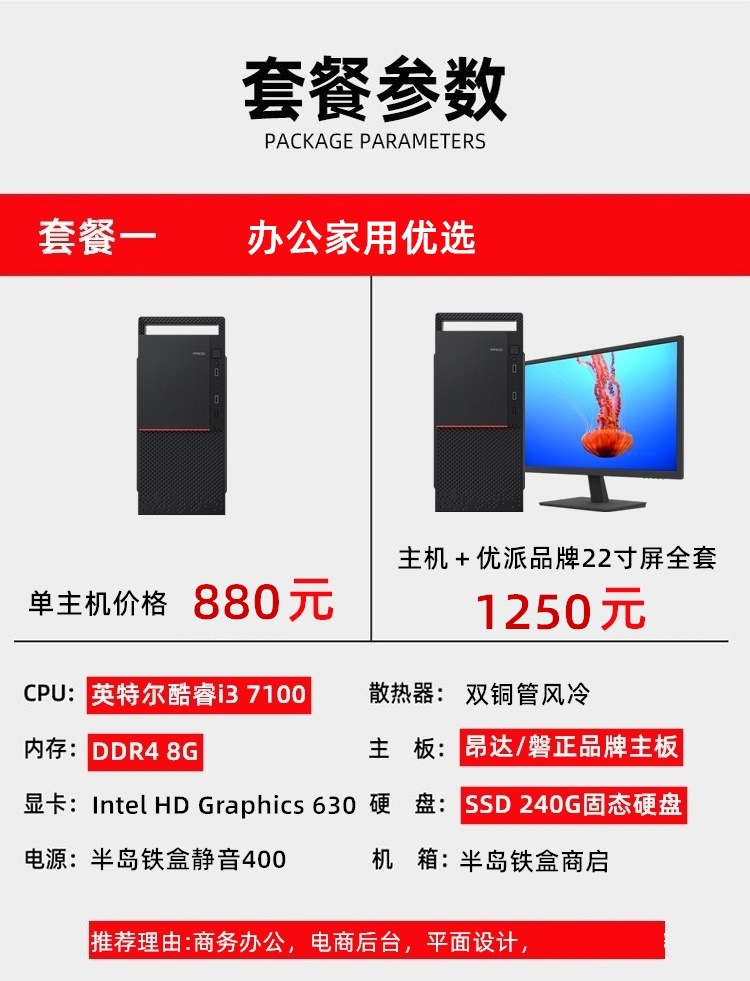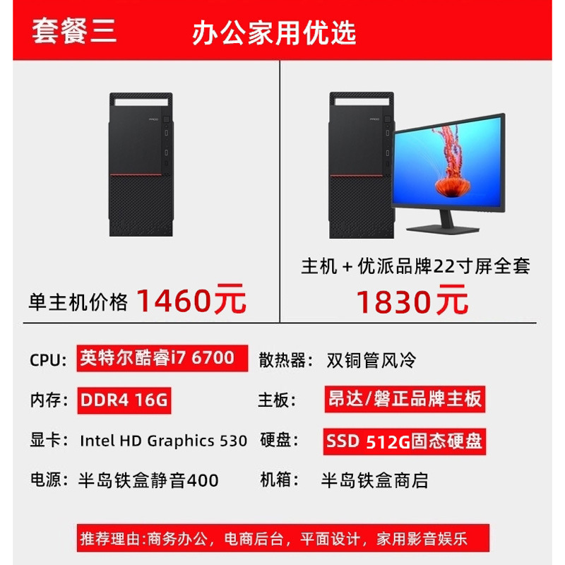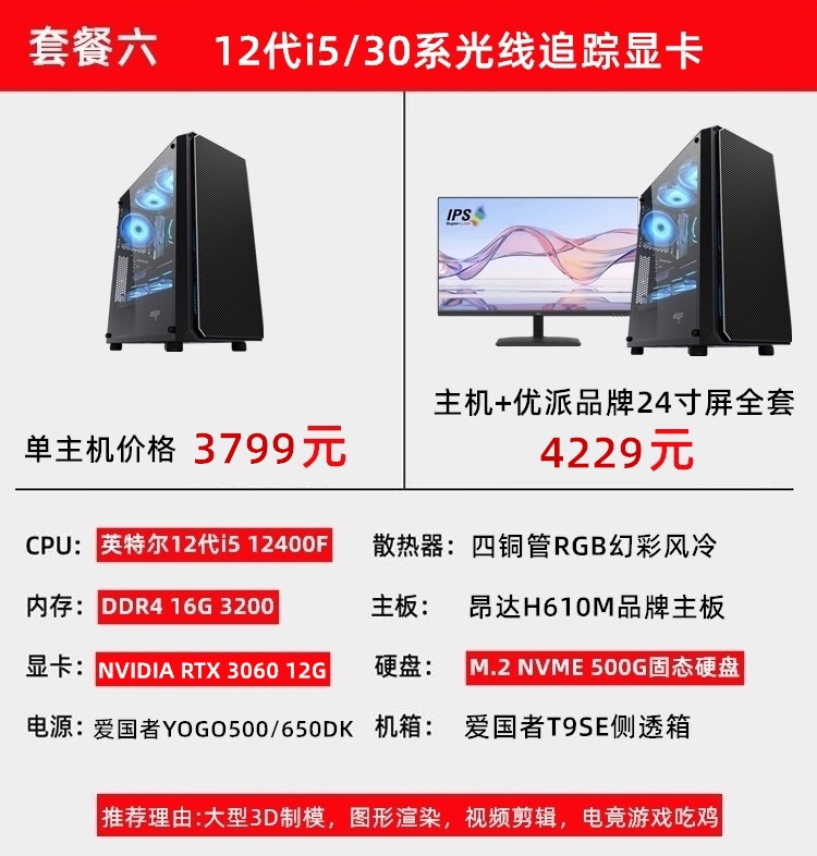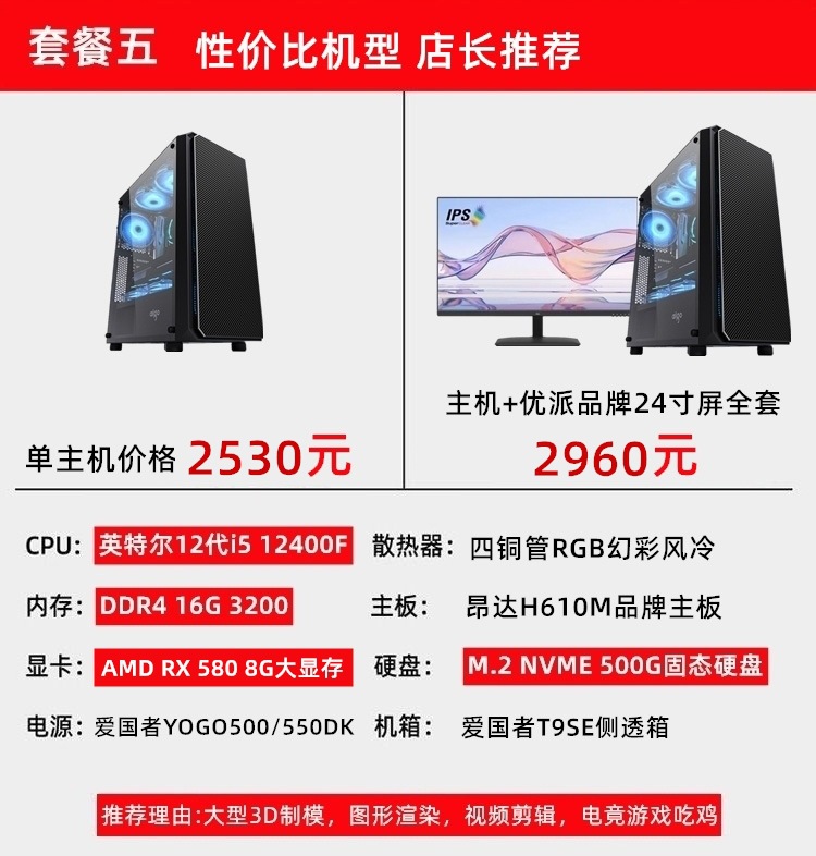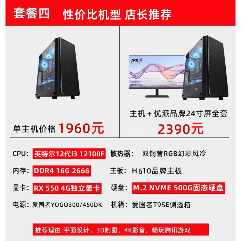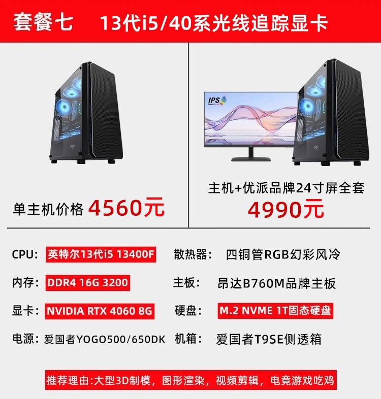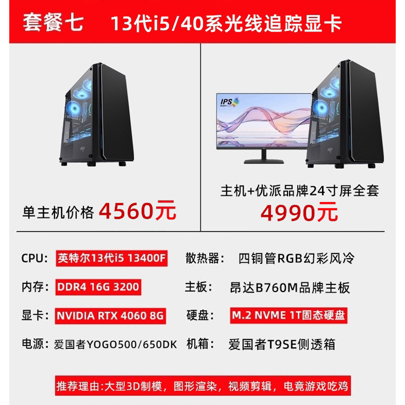 批发全套电脑台式机i513400F/4060 游戏办公直播高配组装电脑主机