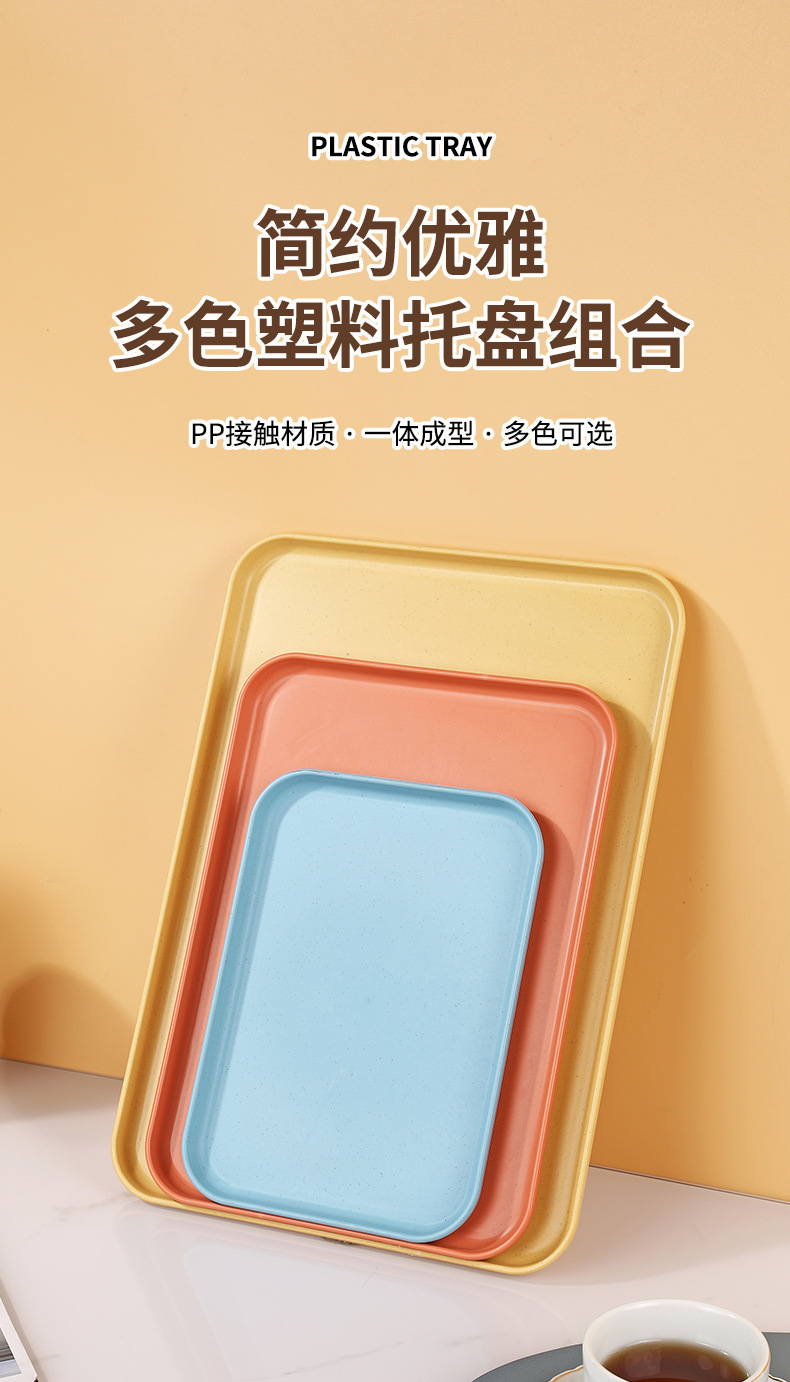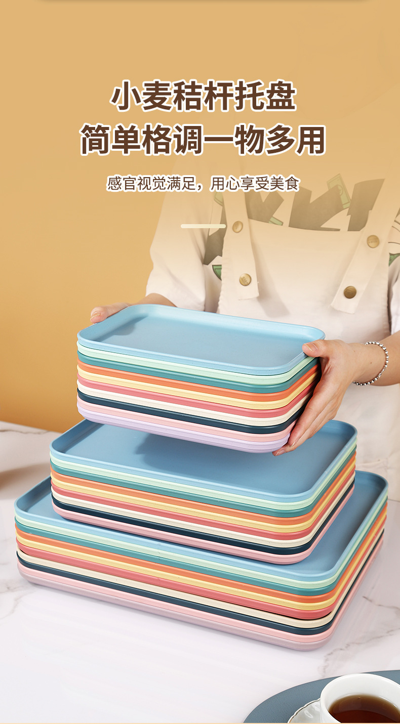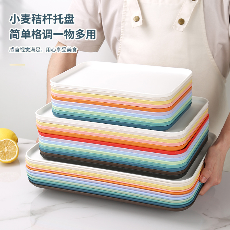 小麦秸秆托盘放杯家用酒店餐厅长方形盘子果盘茶水盘塑料盘子餐盘